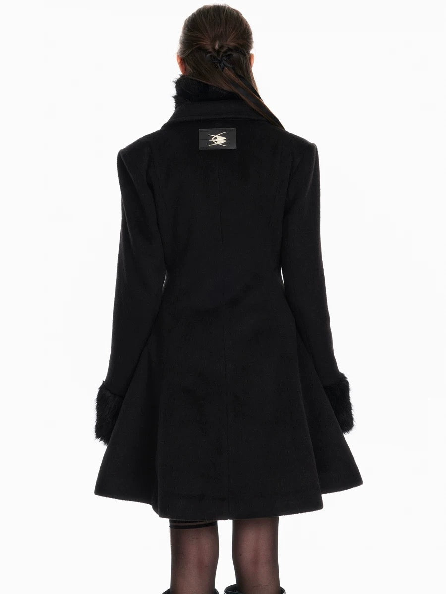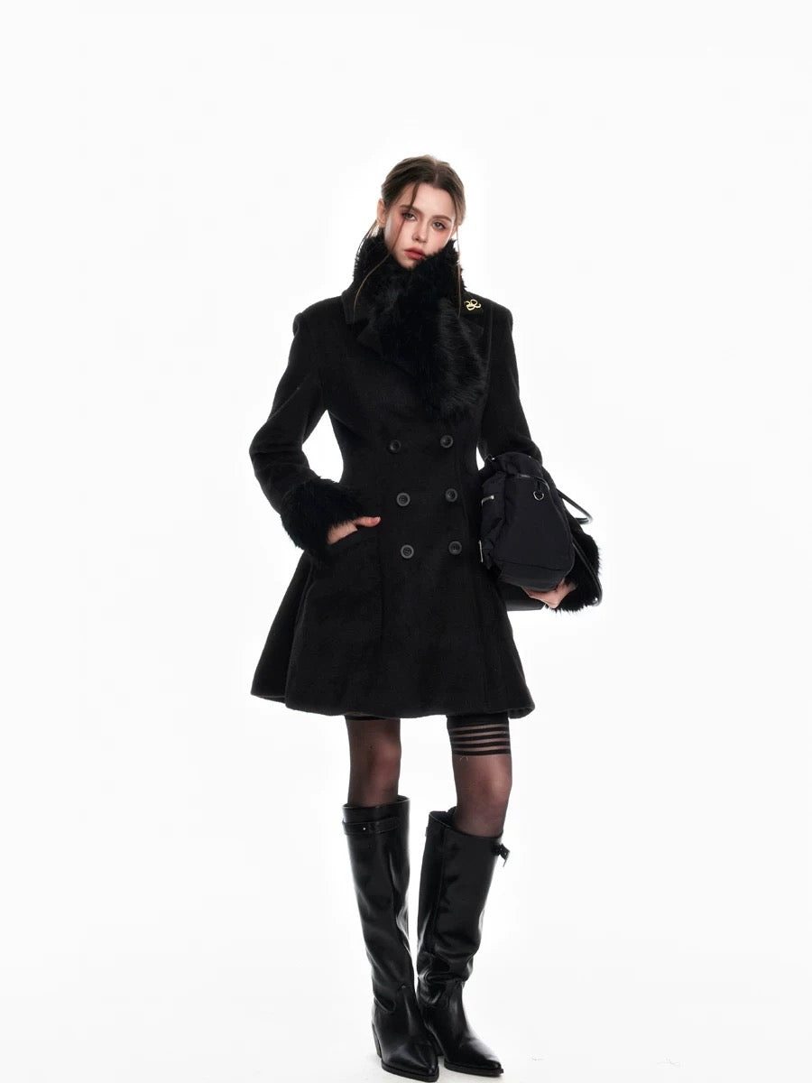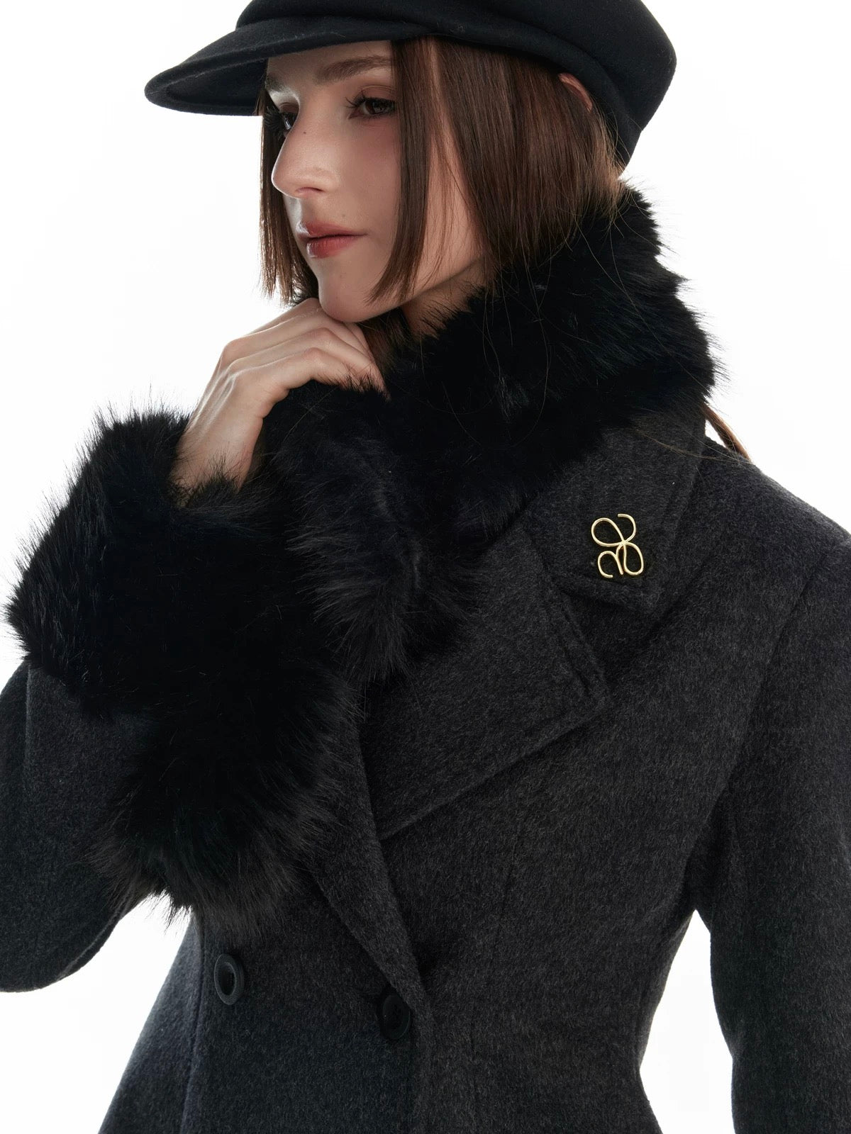 Soft faux-fur trims adorn the collar and cuffs, giving a regal, vintage feel while providing extra warmth. The detachable scarf-style collar adds versatility and sophistication, making it perfect for both everyday strolls and evening outings.