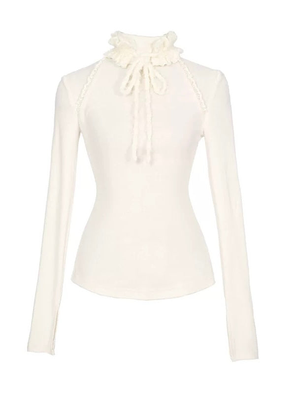 A soft knit base top paired with a fuzzy ribbon collar designed for the Winter Gala season. The top features a slim fit, cozy silhouette crafted from warm textured rib-knit, offering gentle stretch and comfort suitable for daily wear or elegant winter styling.