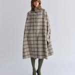 PREEKEND Oversized Wool-Blend Cape Coat with Detachable Faux Fur Neck Warmer
