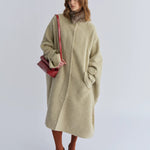 This mid-length double-faced coat drapes effortlessly, giving a refined yet relaxed presence ideal for everyday citywalk outfits, creative office dressing, and weekend café moments.