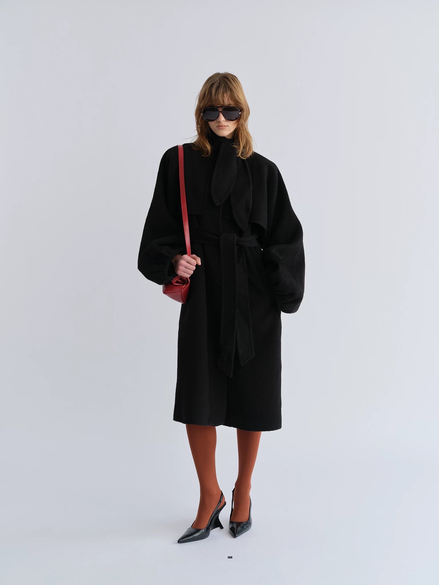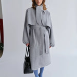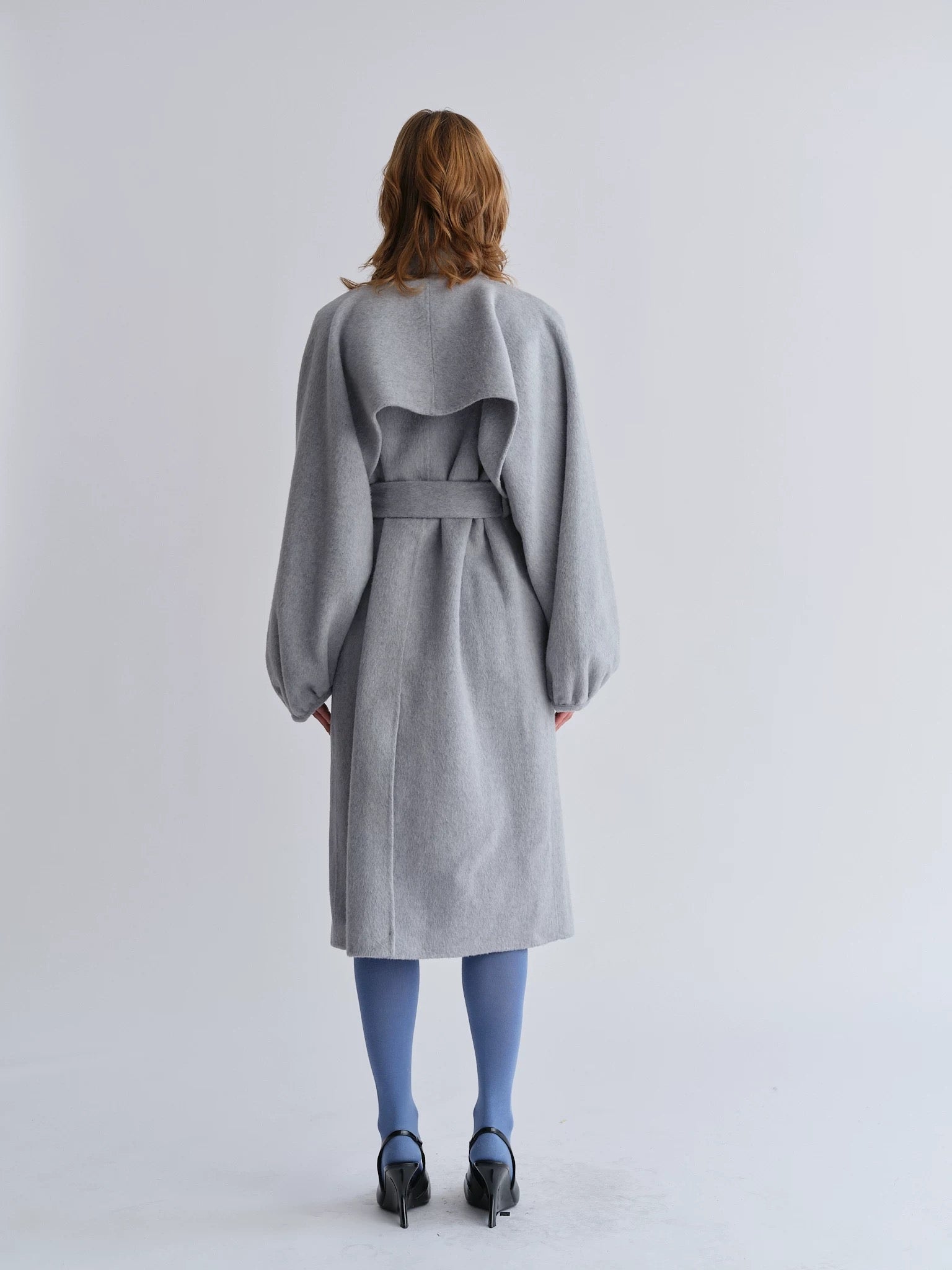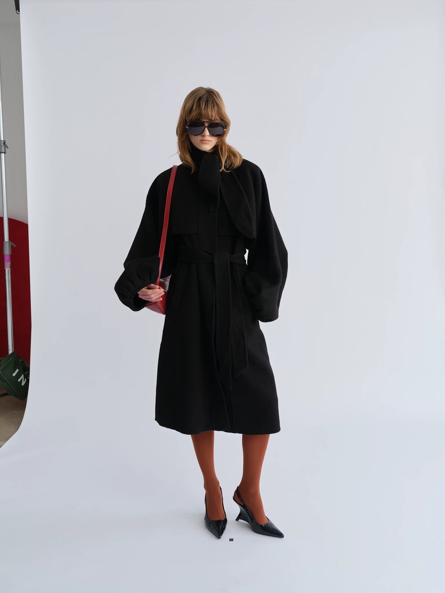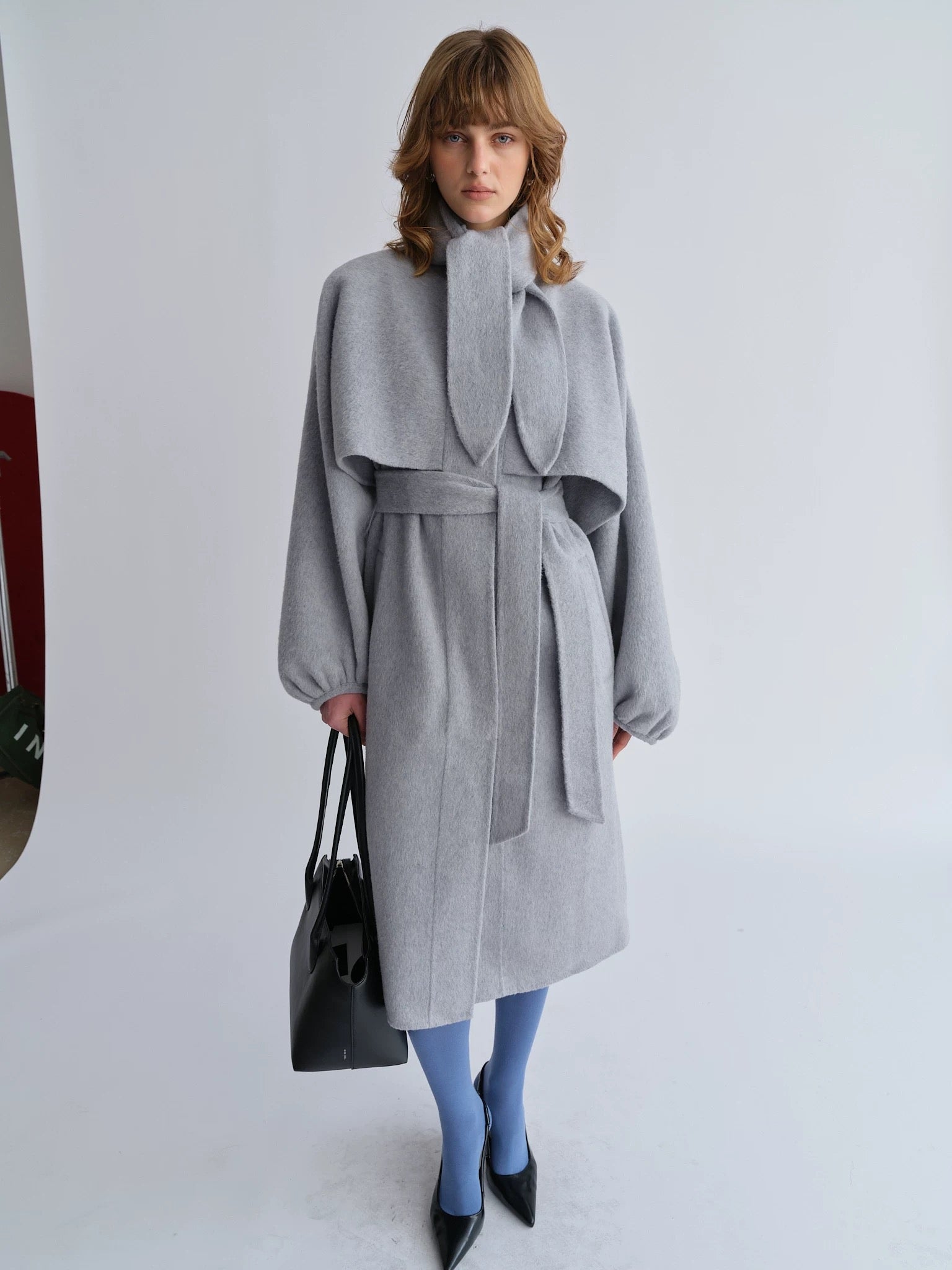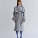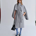 The coat may be worn in two ways — as a classic belted coat for a defined waist, or as a relaxed cape for effortless movement. Perfect for office commutes, gallery strolls, weekend coffee runs, and sophisticated everyday wear.