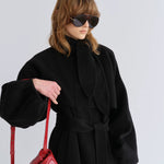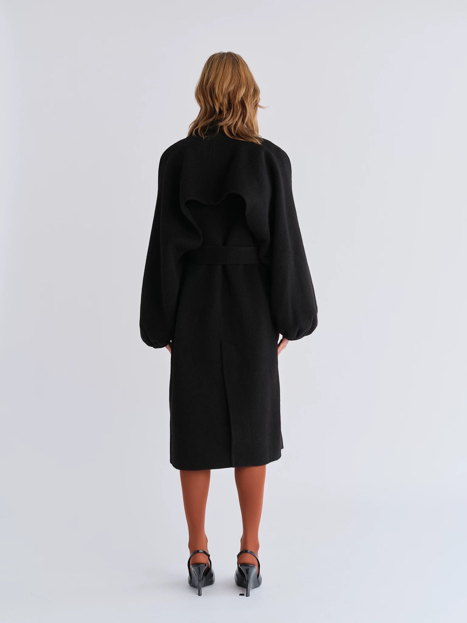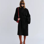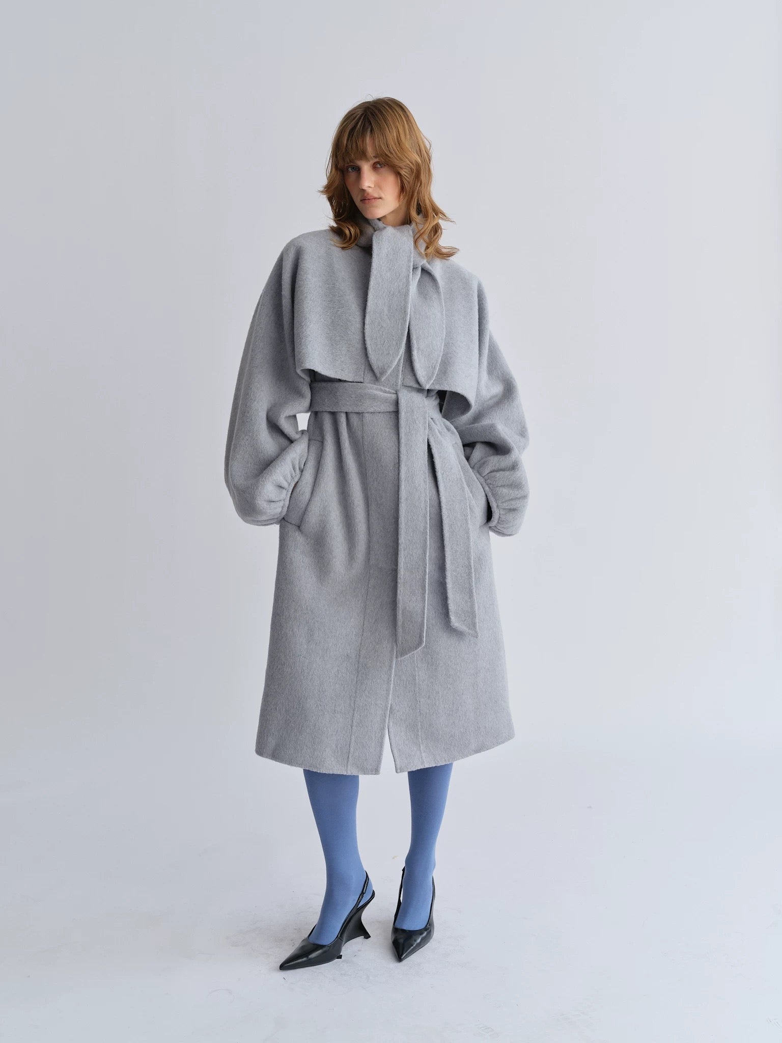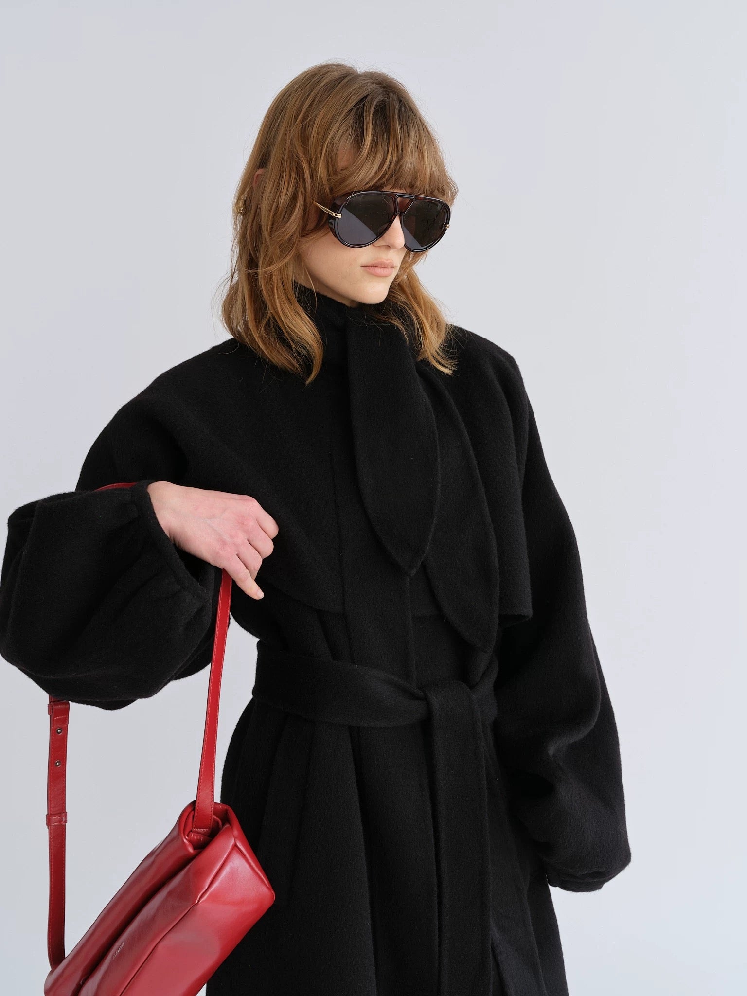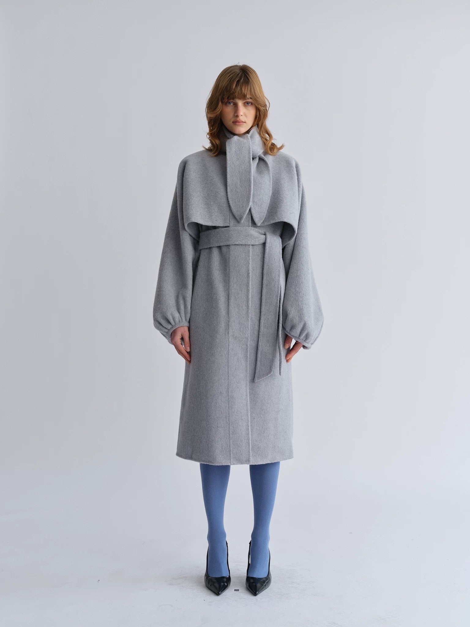 The coat may be worn in two ways — as a classic belted coat for a defined waist, or as a relaxed cape for effortless movement. Perfect for office commutes, gallery strolls, weekend coffee runs, and sophisticated everyday wear.