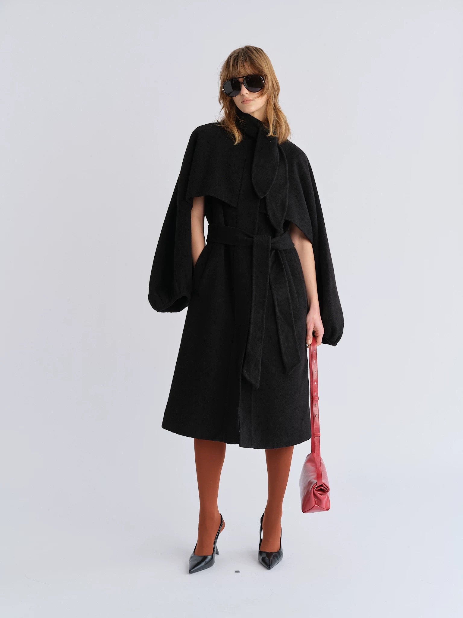 A refined reinterpretation of the modern cape coat, crafted in 100% soft wool for warmth, structure, and quiet luxury.