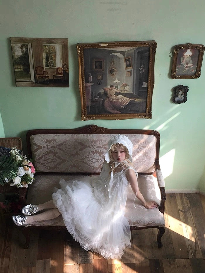 柔らかなチュール、繊細なレース、ロマンティックなシルエットは、coquette core 、ballet core 、ballerina core の世界観を完璧に表現しています。甘くて可憐、そして幻想的なファッションを愛する方にぴったりのドレスです。日常の中に小さな魔法を添えてくれる一着を、ぜひあなたのワードローブに。