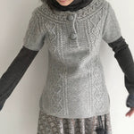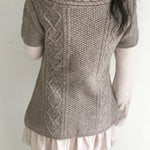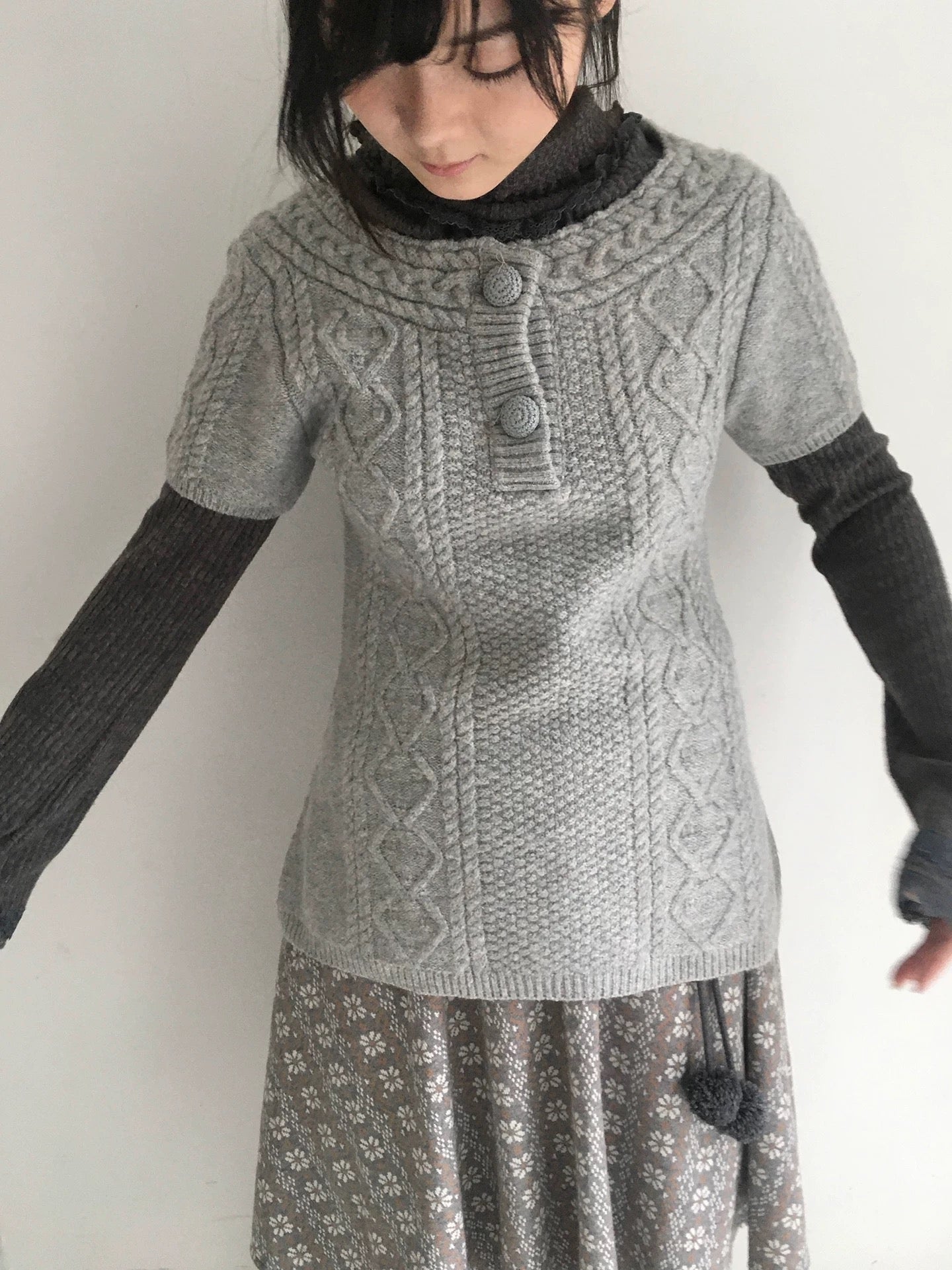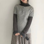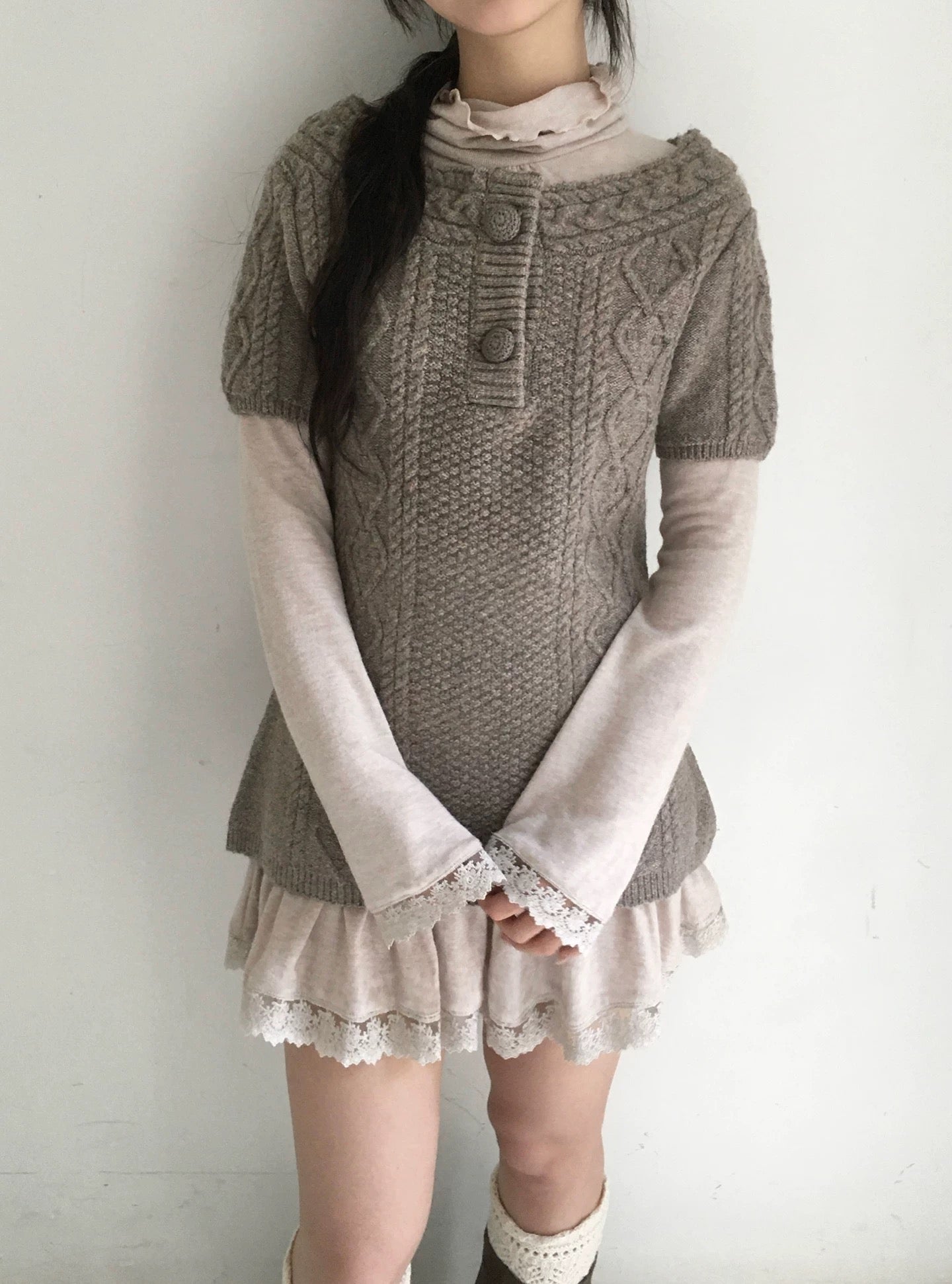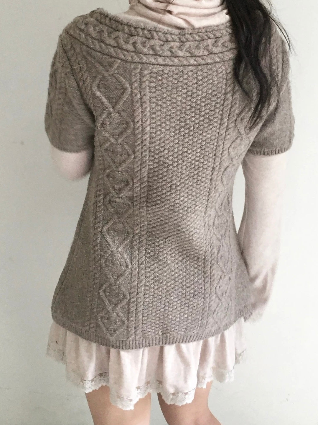 A cozy whisper from early autumn — this short-sleeve knit top is crafted from a soft wool-blend cable yarn, creating a vintage and natural tone in warm mocha brown and misty gray.