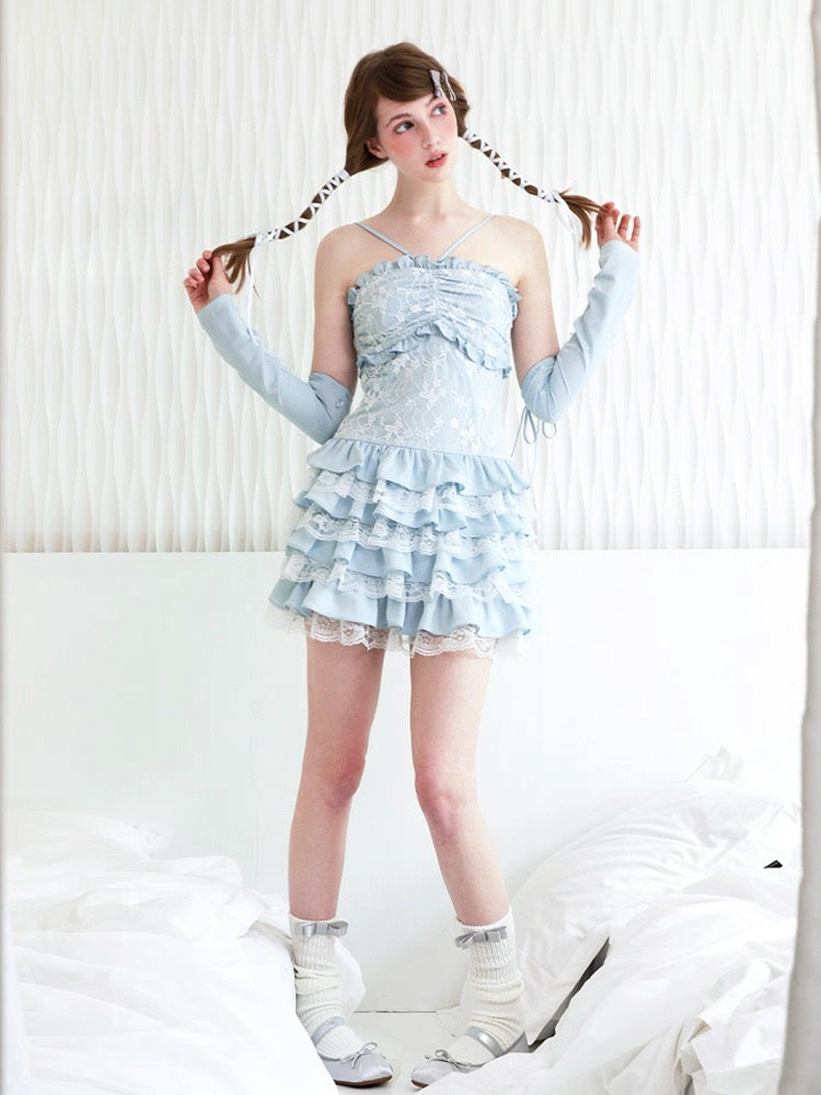 🌸 Style: Ballet core · Romantic kawaii · Lace ruffle dress