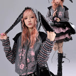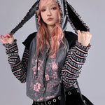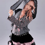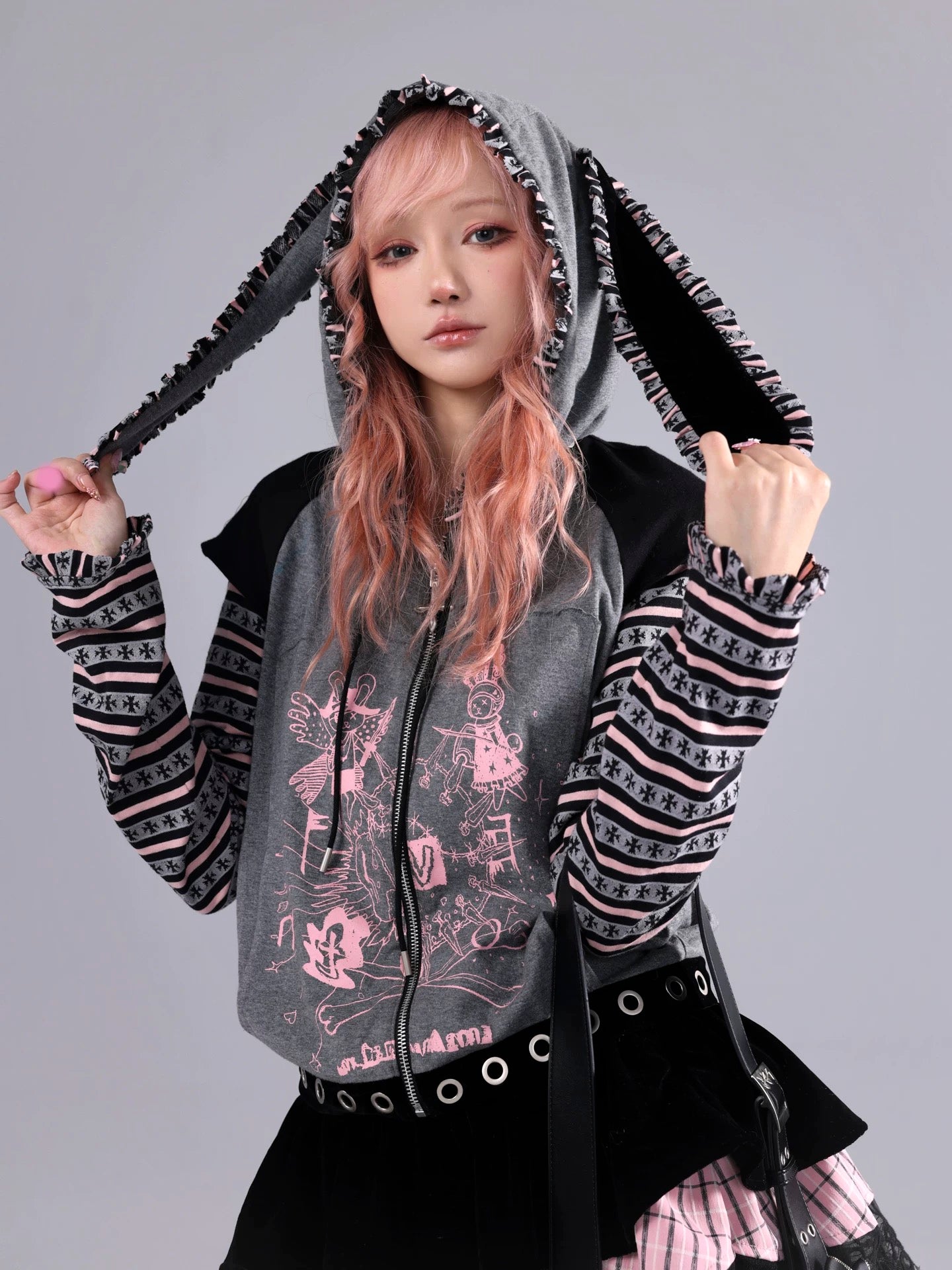 A chaotic blend of cute and evil — this bunny-ear hoodie brings together Harajuku punk sweetness, pirate-themed graphics, and gothic street attitude.