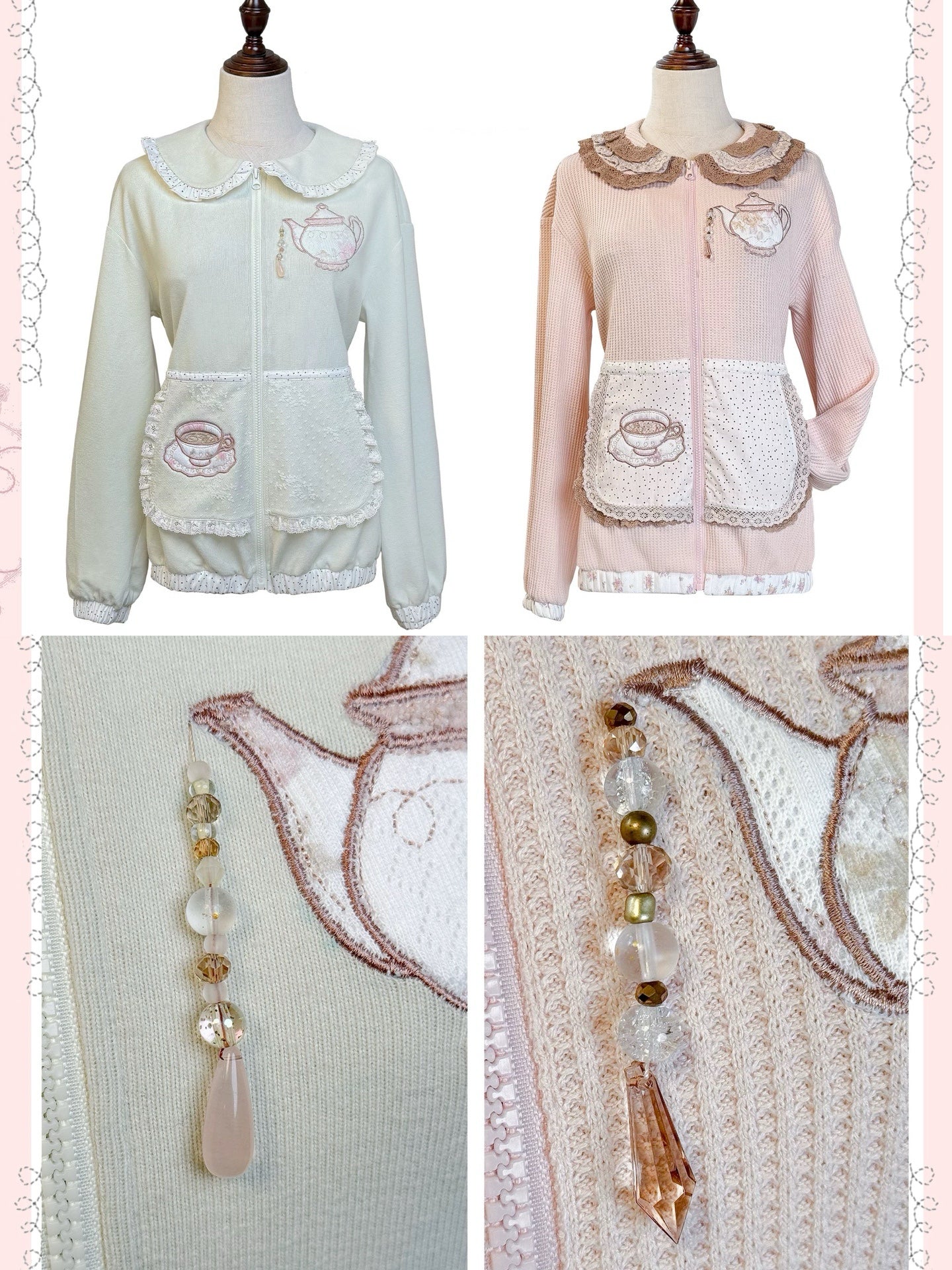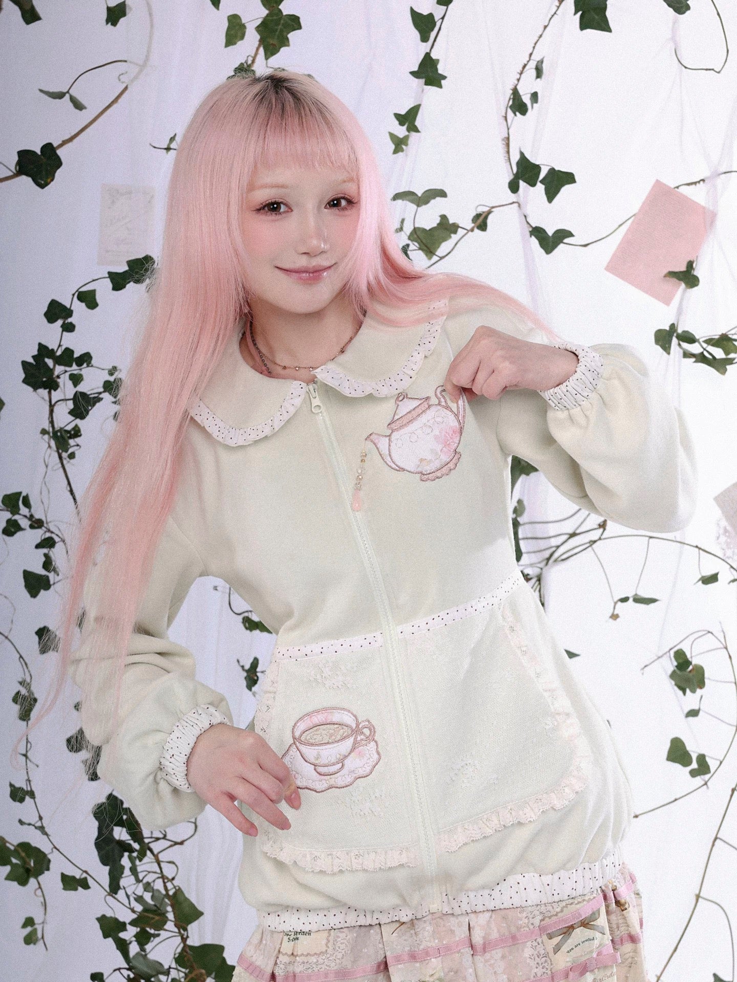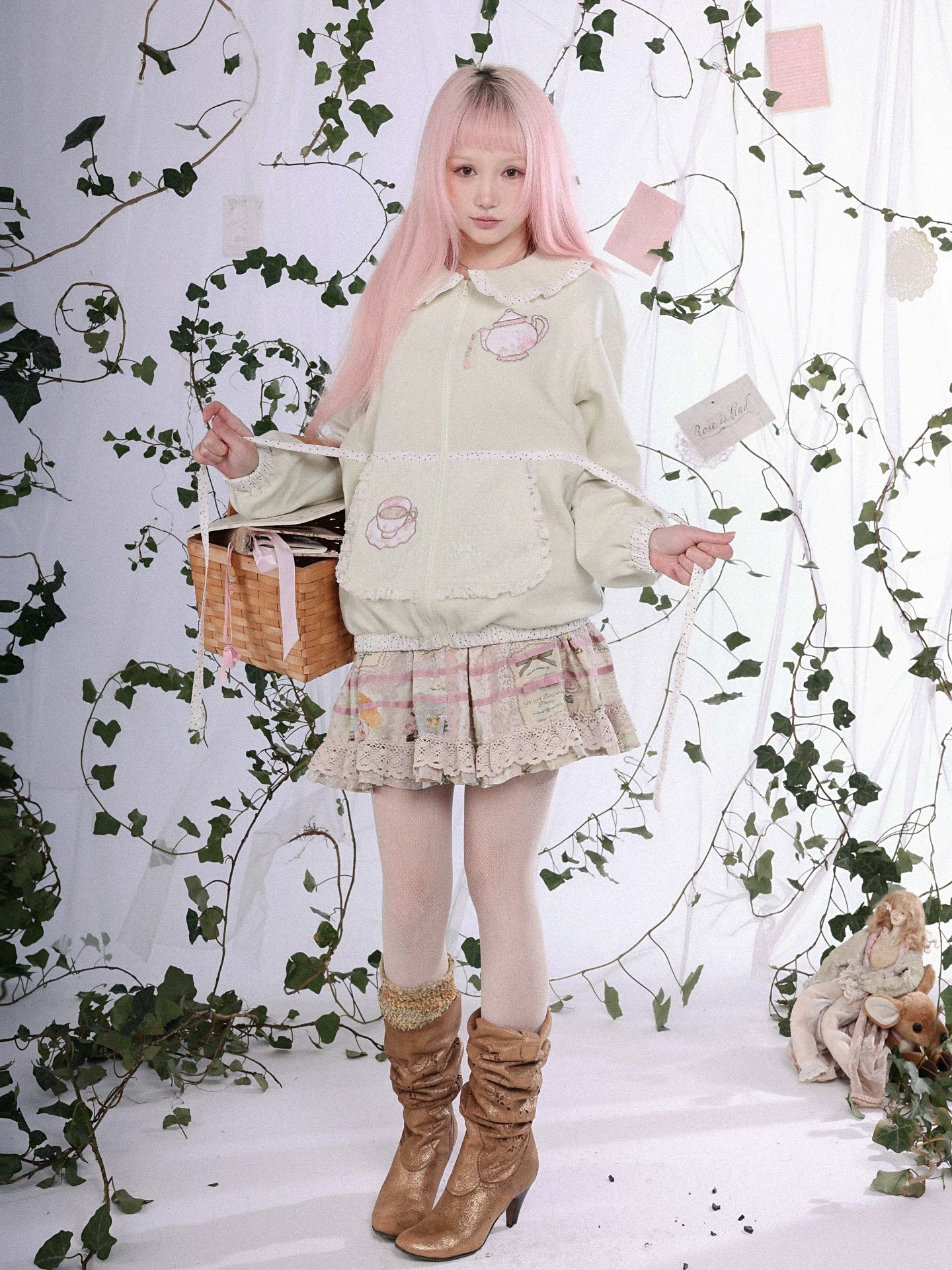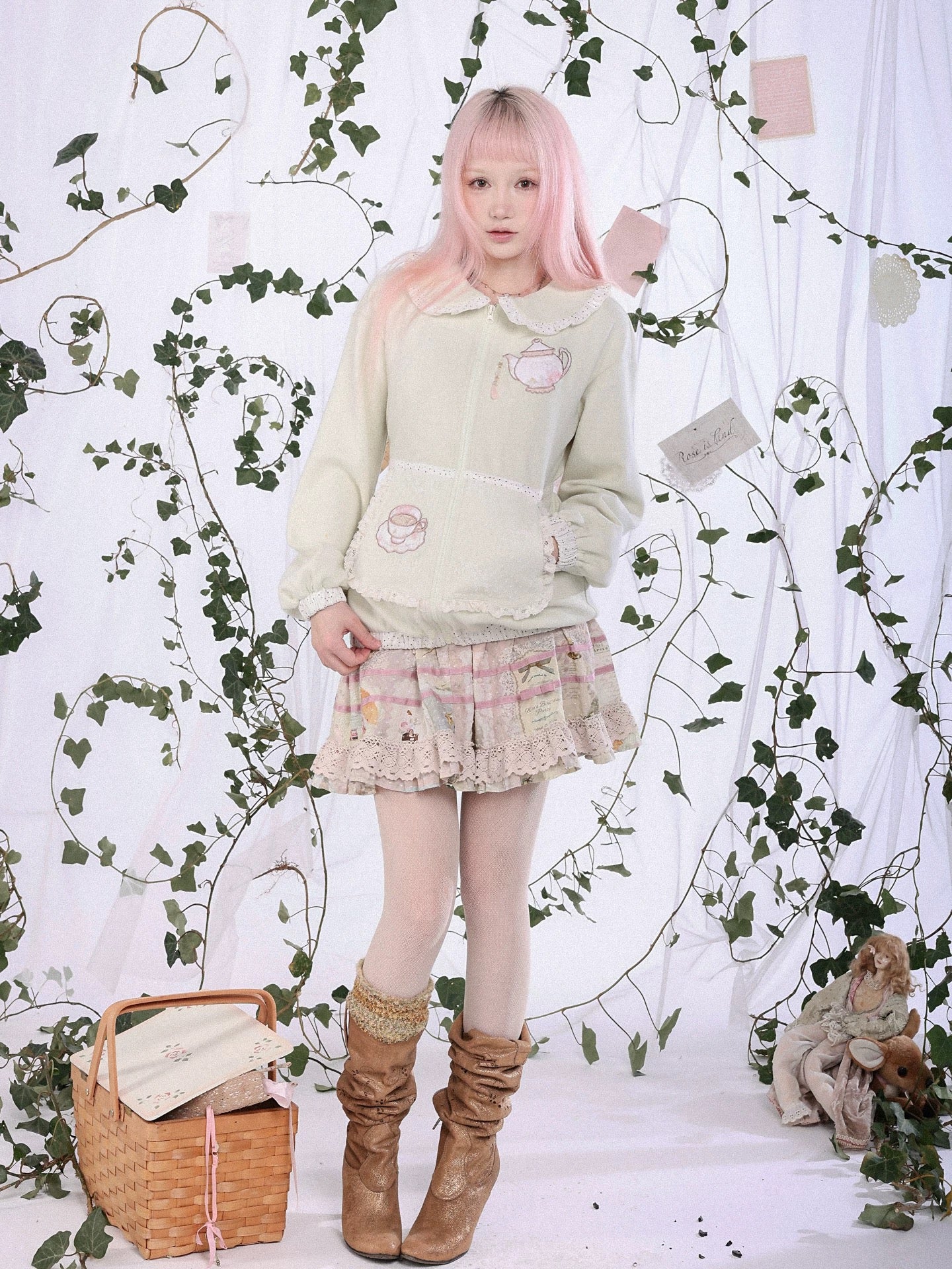 This zip-up knit hoodie from Rose Island’s 2026 Spring “Forest Tea Party” theme feels like wearing a gentle tea moment. Cozy yet romantic and for layering over dresses or pastel mini skirts.