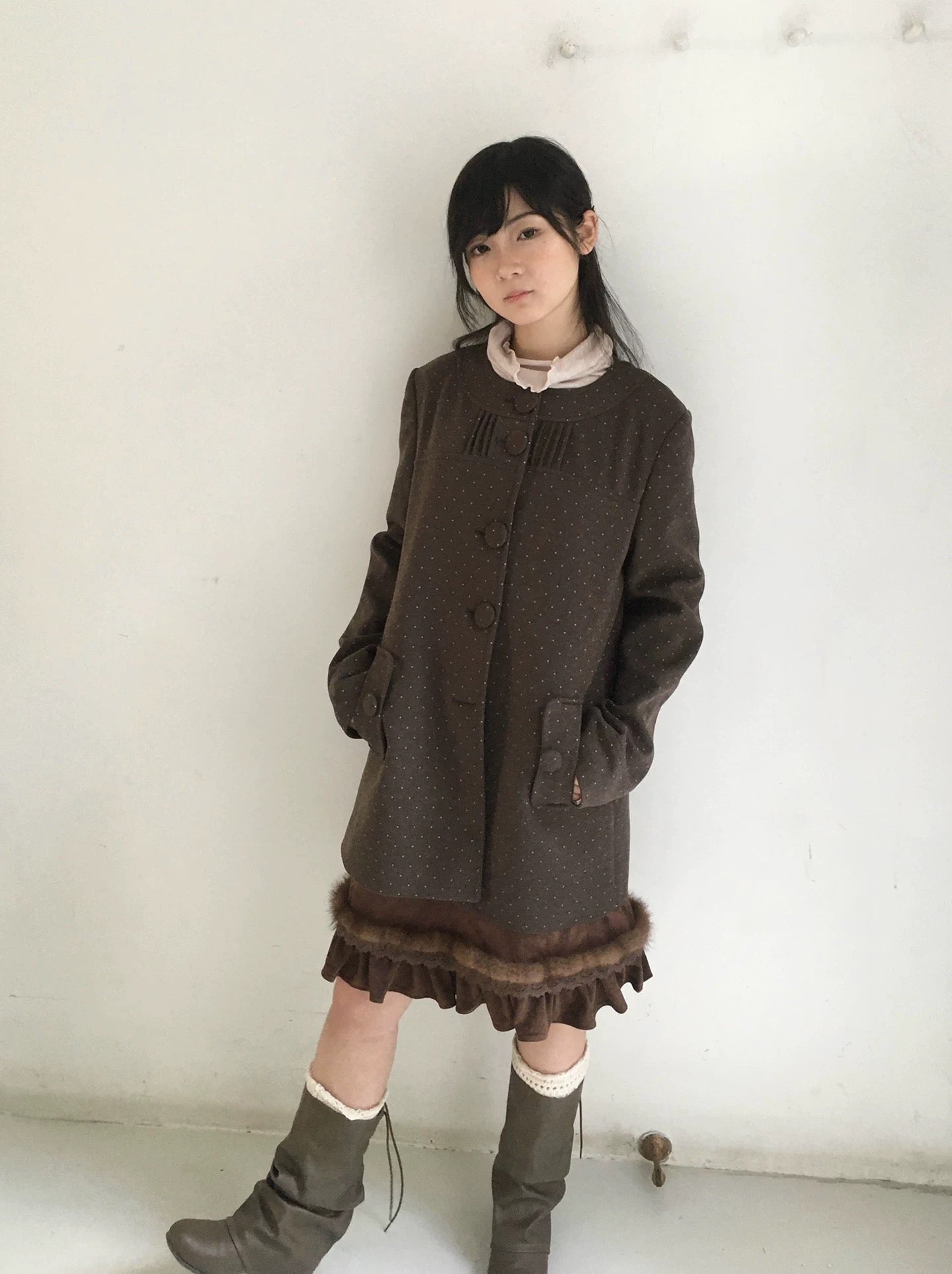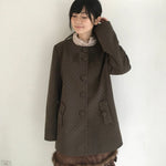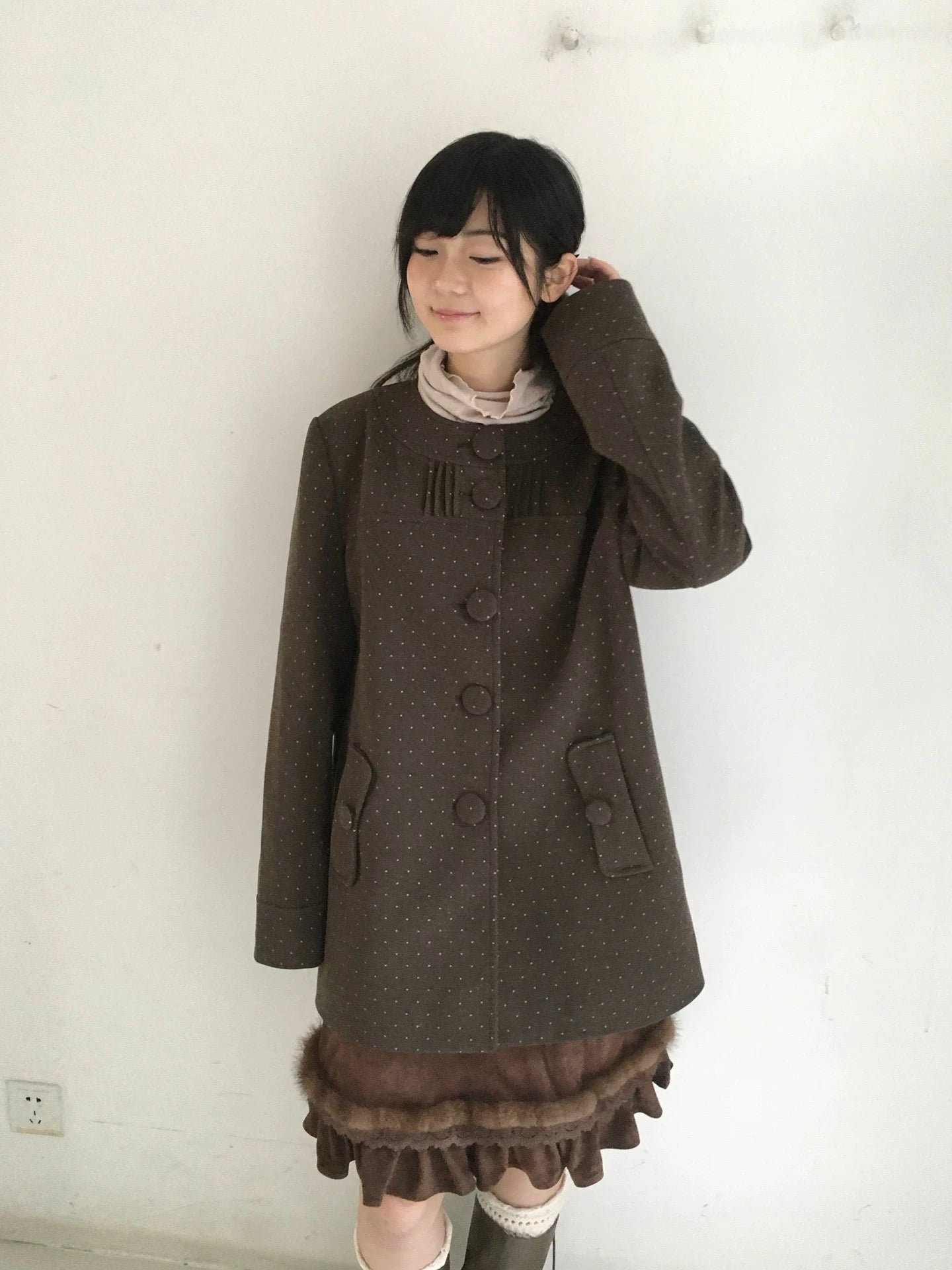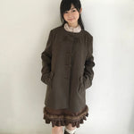 A sweet vintage touch wrapped in autumn warmth — this mid-length mori-kei style coat features a deep coffee-brown autumn color.