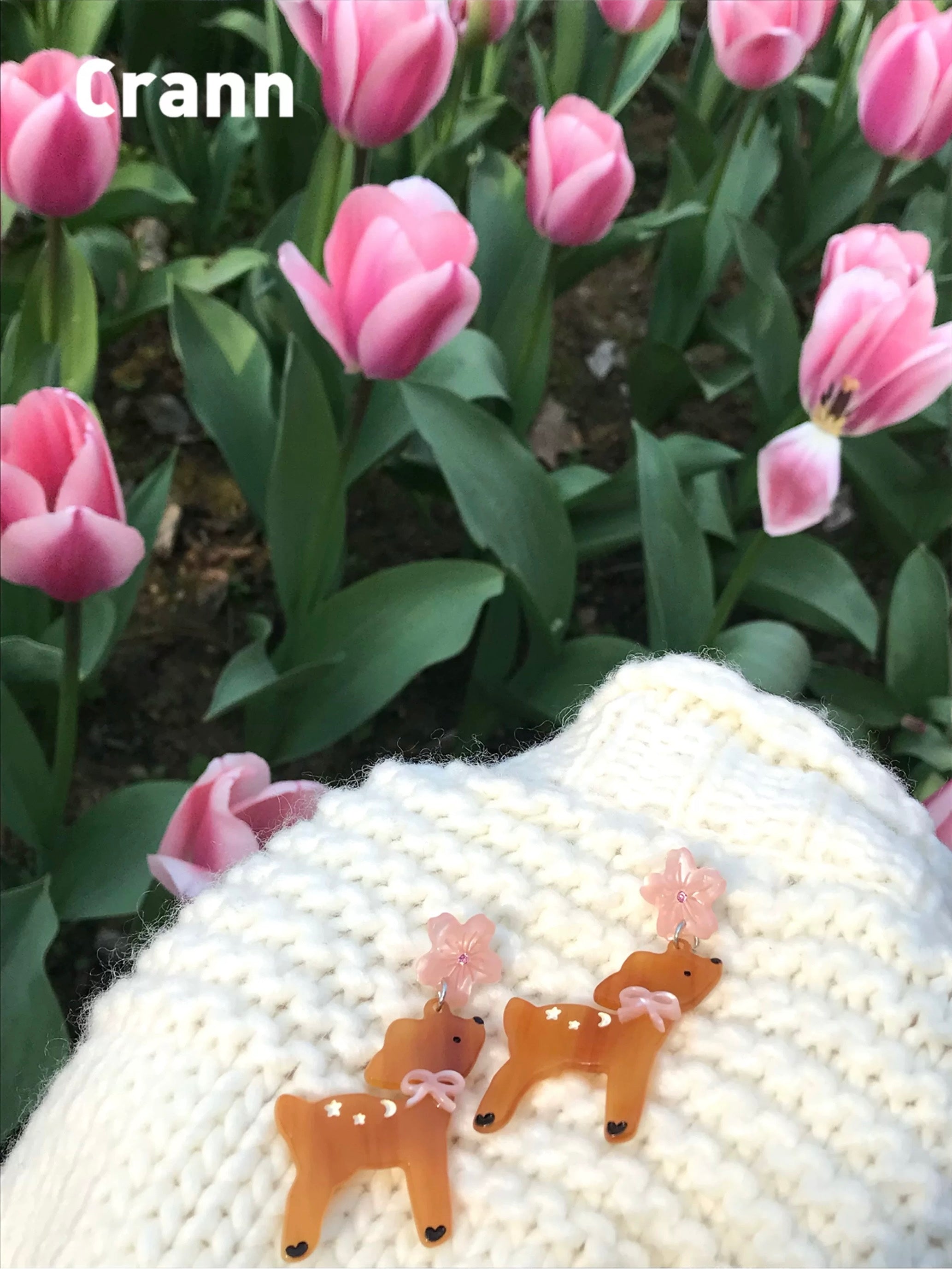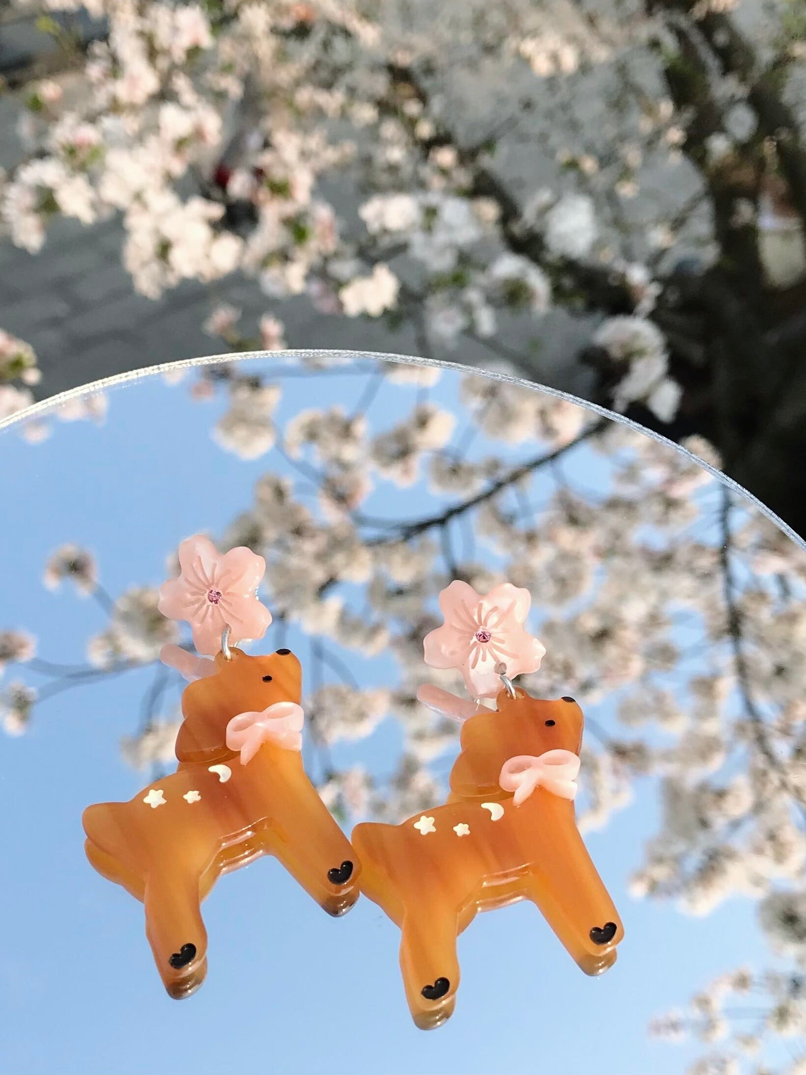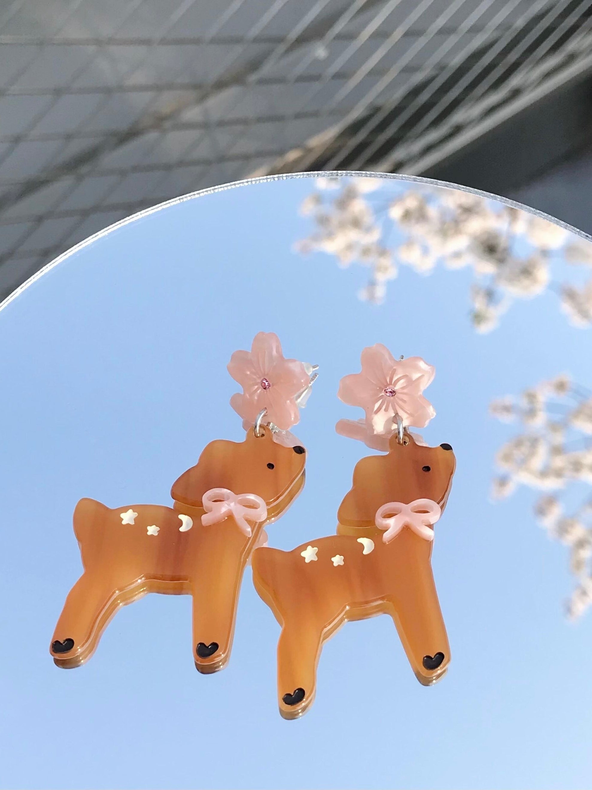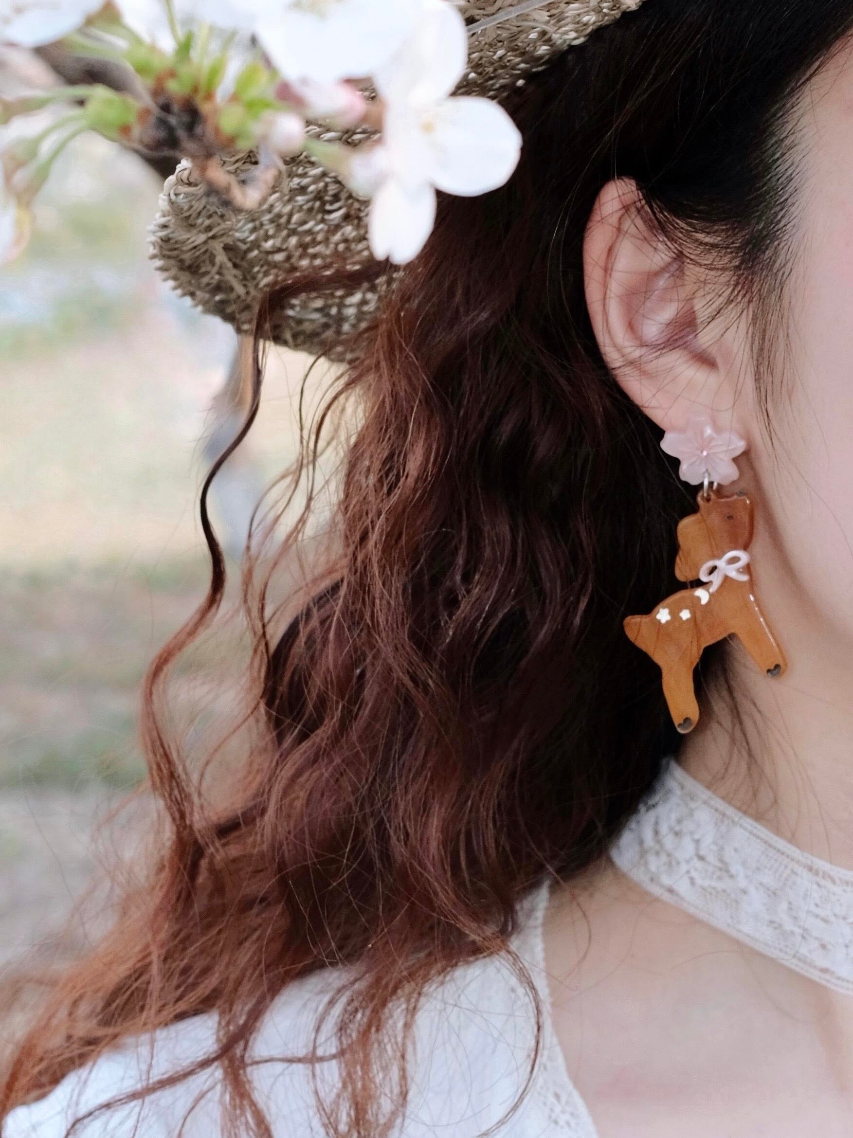 Deer In Sakura Garden Handmade Earring