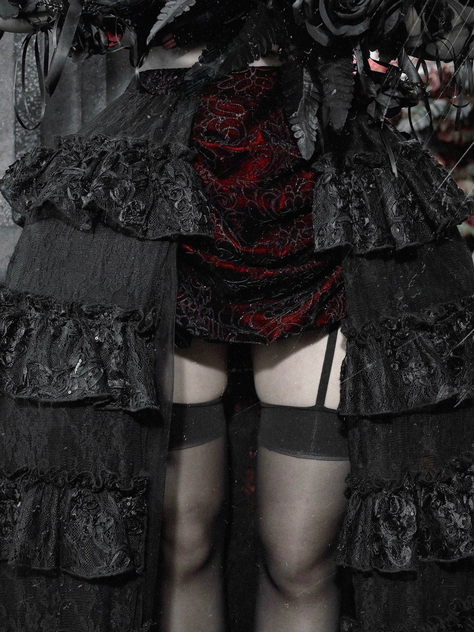 the Crimson Thorn Layered Skirt captures the allure of Gothic opulence and vampire romance.