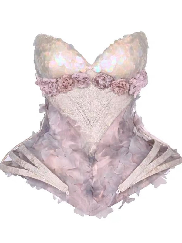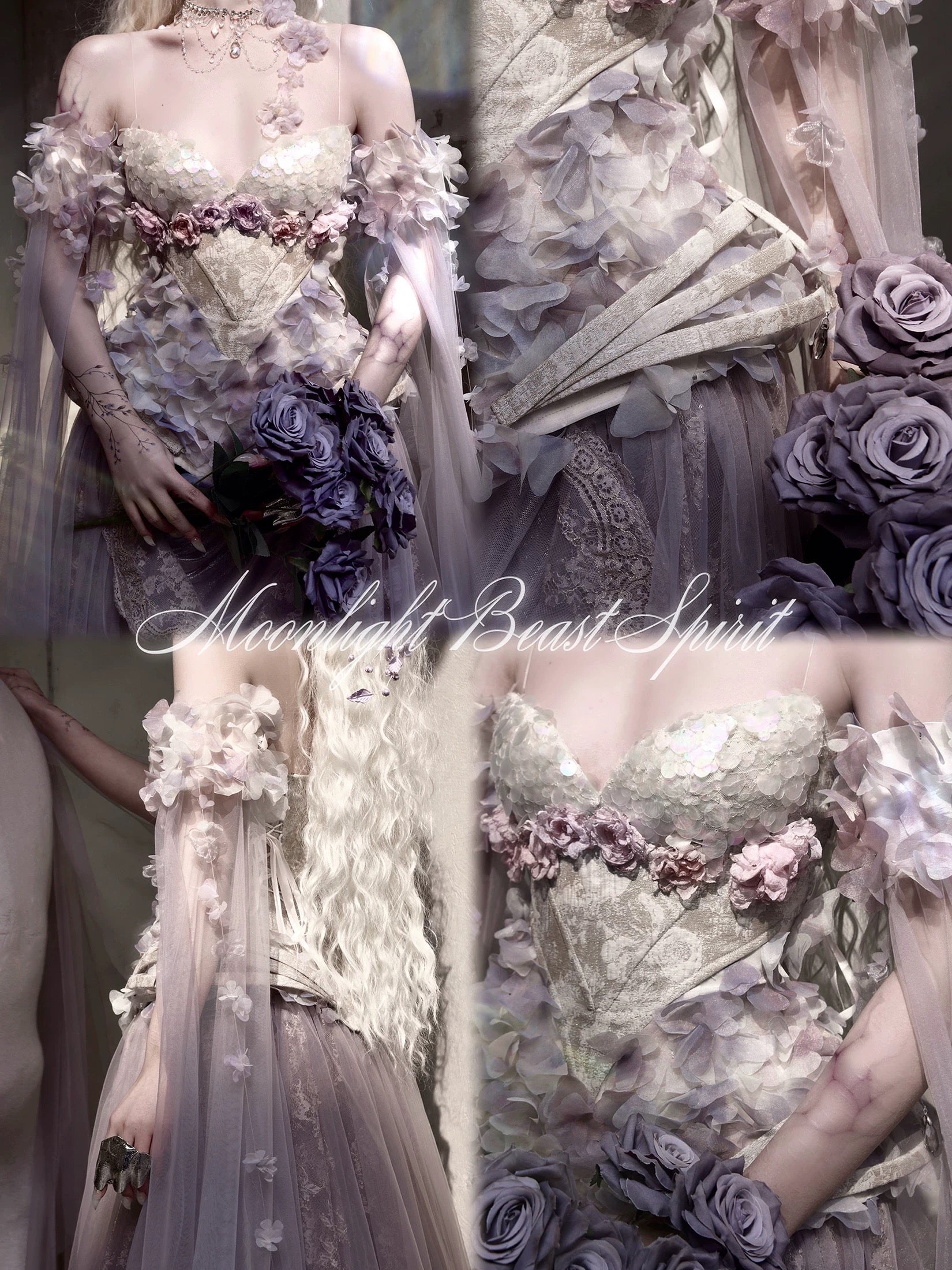 Inspired by the legend of the Moonlight Spirit, this corset top captures the mystical beauty of petals drifting under moonlight.