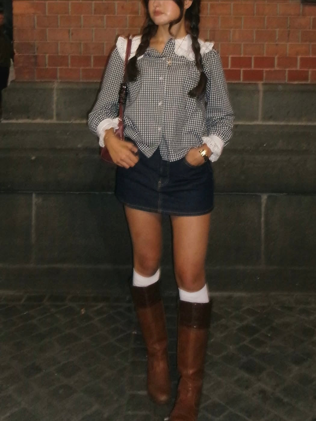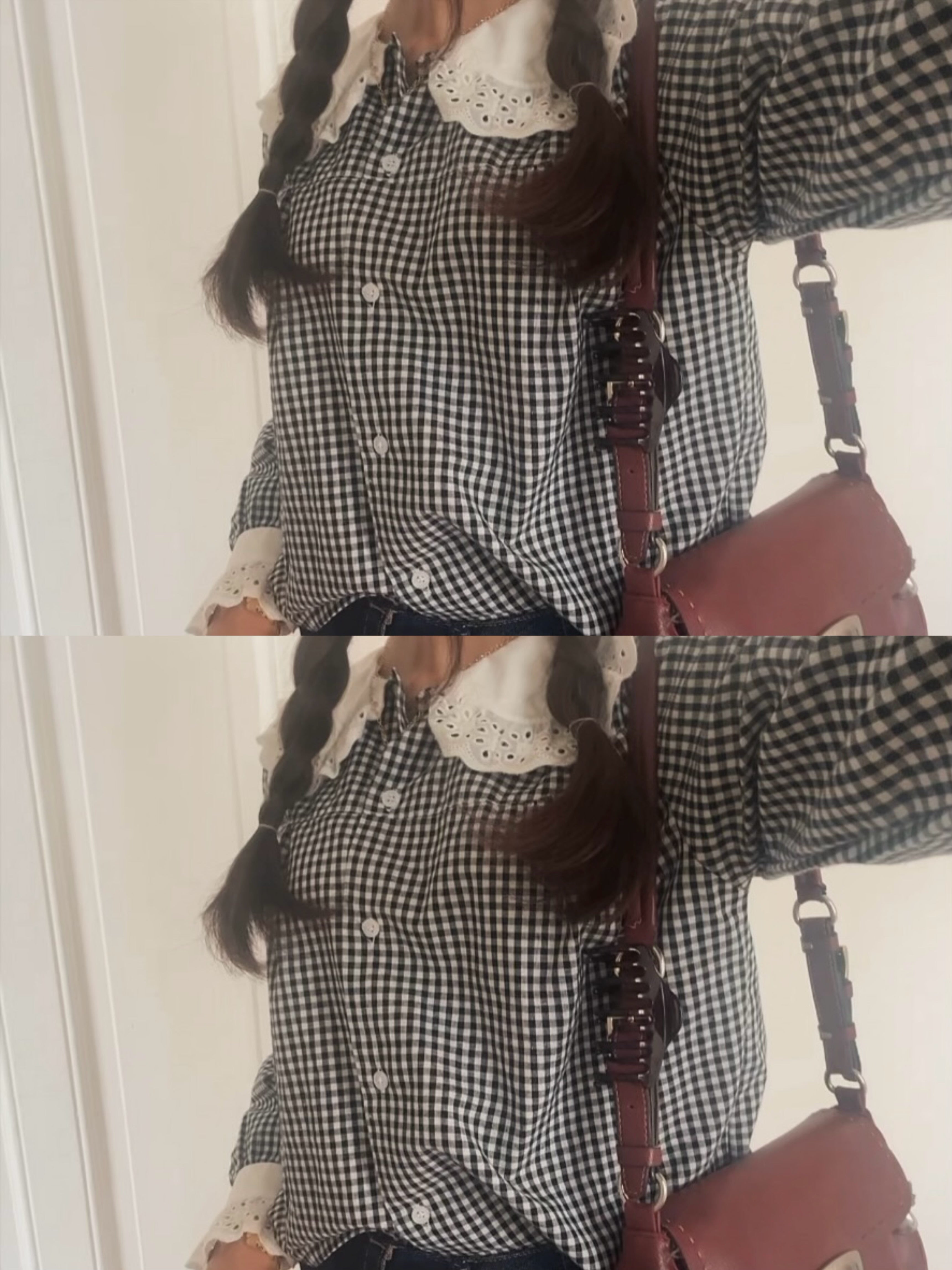 [Peiliee Design] Gingham Babydoll Cotton Shirt