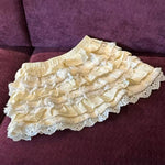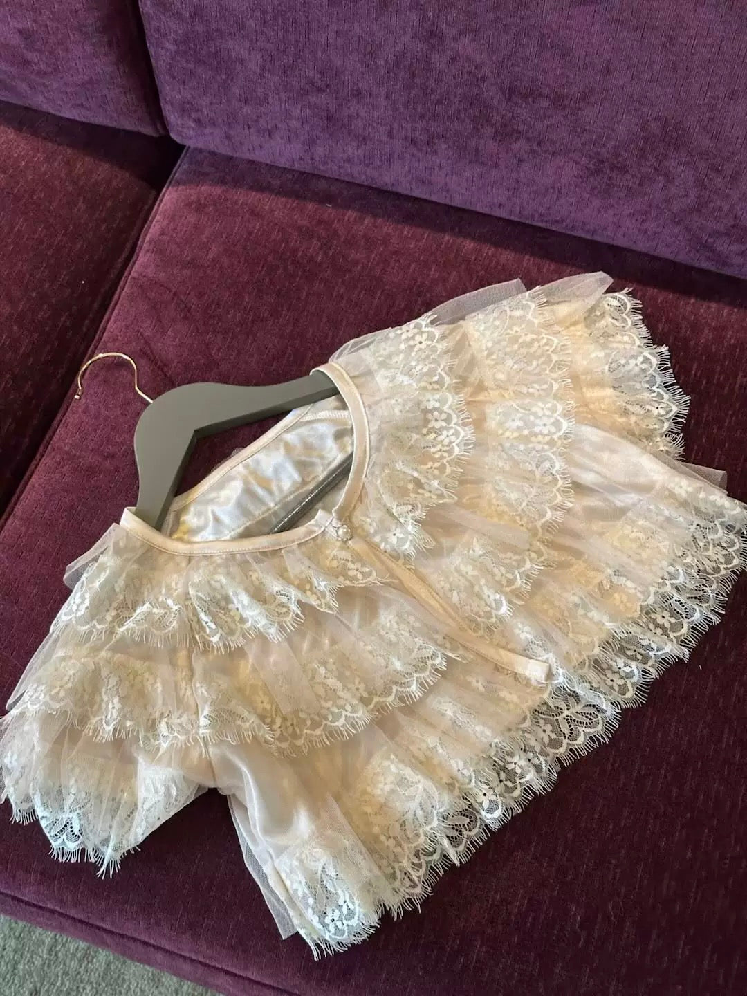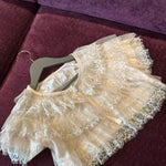 コットンレースとシフォンフリルが重なり合い、クラシカルでドールのようなシルエットを演出します。