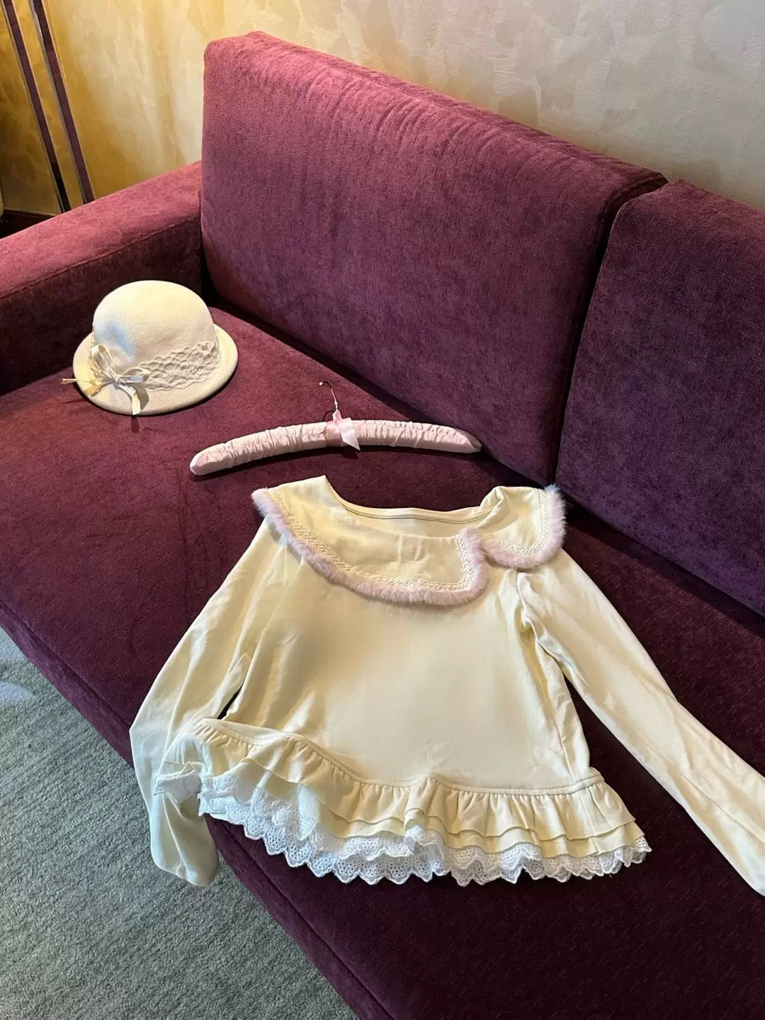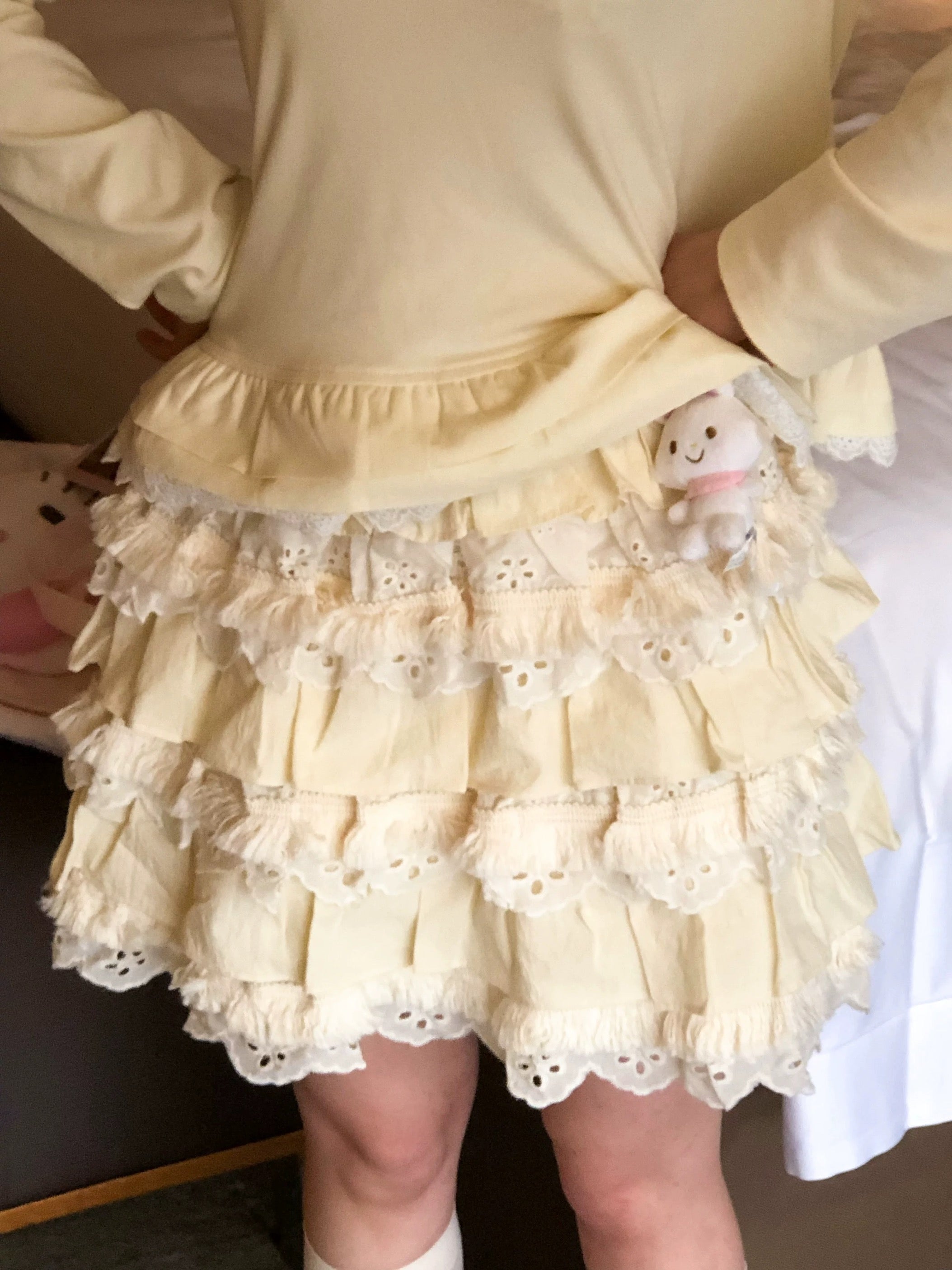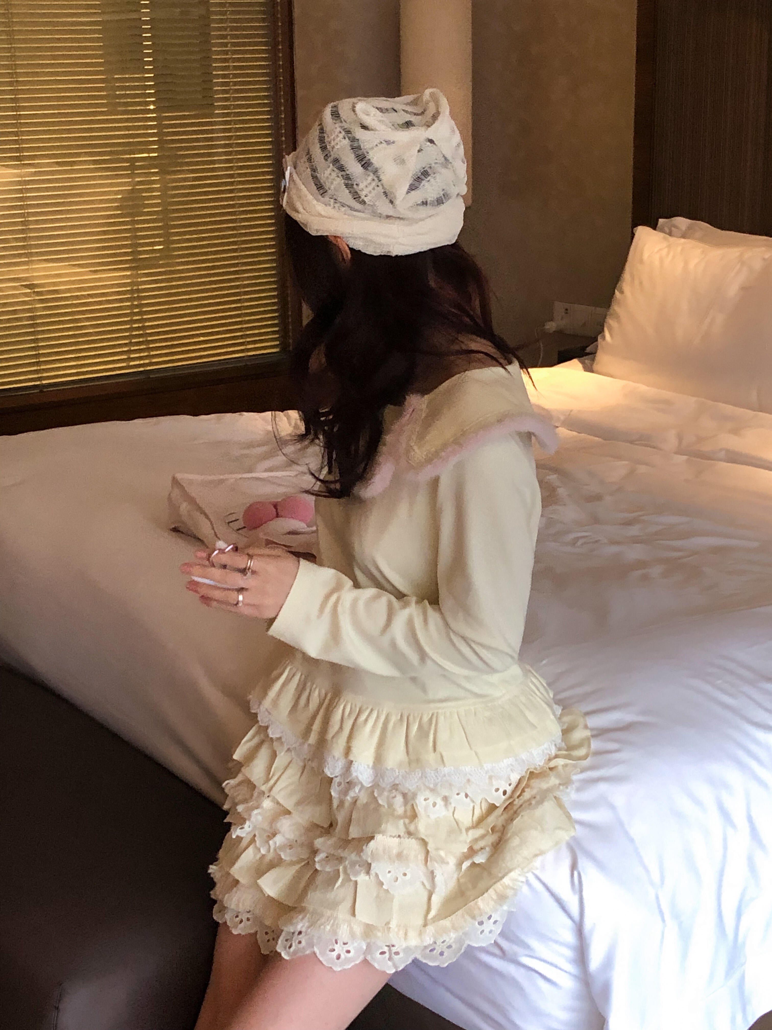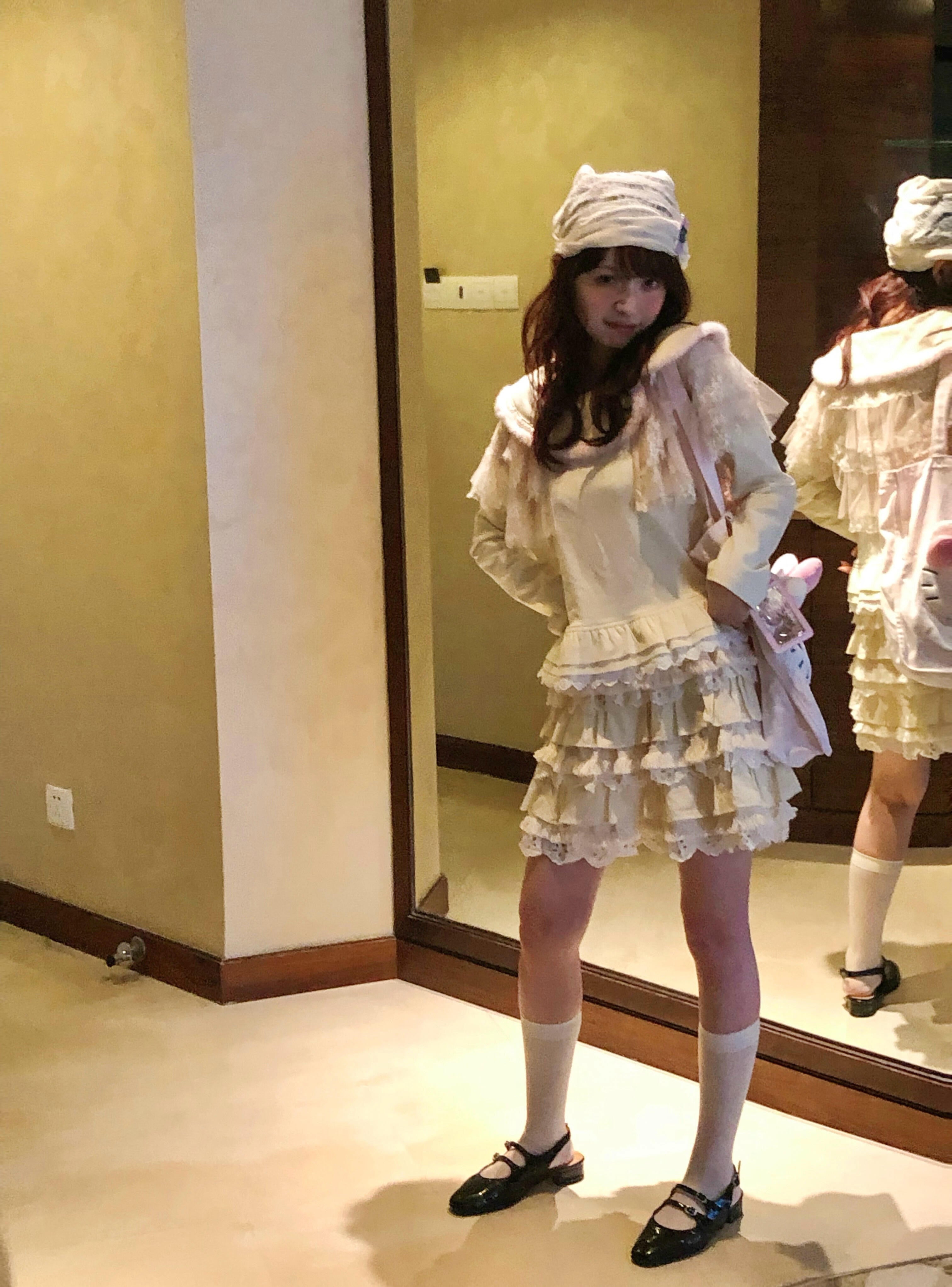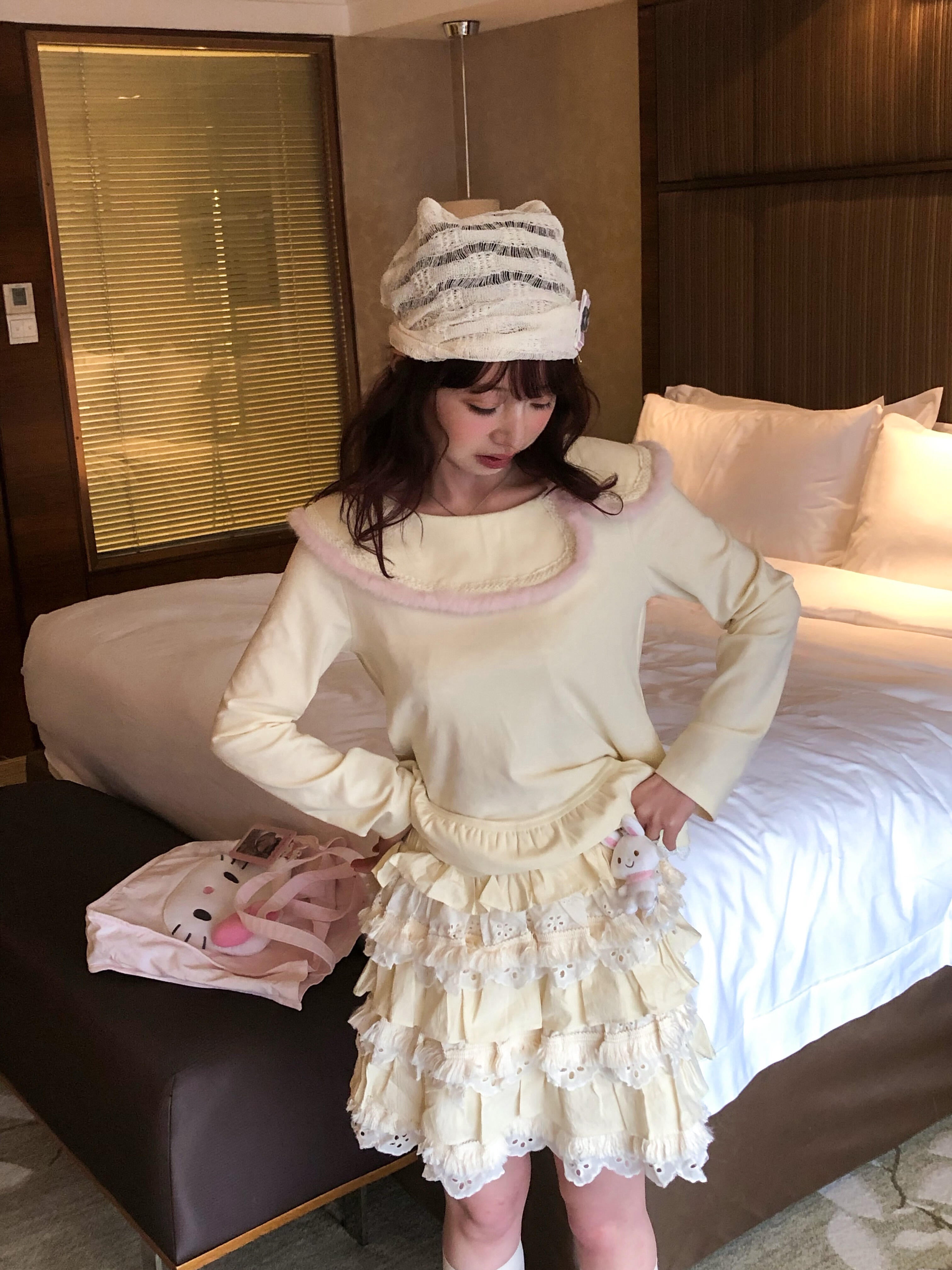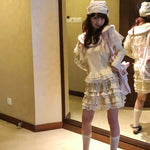 Perfect for layering in winter or wearing alone in spring, with cream white leg warmers. This set captures that soft, vintage Japanese girly mood — just like a tiny cream puff come to life. 🧁✨