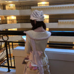 A sweet pastel dream — this Rose Candy Cream Puff Set features a fluffy knit top with a soft pink sailor collar and a layered tiered “cake skirt” sweet and dolly.