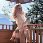 The Strawberry Brownie Patchwork Mini Skirt is a dreamy, cottage-inspired Rose Island piece created with soft layering and gentle forest-girl colors.