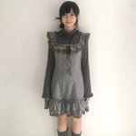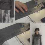 Delicate double-layer lace trims around the collar and cuffs add a touch of quiet romance, perfect for layering under dresses, pinafores, or wool coats.