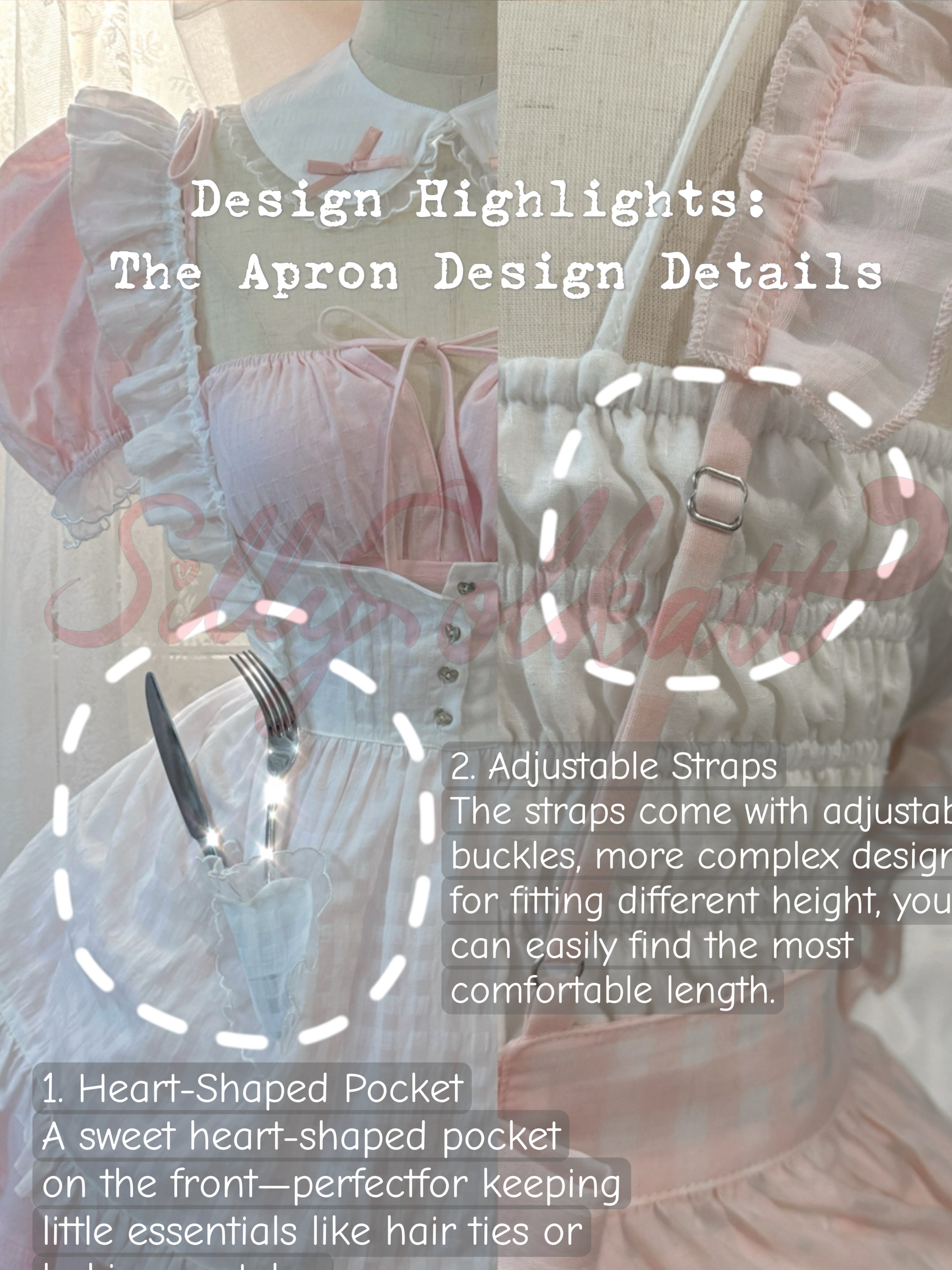 - Collar is together with the apron as a set, the collar is finished with the same cute little shell buttons.
