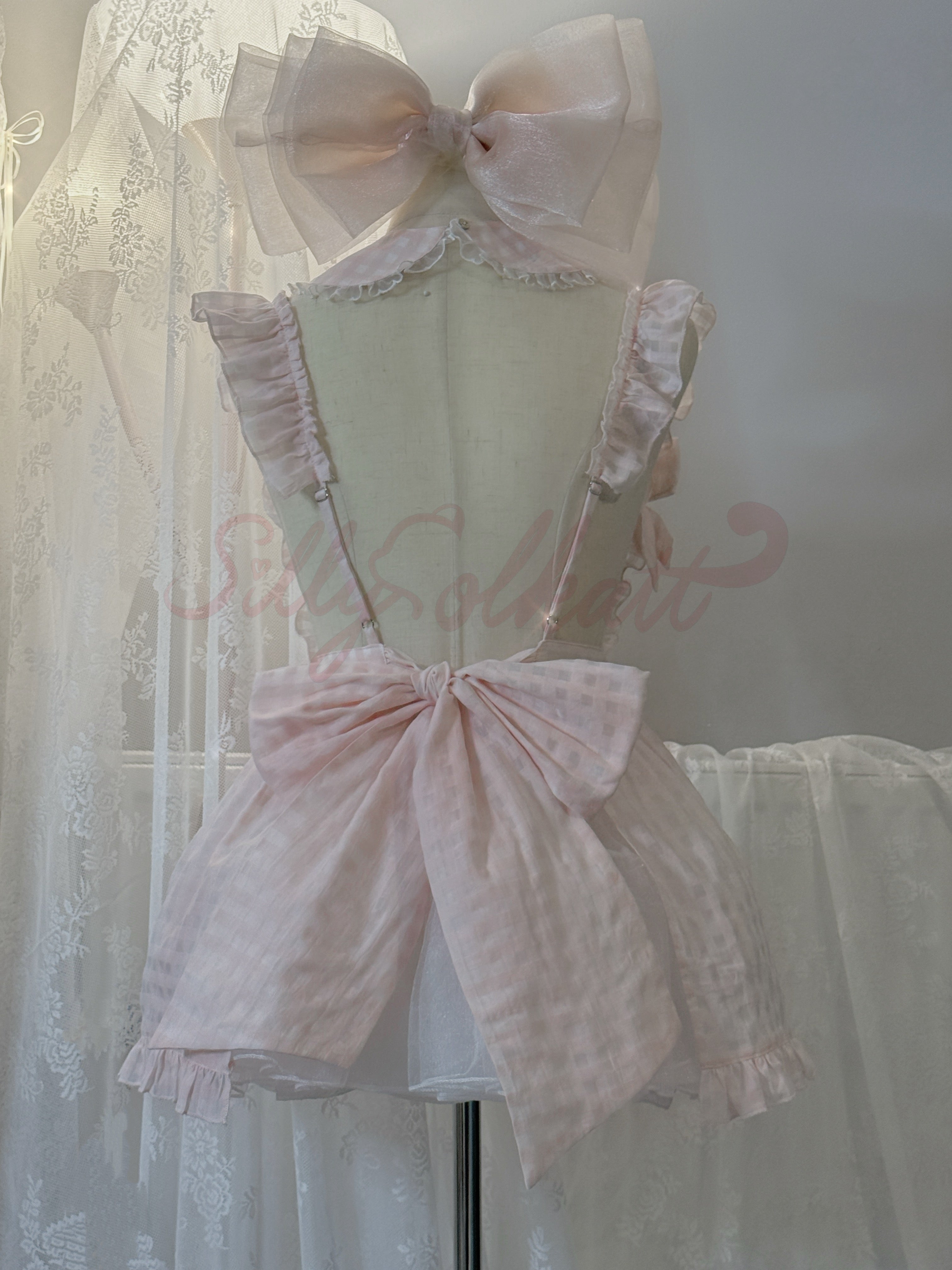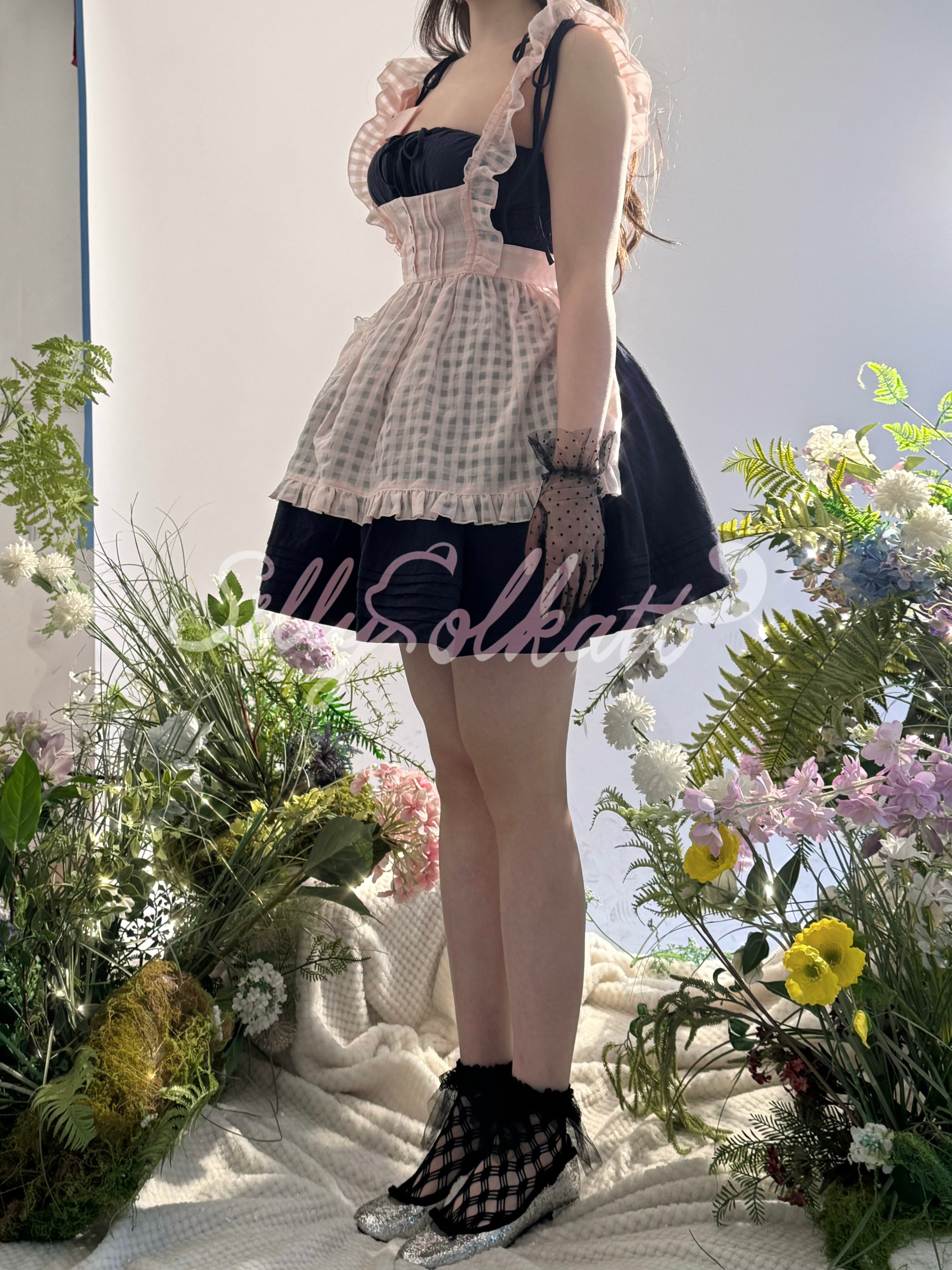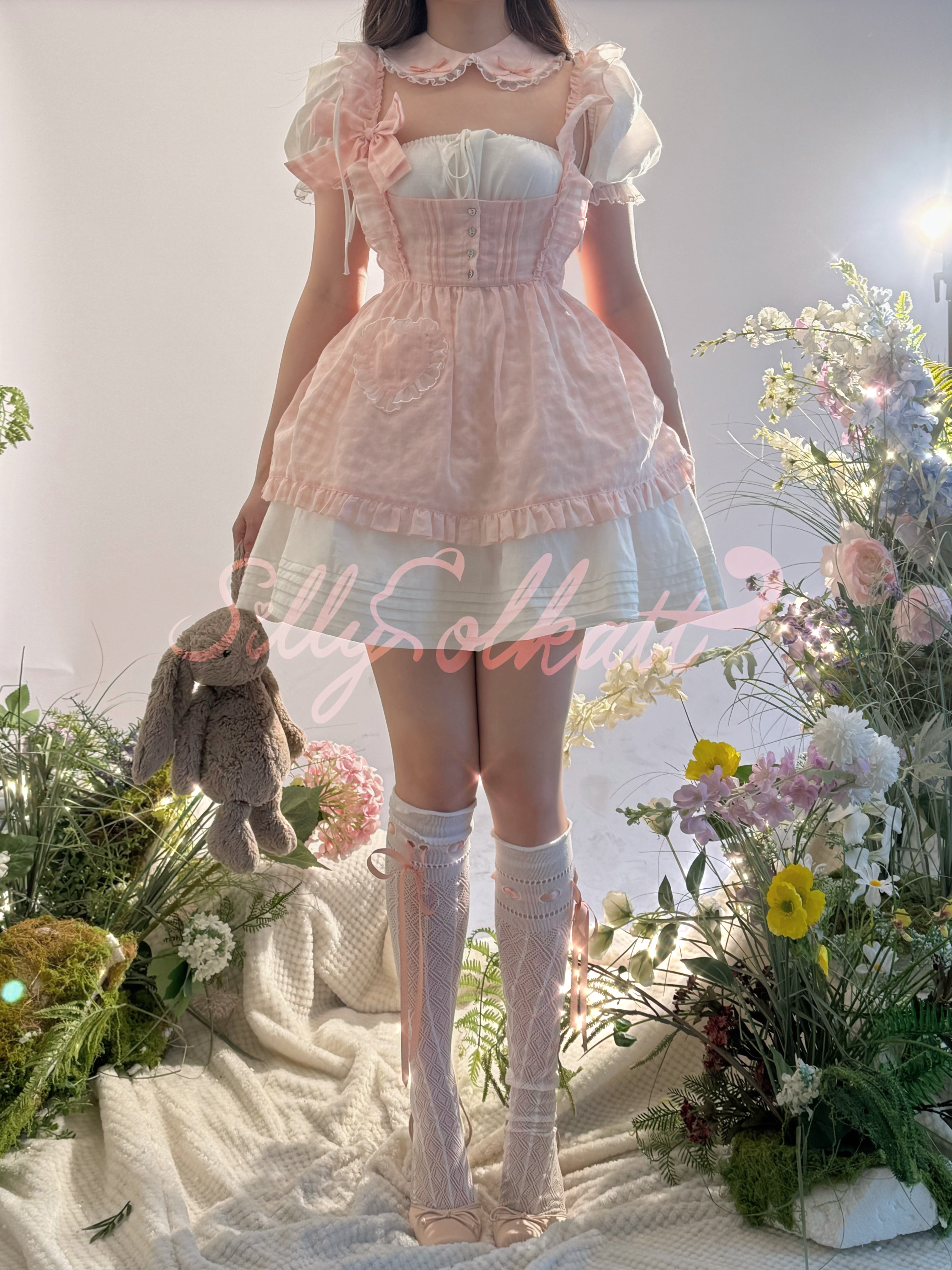 [Sold out forever — just here to be remembered ♡] Silly Solkatt Alice’s Little Melody Pink Gingham Apron Set