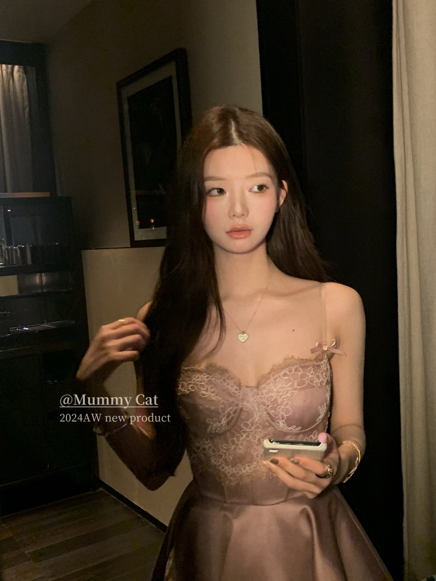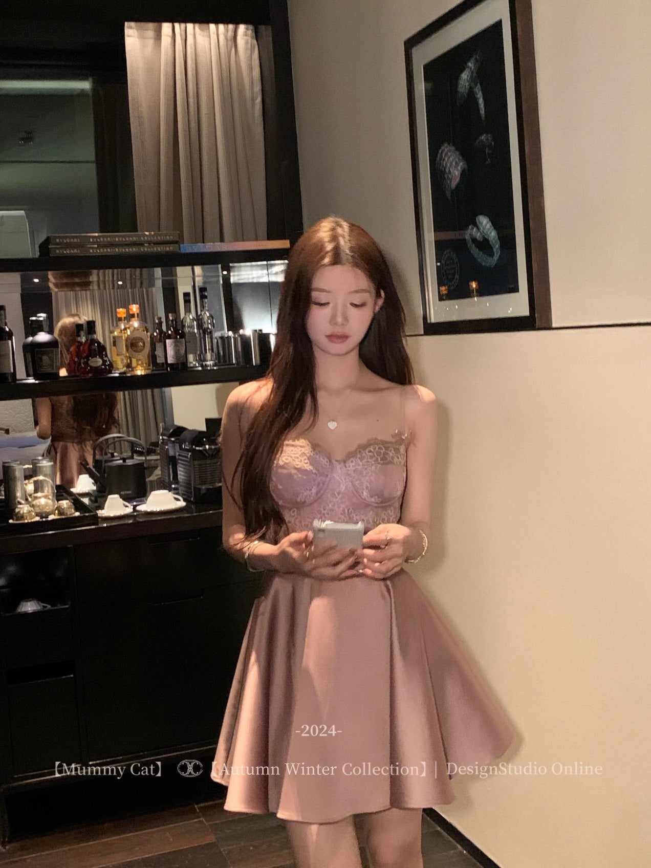 [Mummy Cat] My Elegant Angel Satin and Lace Mini Dress