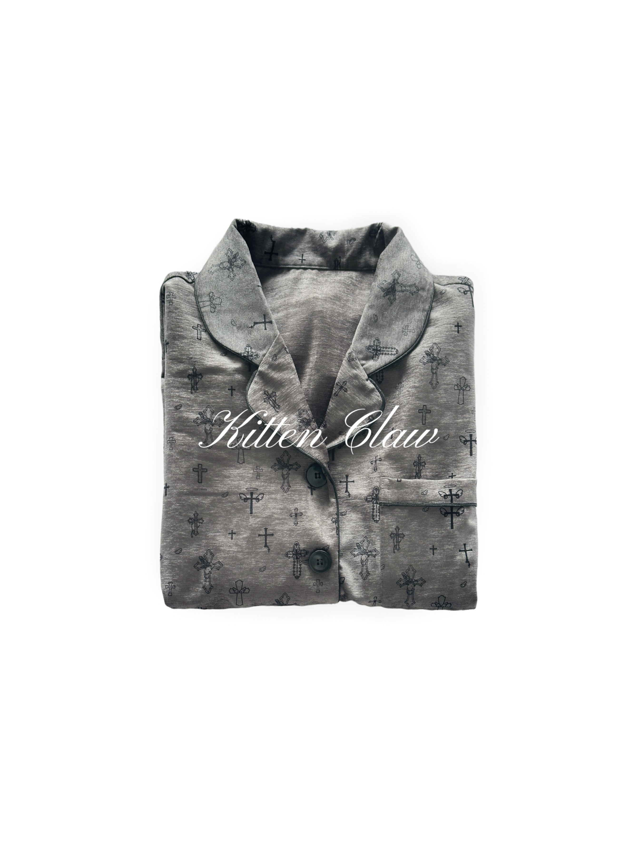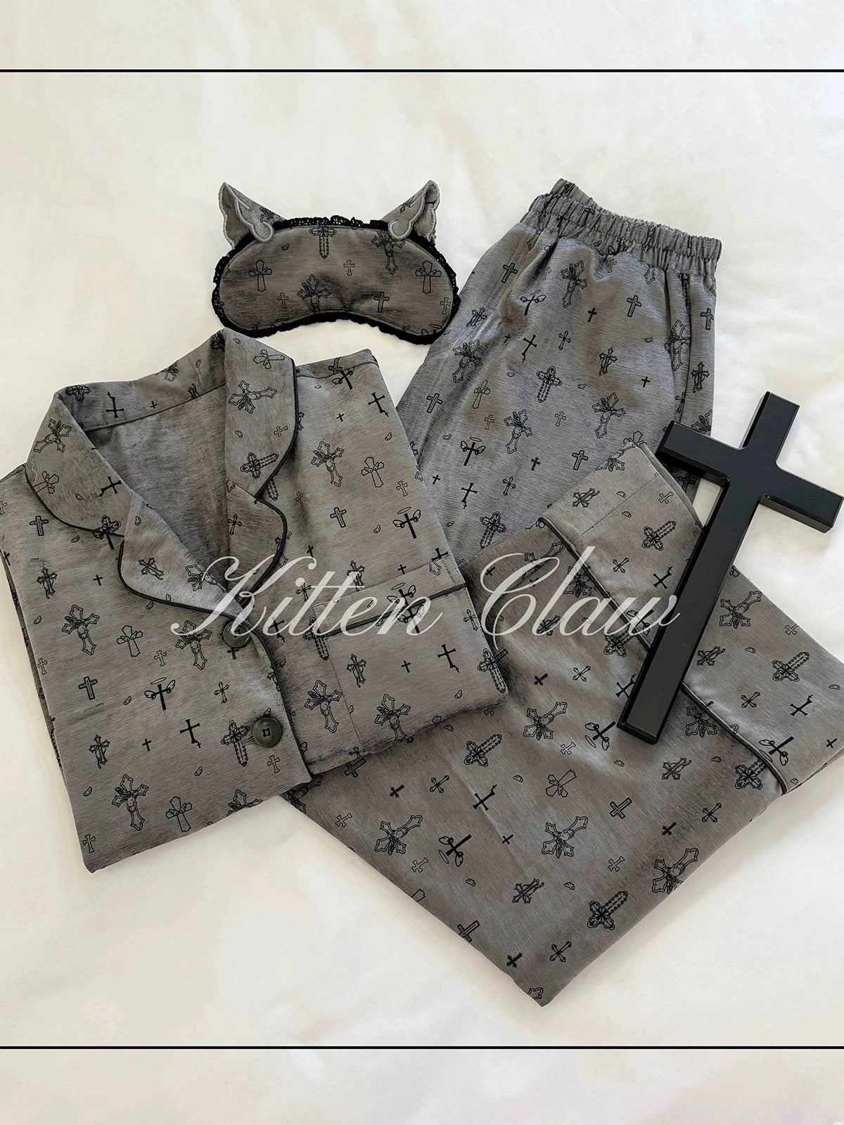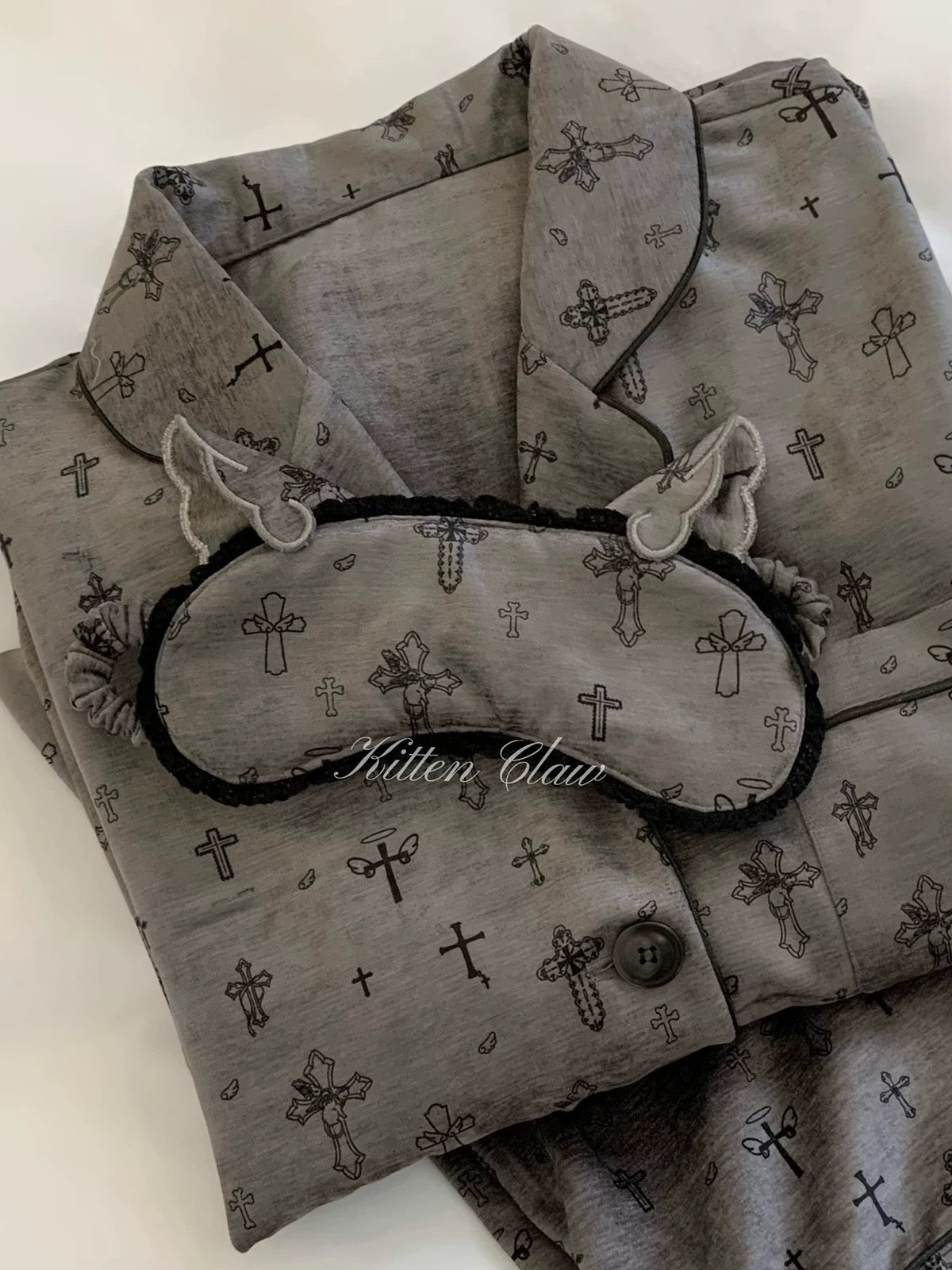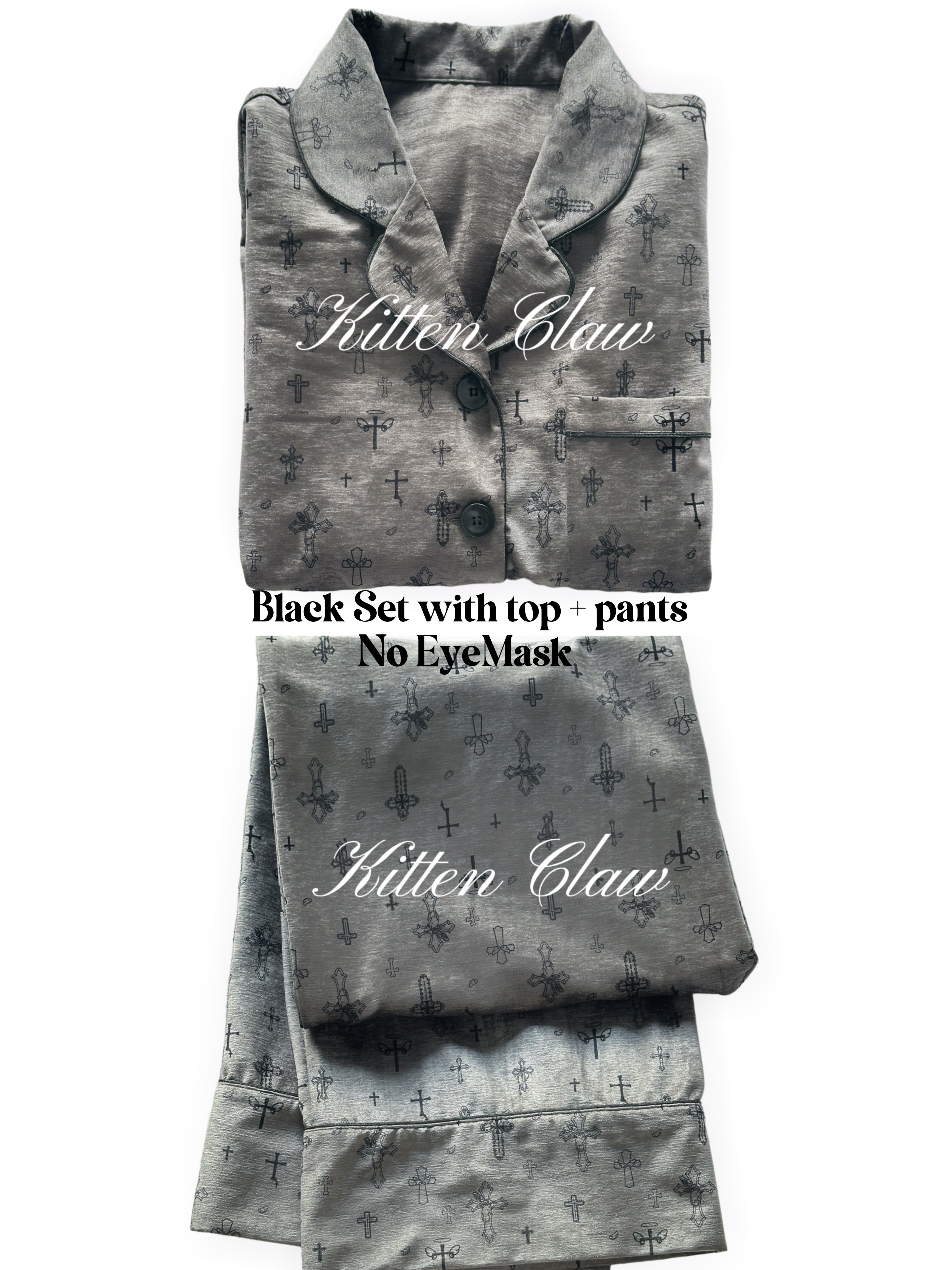KittenClaw Dark Grey Dream Cross Pajamas Set