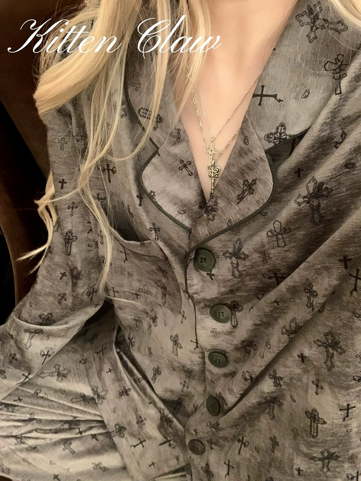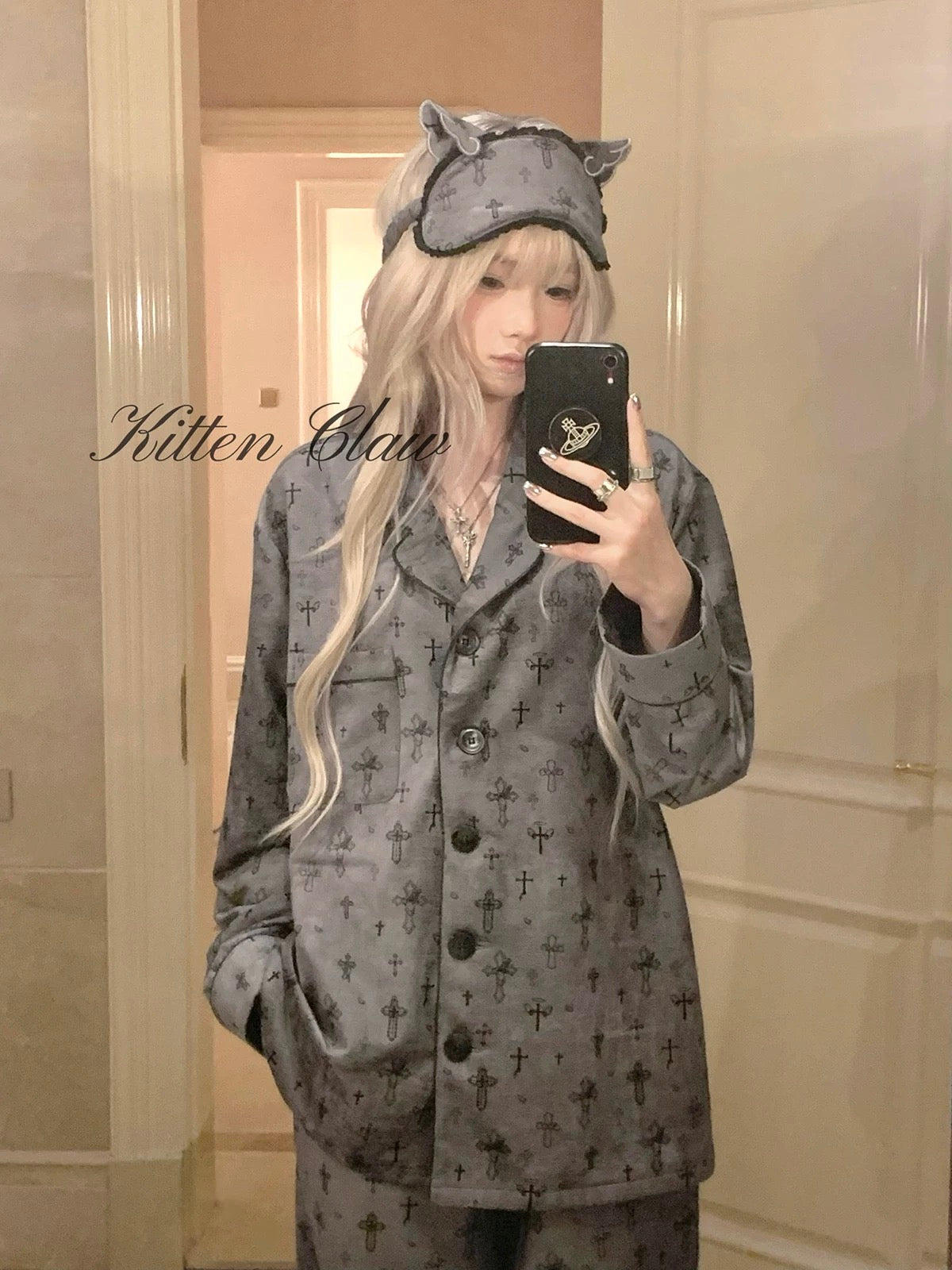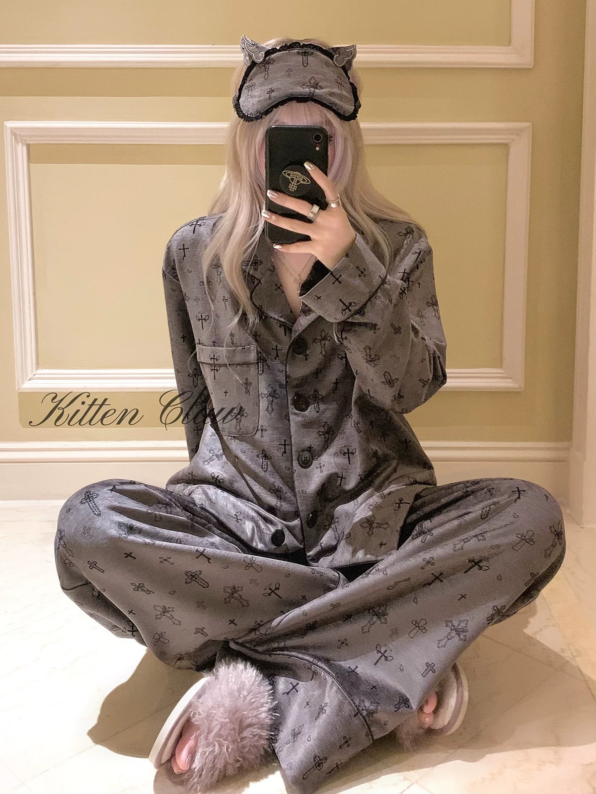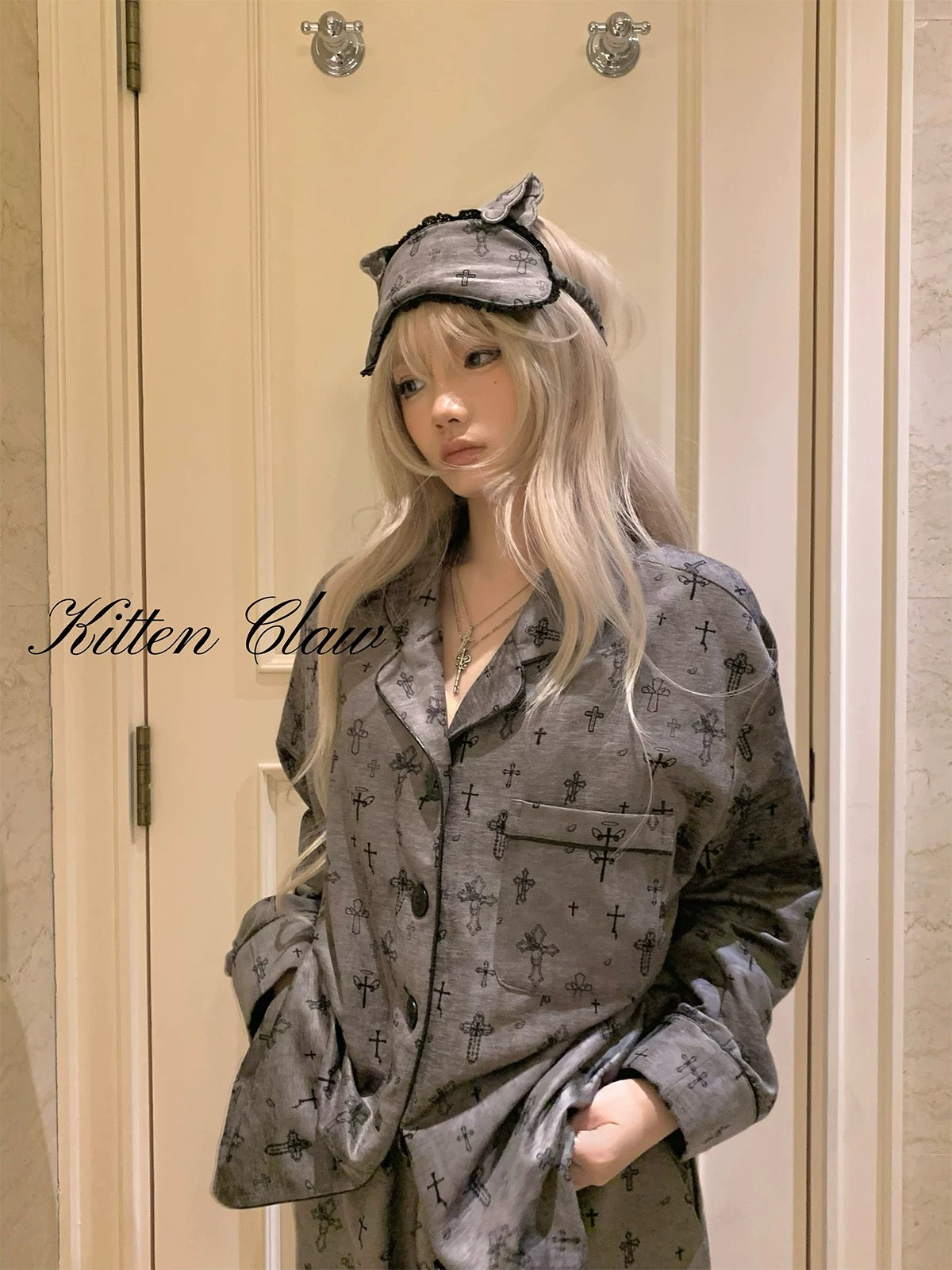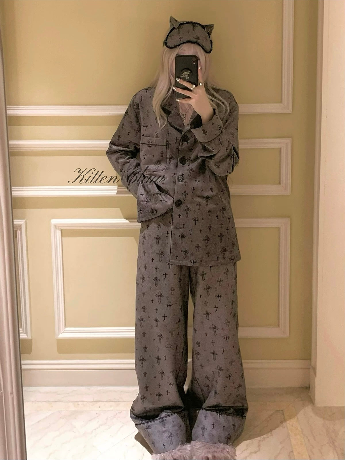 KittenClaw Dark Grey Dream Cross Pajamas Set