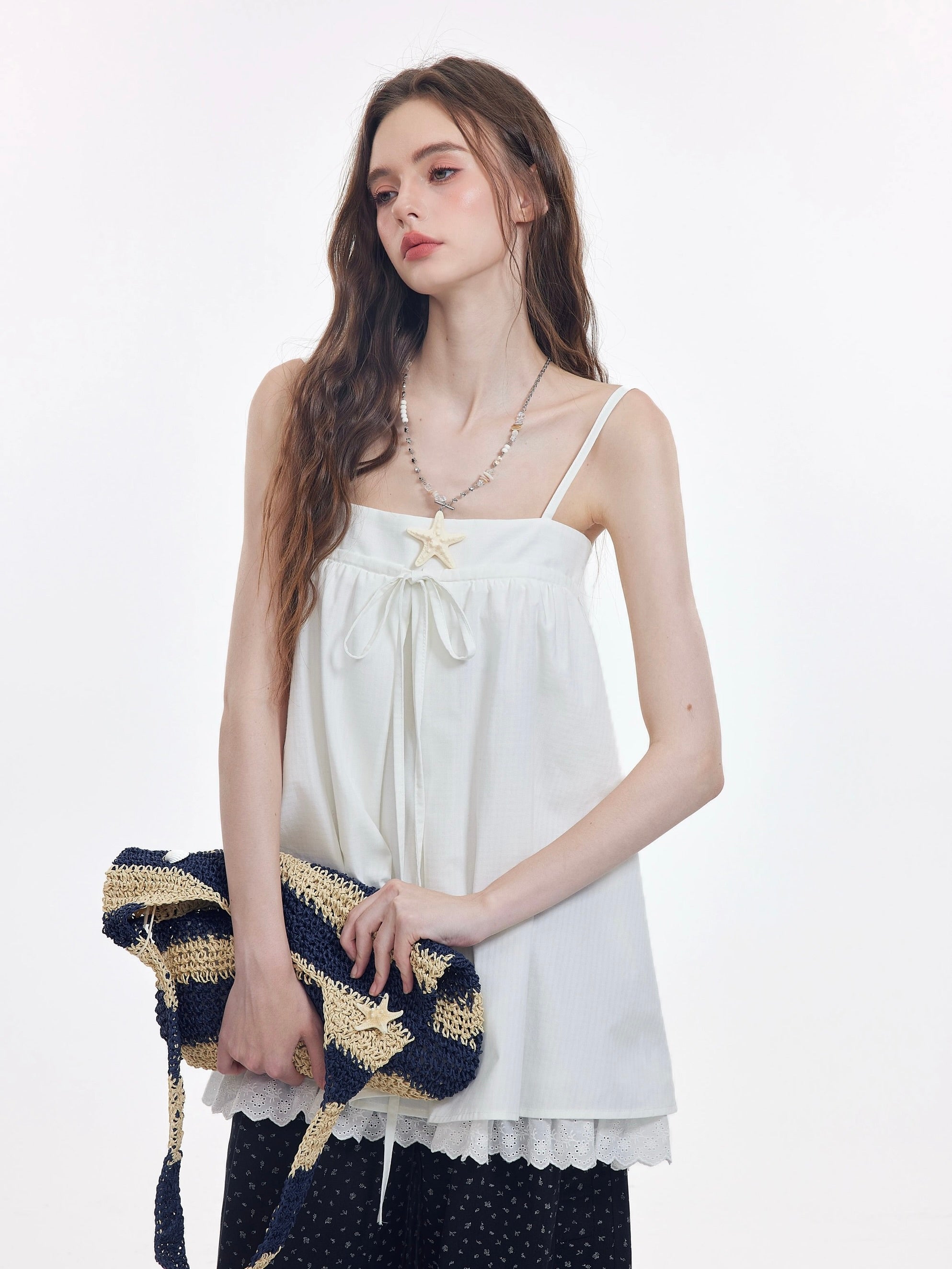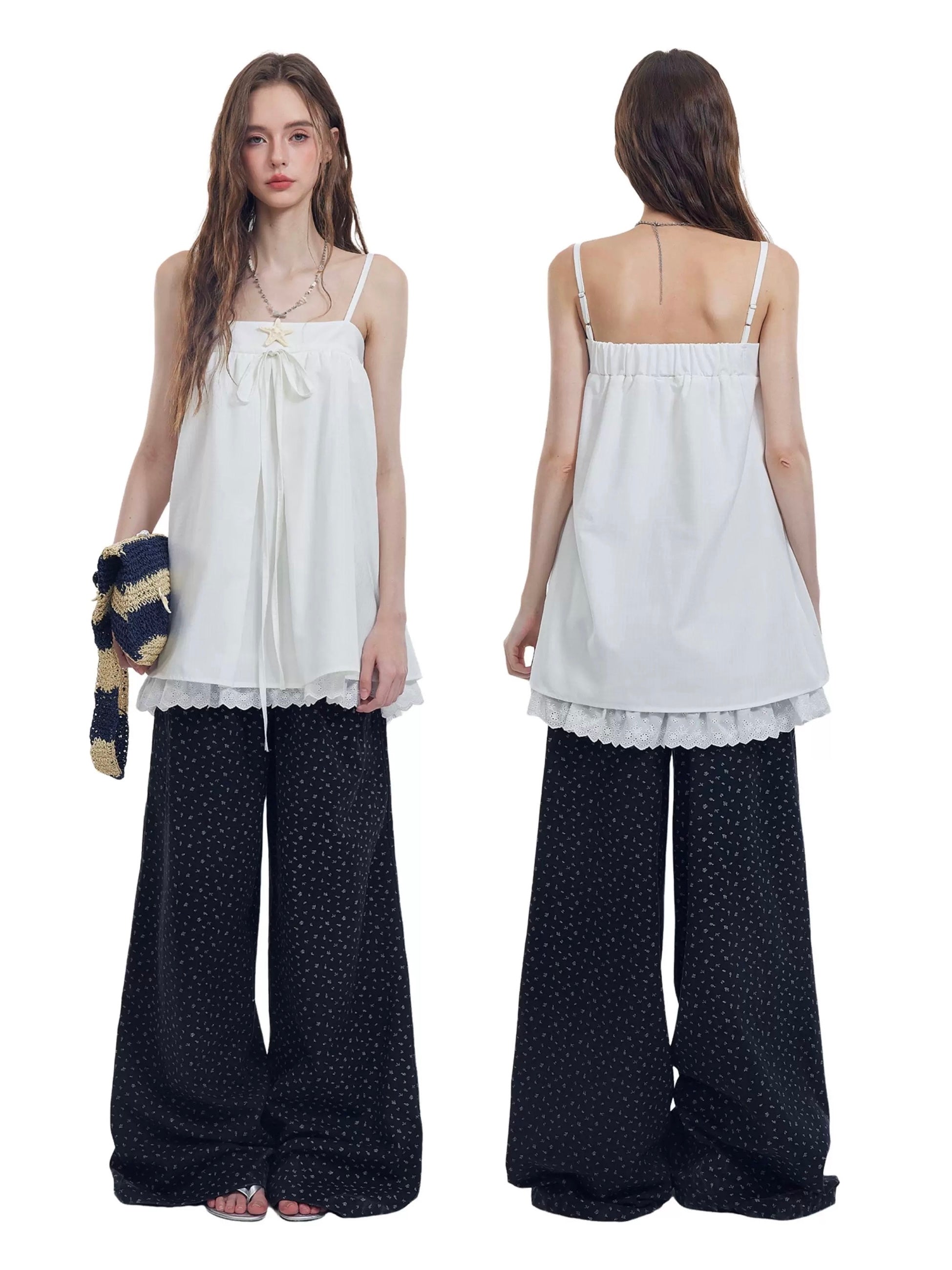 Complete with adjustable straps and a front ribbon tie, this Korean-inspired look is your go-to for effortless outfits that feel cute but not overdone. Ideal for soft girl, coquette-core, or Brandy-inspired minimal styling.