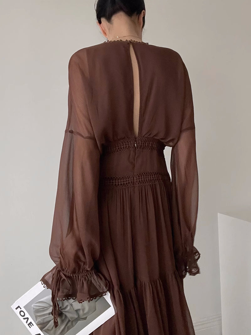 Agouのご紹介:ロマンチックな夜にぴったりのドレスです!上質な素材で仕立てられたこの白いドレスは、美しいVネック、レース、そしてくり抜かれたディテールが、柔らかでフェミニンな雰囲気を醸し出します。ビーチサイドでの休暇や特別な日にぴったりです。