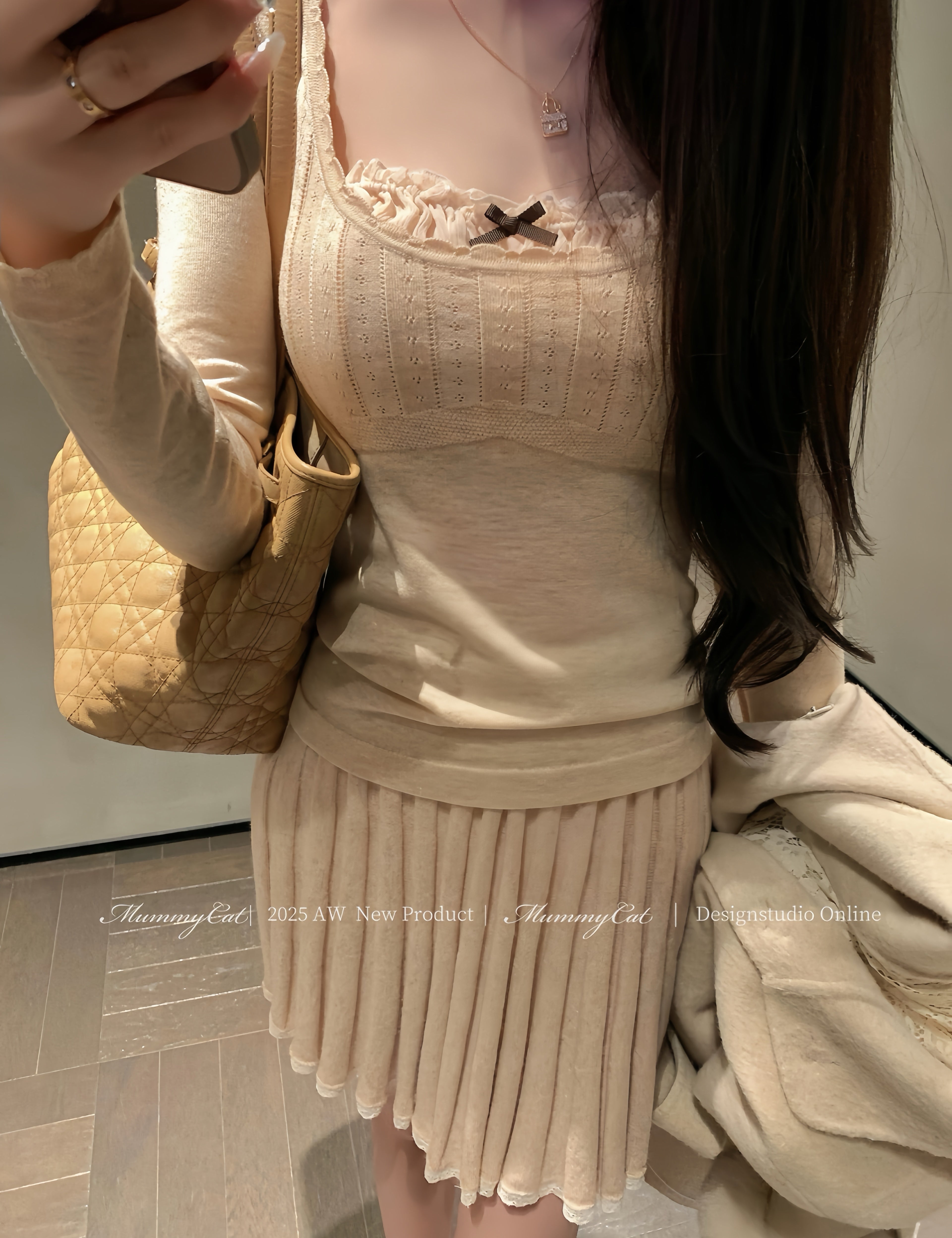 [Mummy Cat] Sicilian Cream Wool Blended Mini Skirt