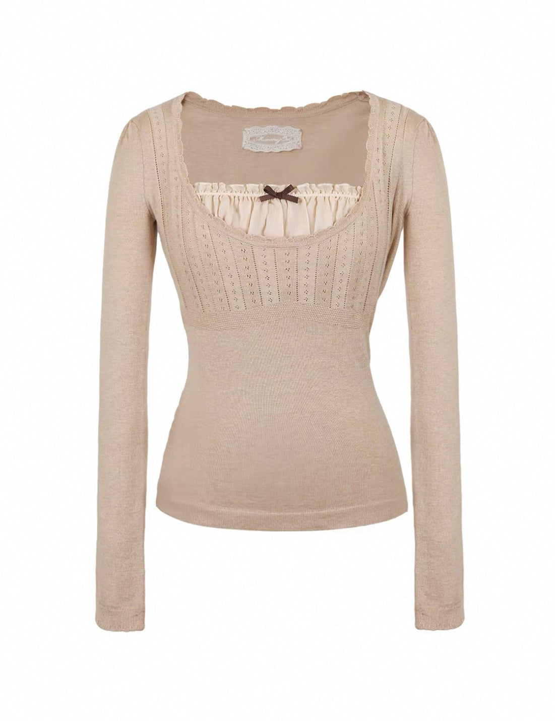 MineBeThyVers Cocoa Dots Lace Sweatshirt