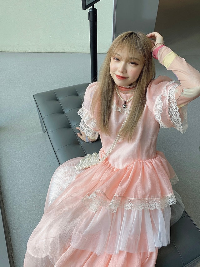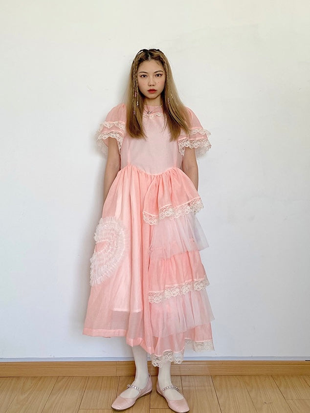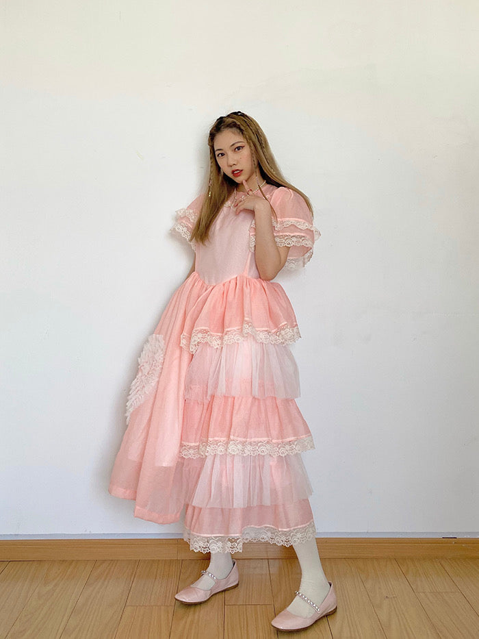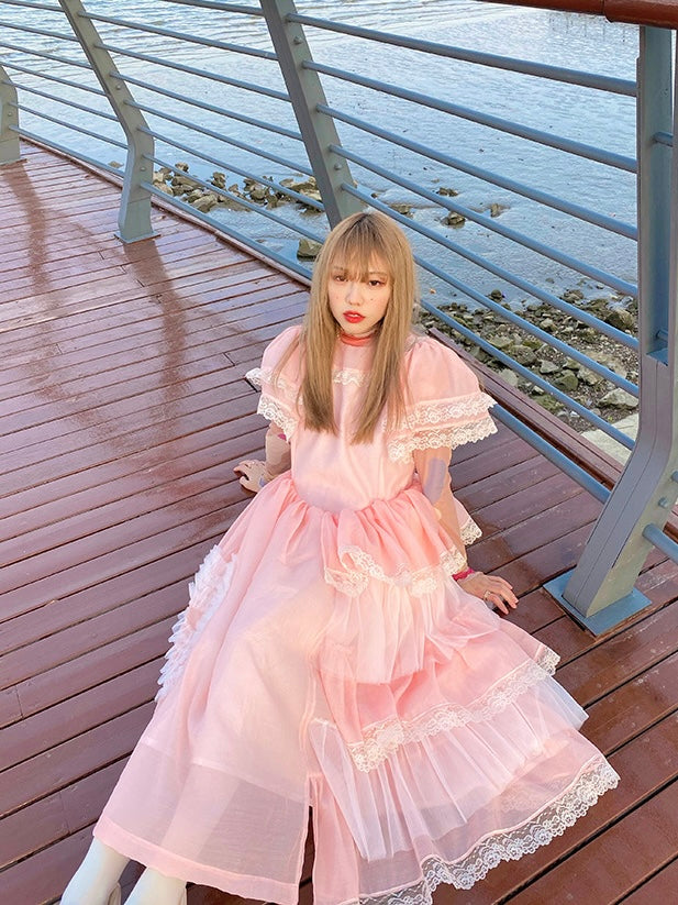 [8月のユニコーン] ストロベリーショートケーキレースミディワンピース