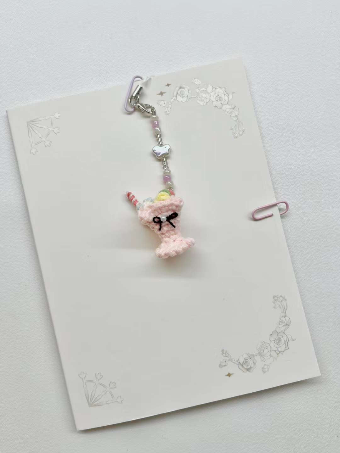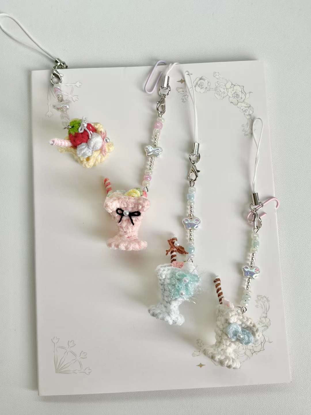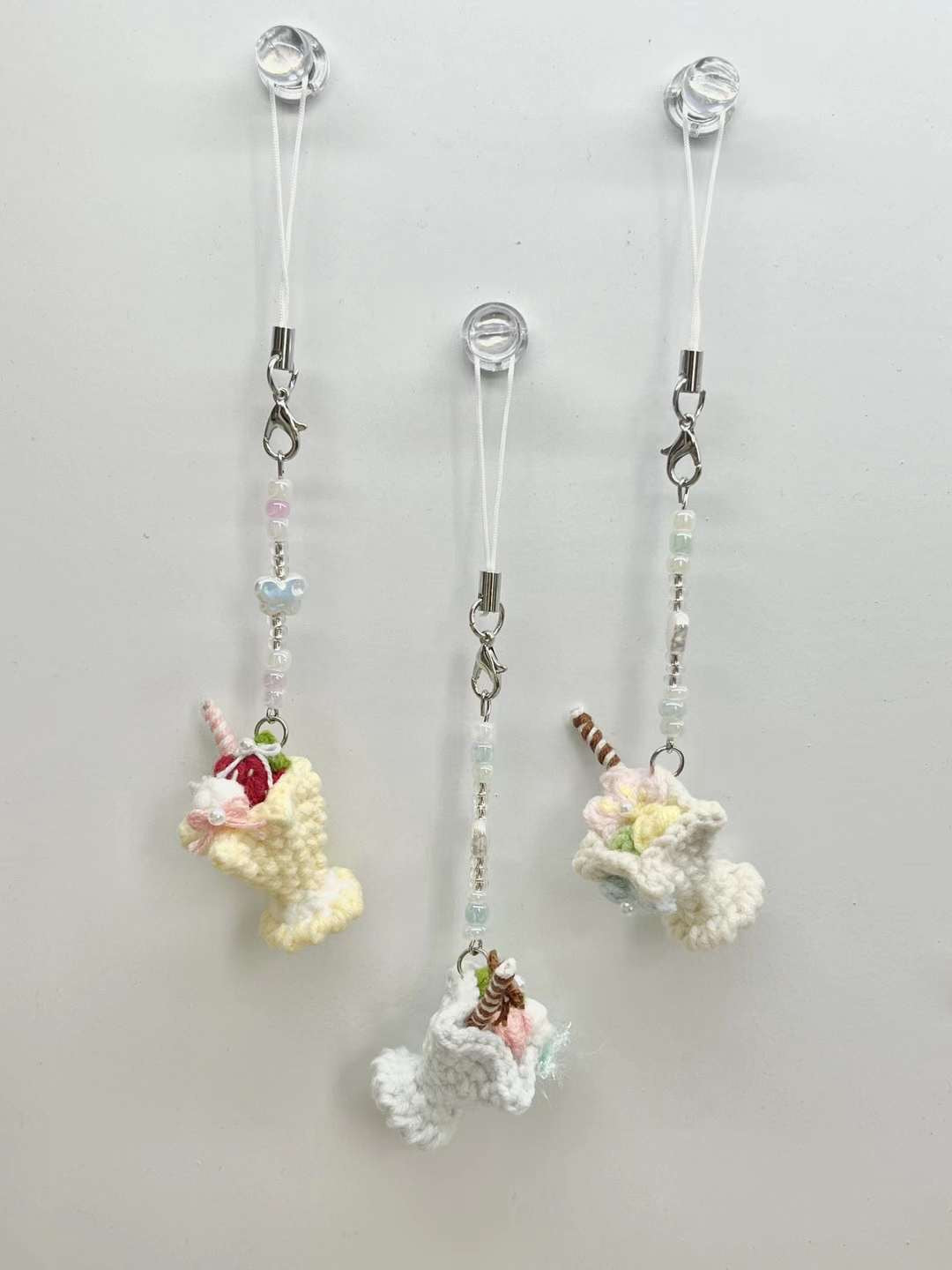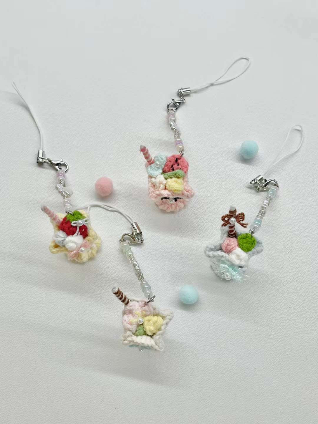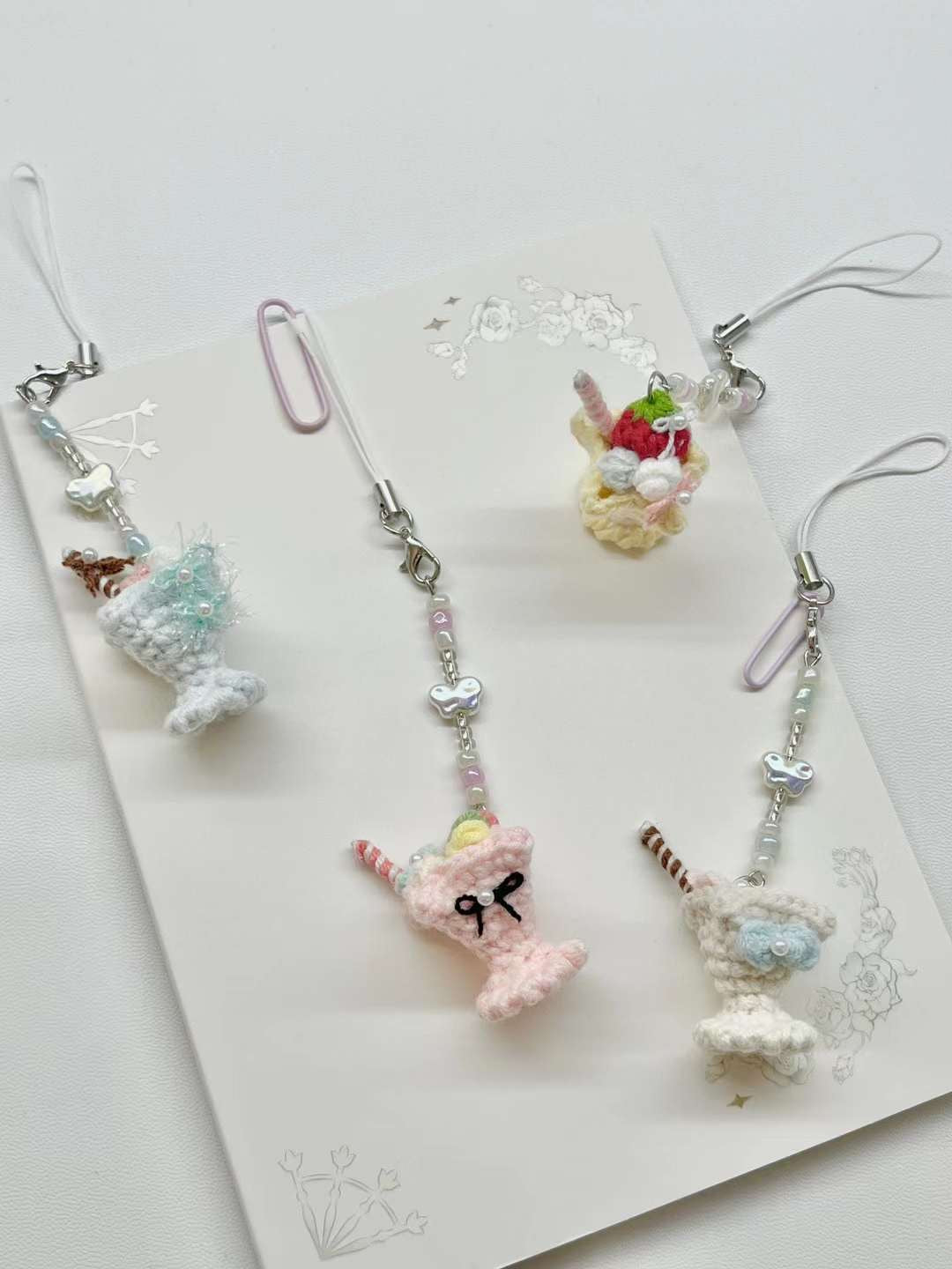 [手編み] シュガーフロストカップのスマホ・バッグチャーム