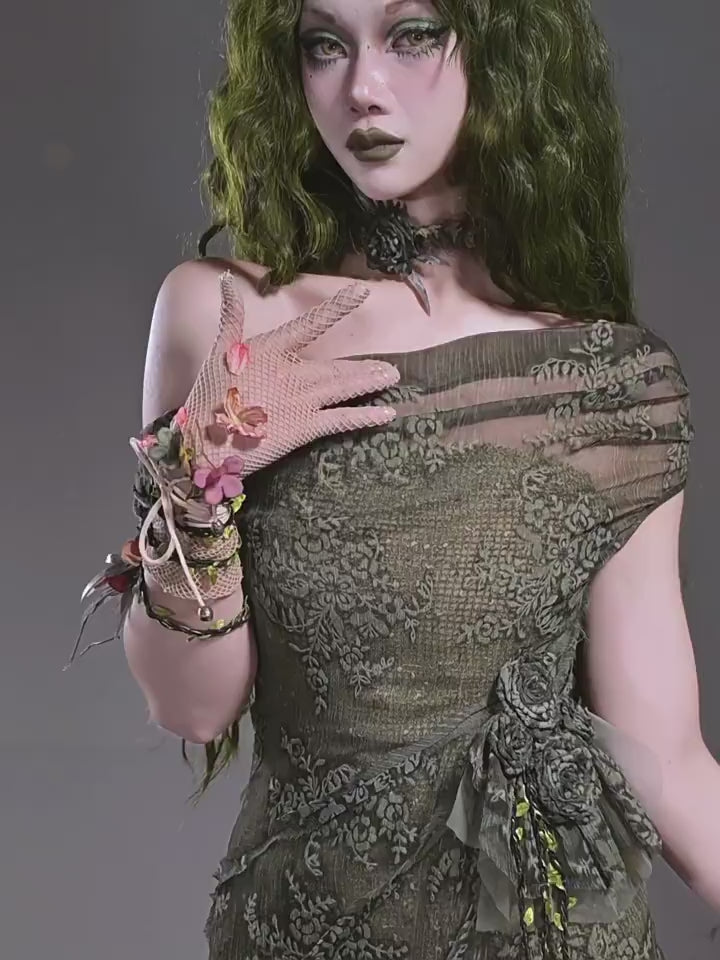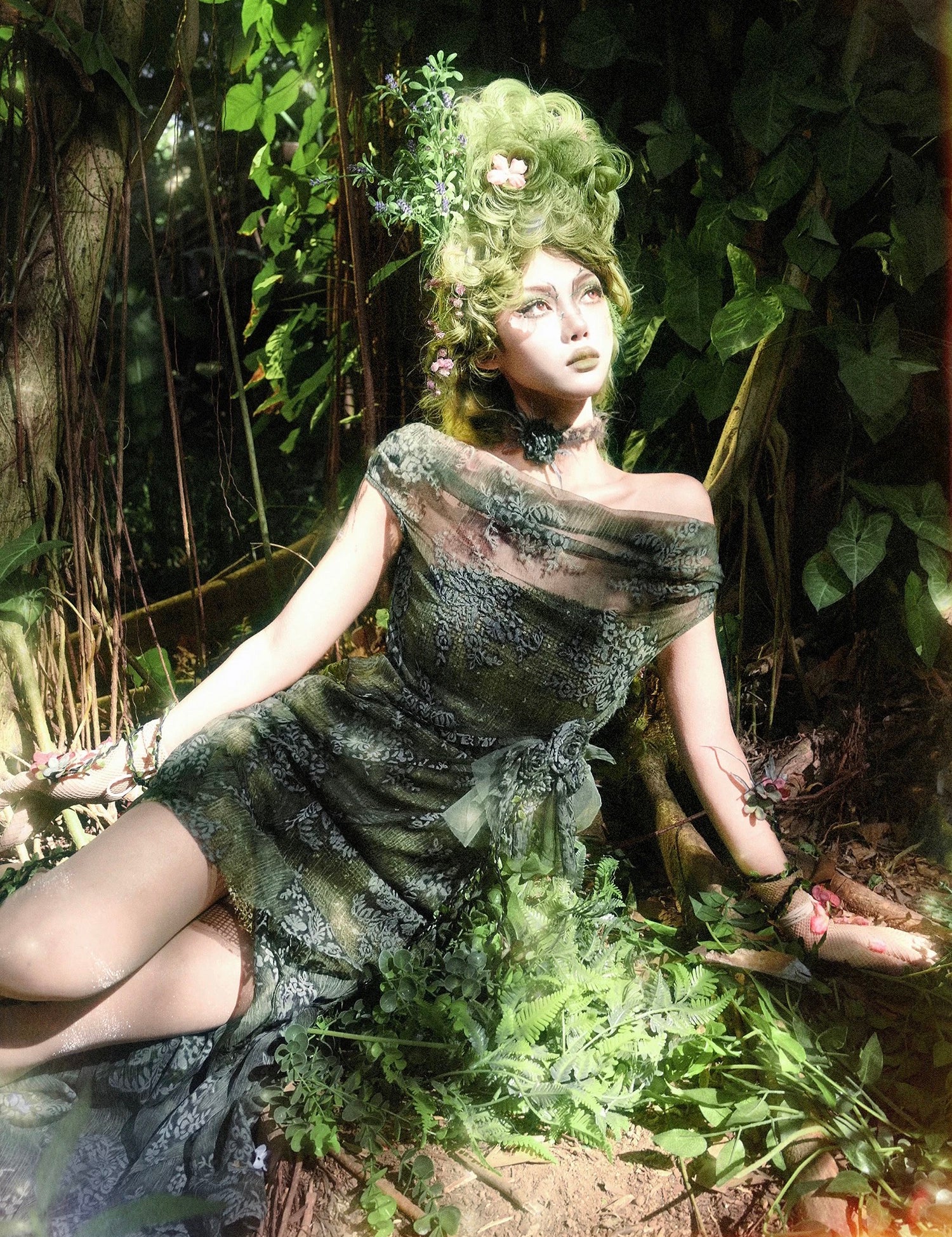 [血液供給] 森の精霊・木のエルフのオフショルダードレス
