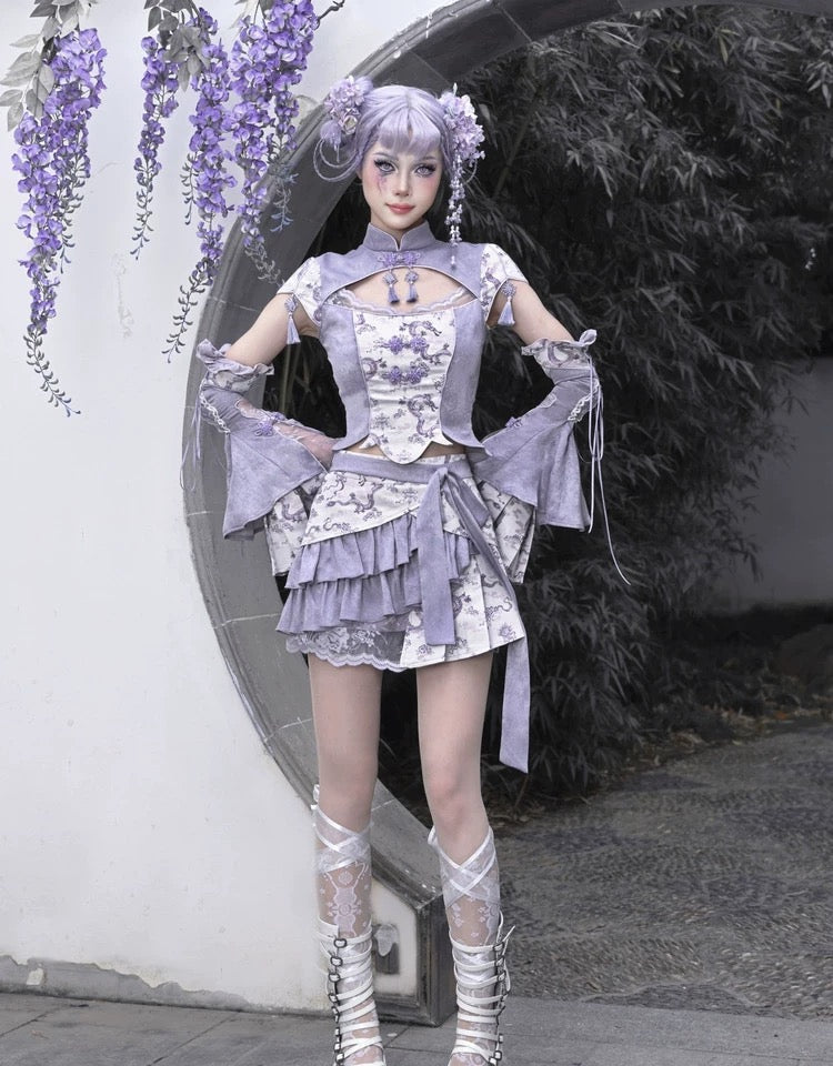 Get trendy with [Blood Supply] Dragon In Wisteria Japanese Princess Sleeves - Crop Top available at Peiliee Shop. Grab yours for $36 today!