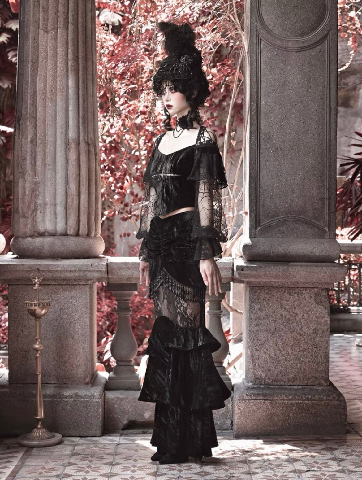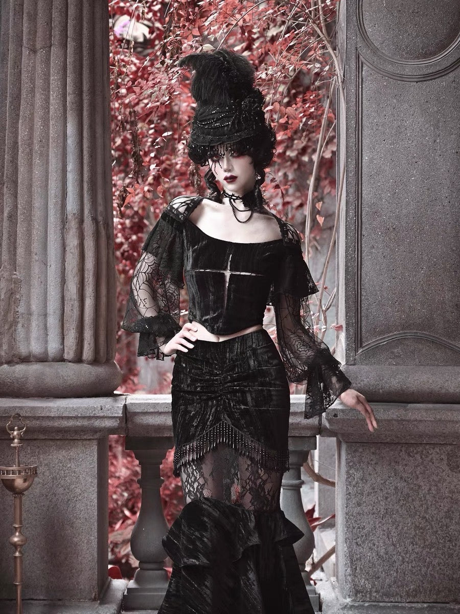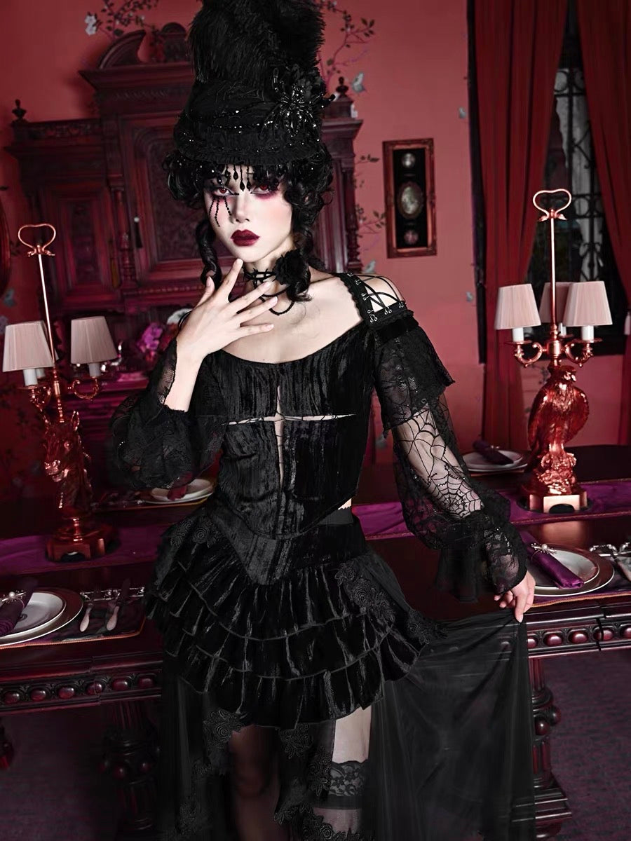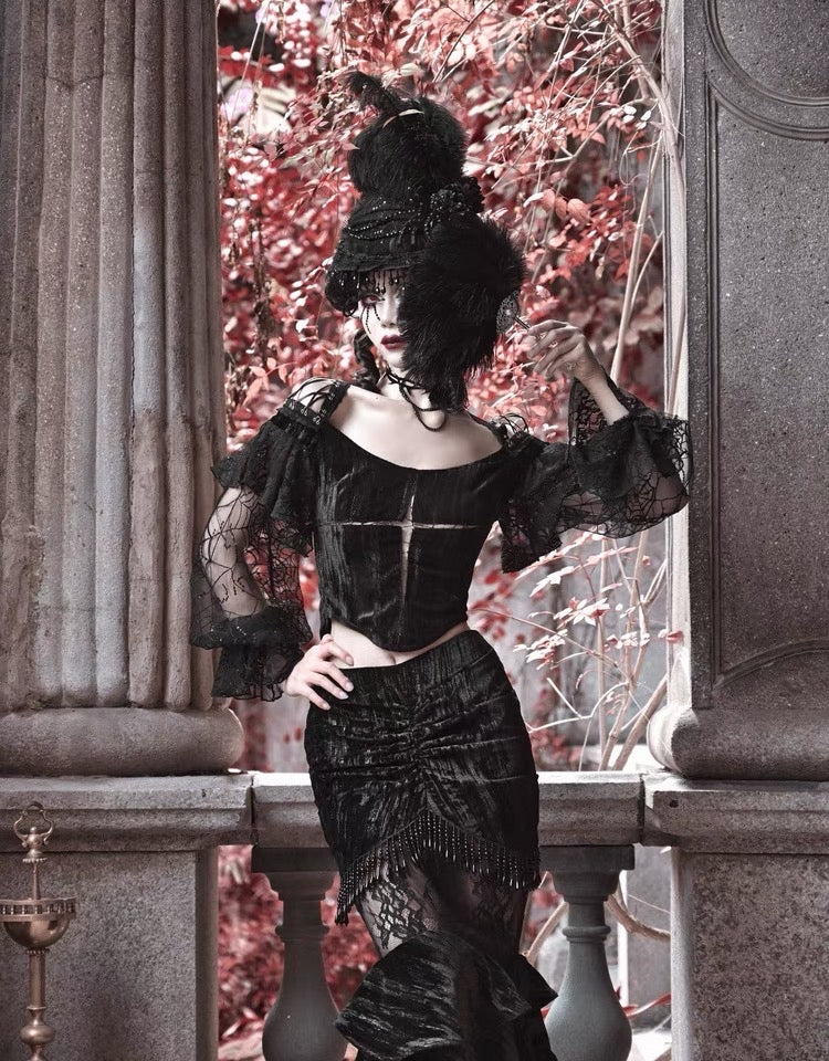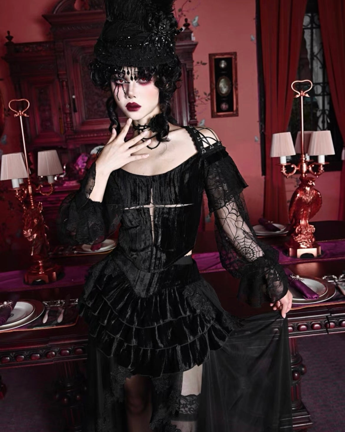 吸血鬼の貴族たちは、ドラキュラの巨大な城の「女主人」として描かれています。不滅の存在となった彼女たちは、獲物を求めて田舎をさまよいます。このデザイナージャケットは、ビクトリア朝ゴシック様式の継承です。ボディ全体はアイロン接着ベルベットで作られており、表面の美しさだけでなく、心地よく肌触りの良い着心地も魅力です。着心地も抜群です。スリムでショート丈、そして絶妙なシルエットがウエストラインを美しく引き立てます。