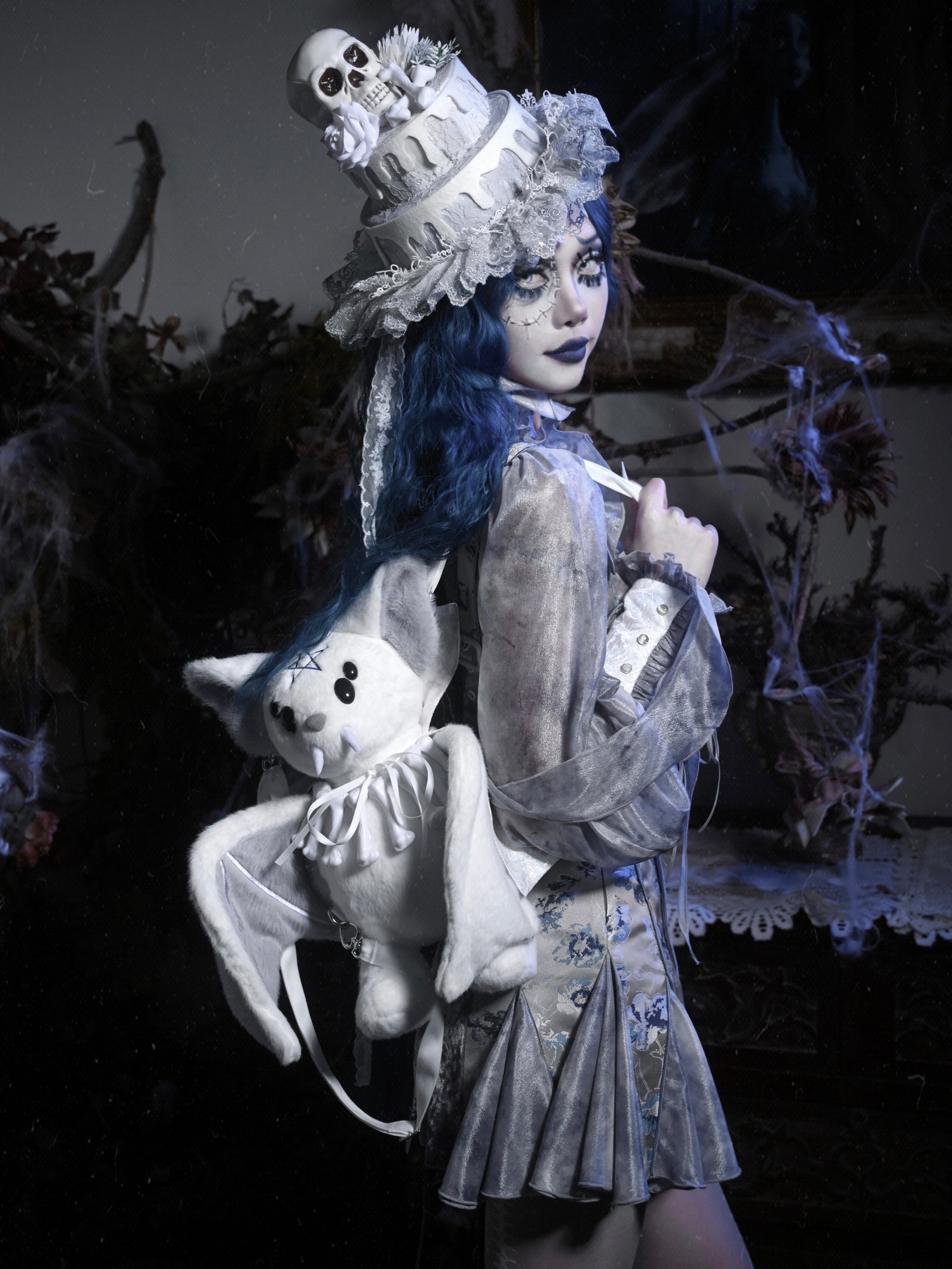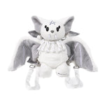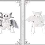 愛らしい白とグレーのぬいぐるみコウモリのリュックをご紹介します。毛抜けを最小限に抑えた短繊維の柔らかいフェイクミンクファーを使用しています。丸い頭とふっくらとしたデザインが、愛らしく遊び心のある印象を与えます。コウモリのフェルト製の鼻と小さな牙が、可愛らしい見た目にちょっとしたいたずらっぽさを添えています。