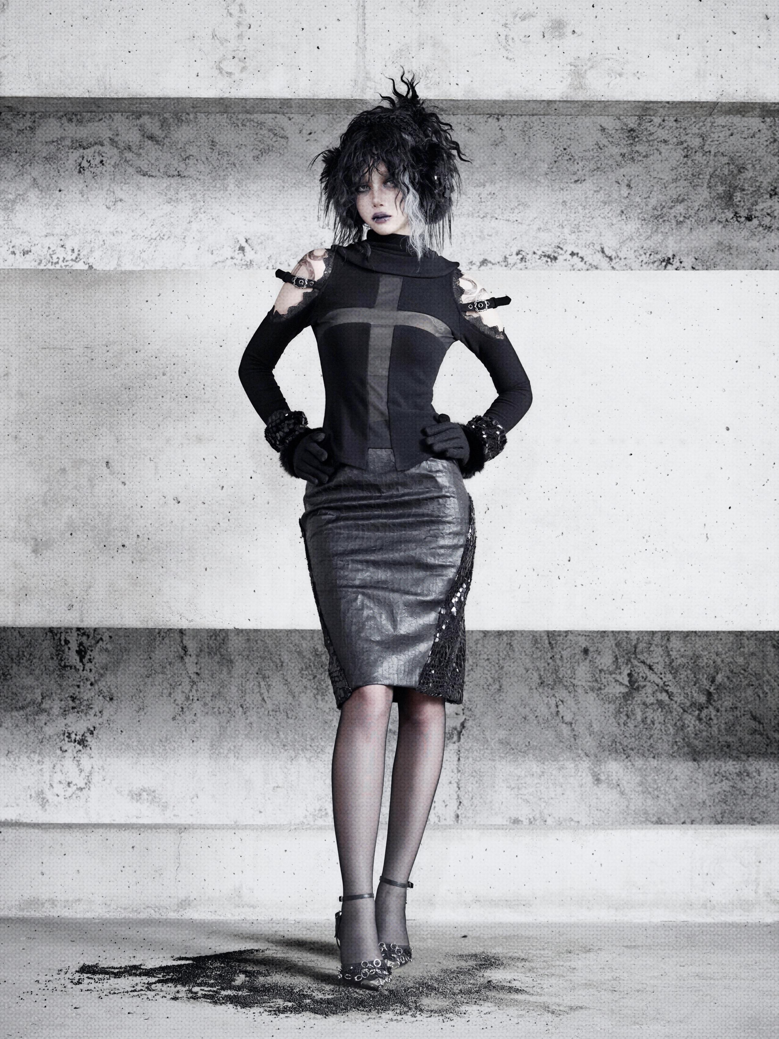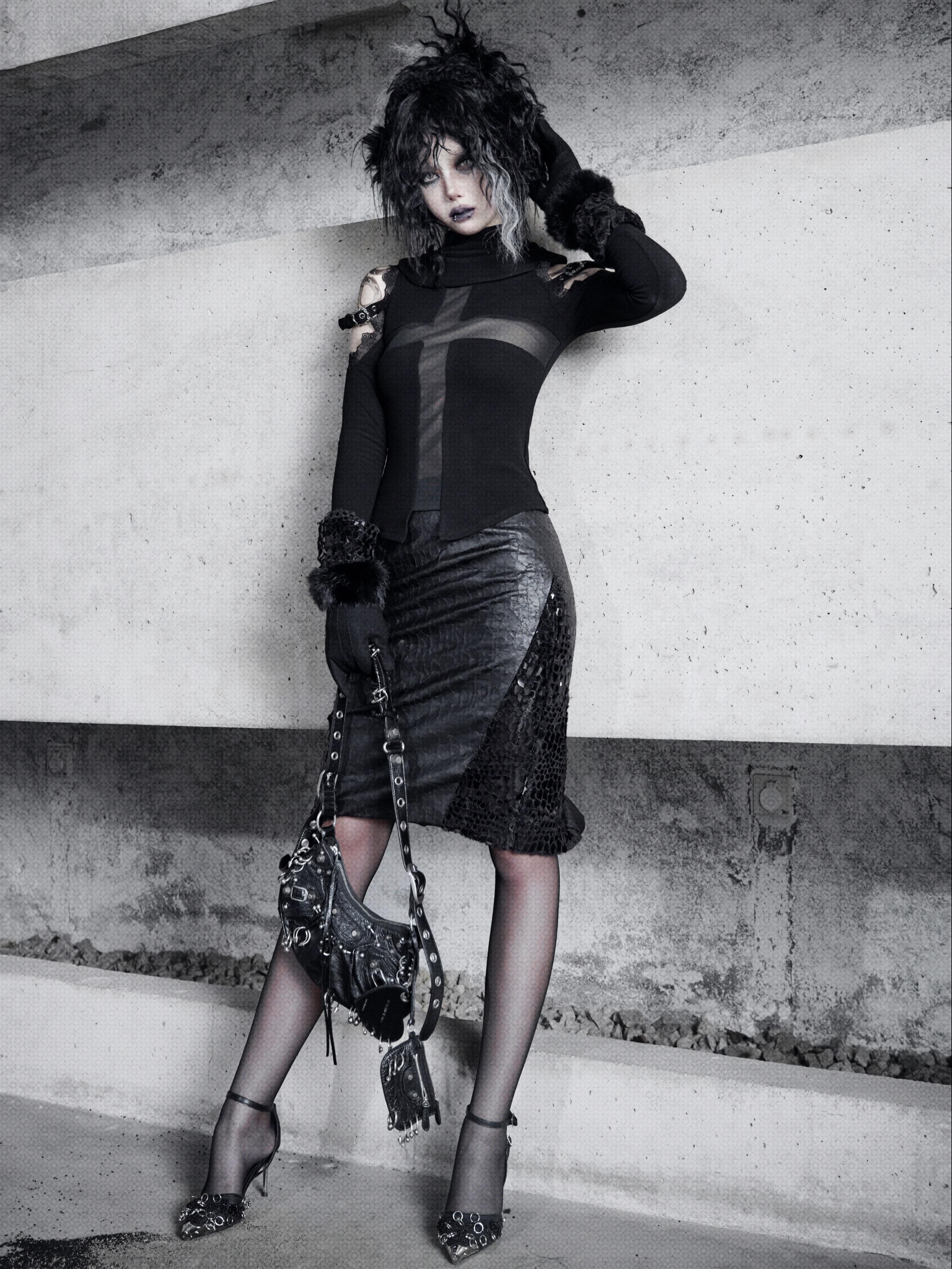 [ブラッドサプライ] シャドウストーカー ゴシック PUレザー Aラインスカート