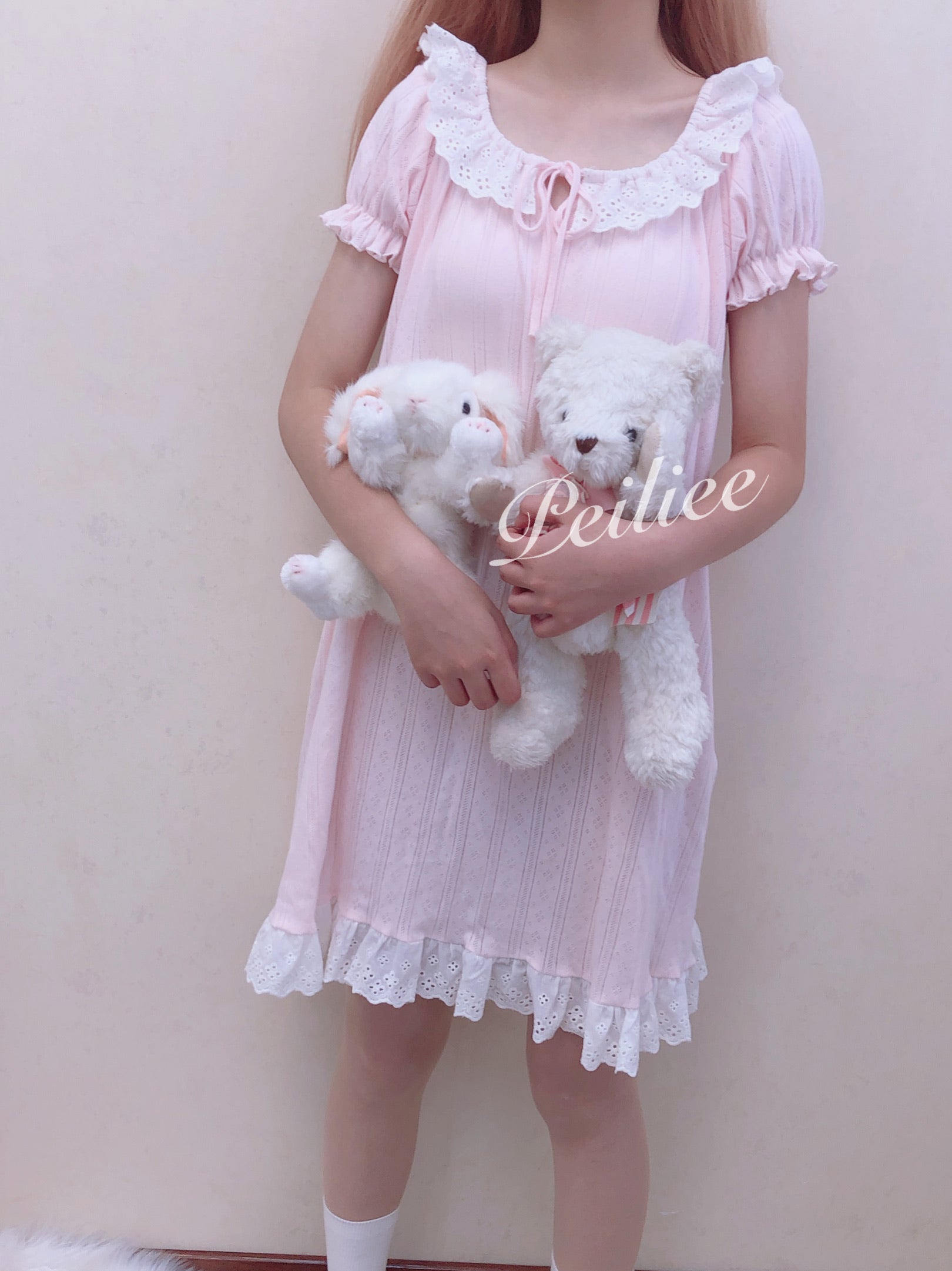 [Peiliee製] 愛は2つの心を1つにしたコットンパジャマラウンジウェアドレス