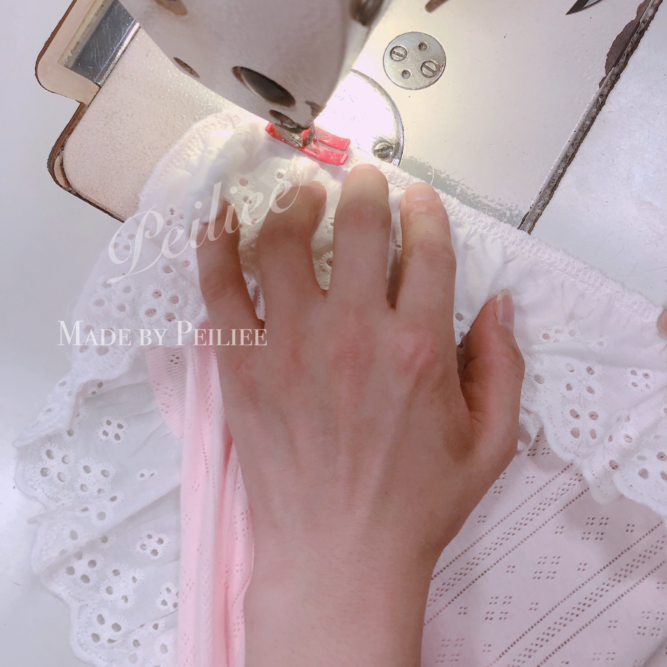 このラウンジウェアのお気に入りの色や柄をInstagramで何度か募集しました。その結果、ブルーとピンクのハート柄コットン生地を制作することにしました。