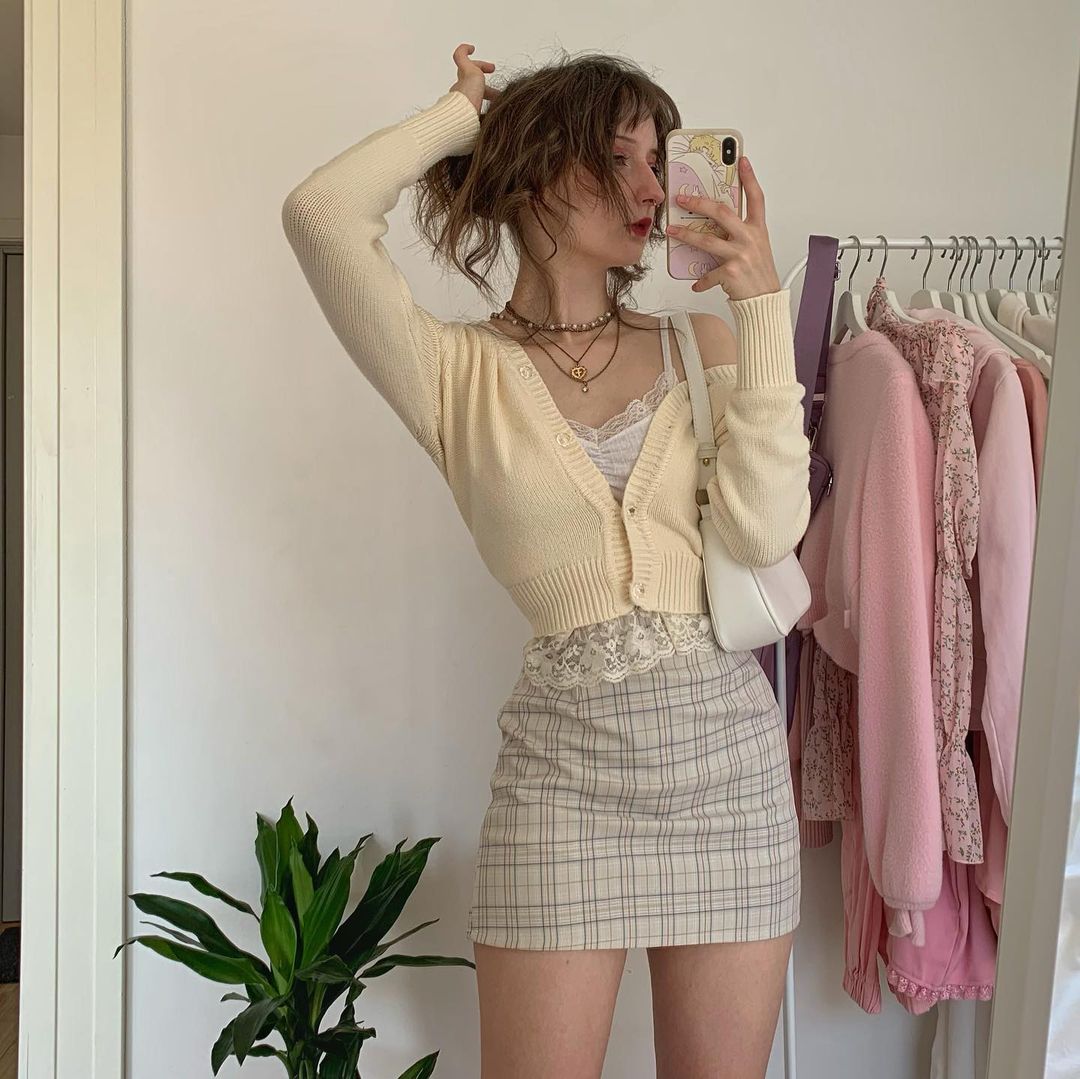 パステルカラーのトップスやドレスと合わせてとてもエレガントに見えます
