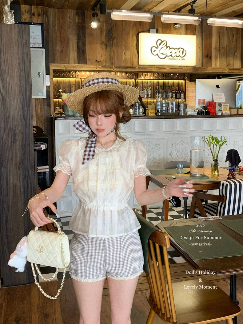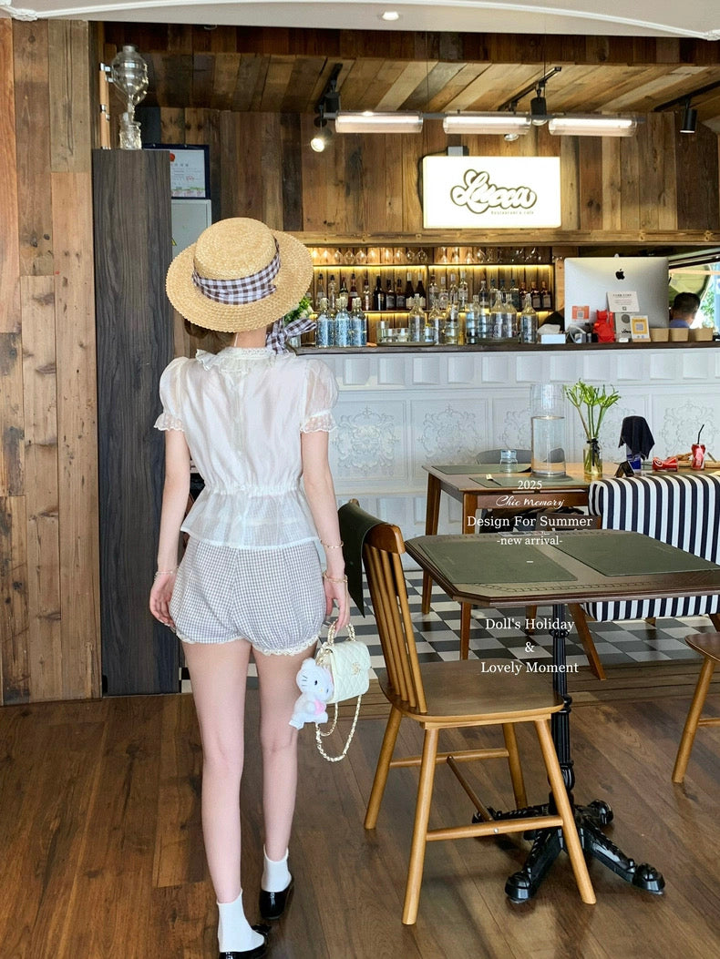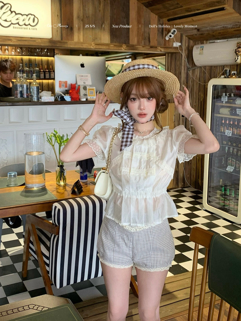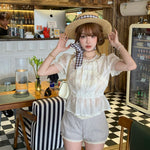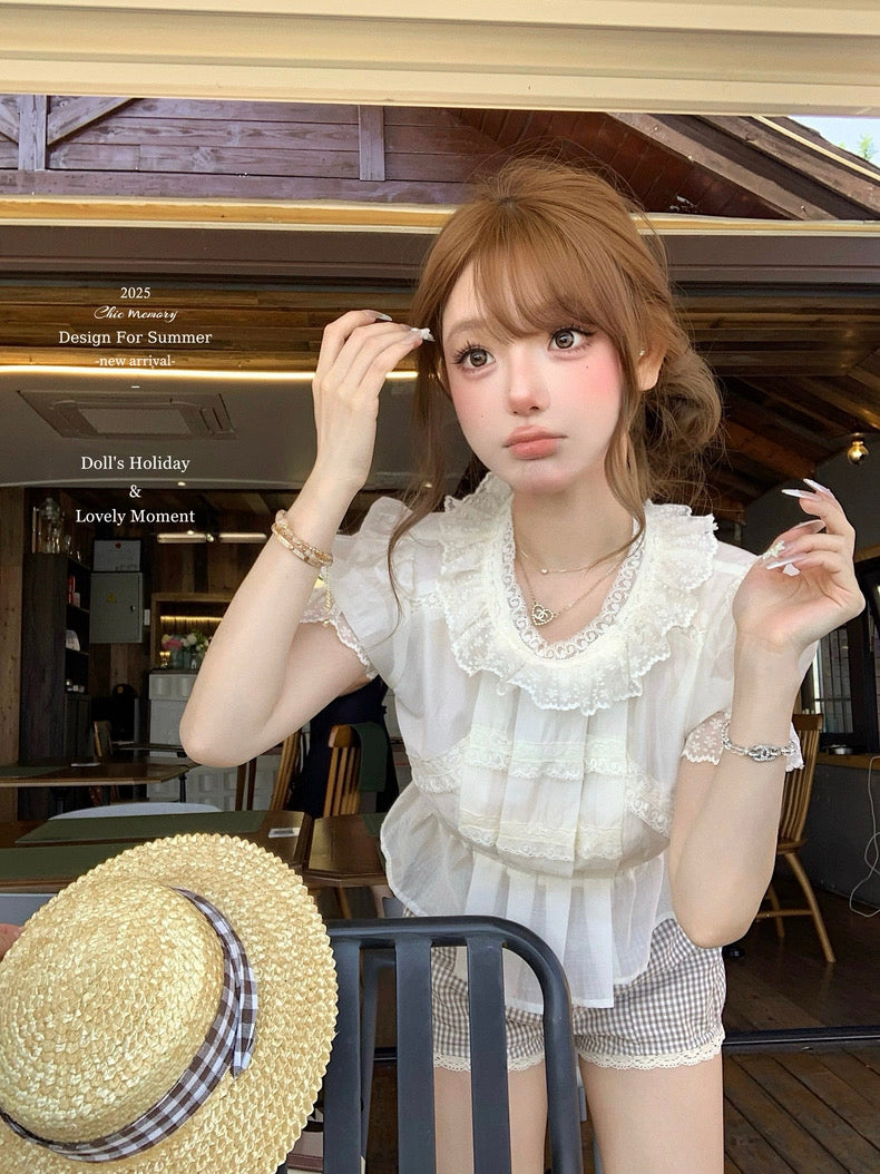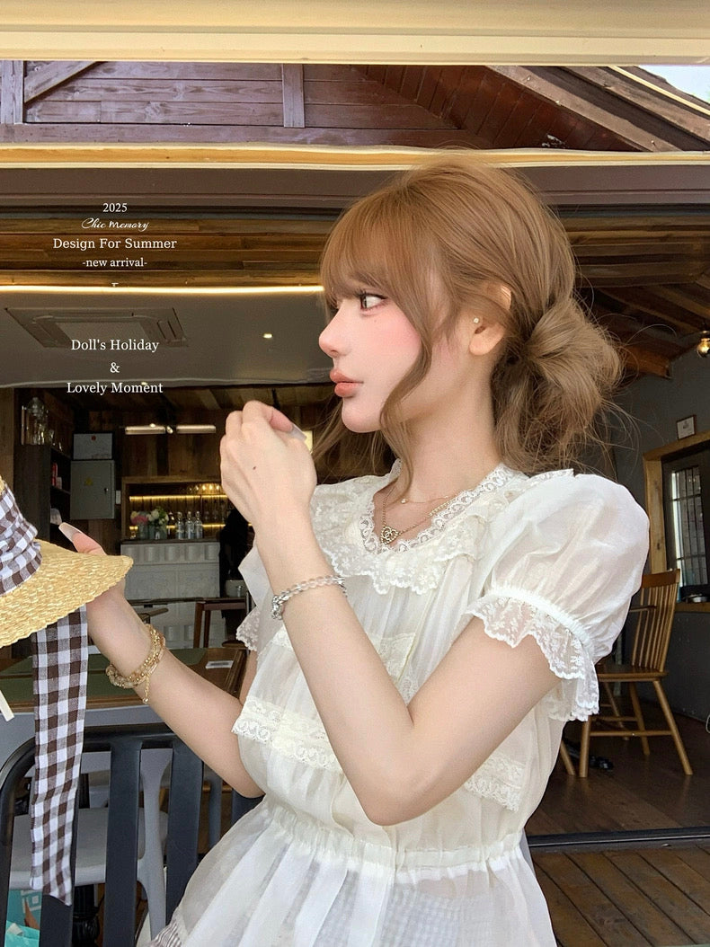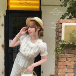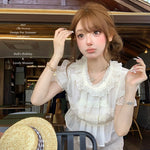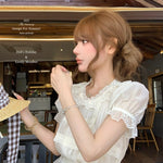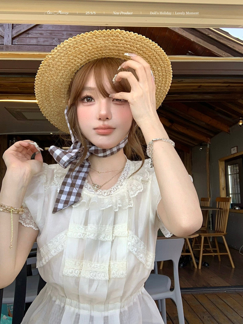 Soft and graceful like a scoop of snowy milk, Lait de Neige is a beautifully detailed vintage-style blouse made from silky, semi-sheer fabric. The creamy tone and delicate lacework bring a vintage elegance perfect for coquette and doll core styling.