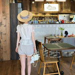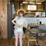 A timeless piece that pairs beautifully with skirts, bloomers, or tailored shorts for a sweet vintage look.
