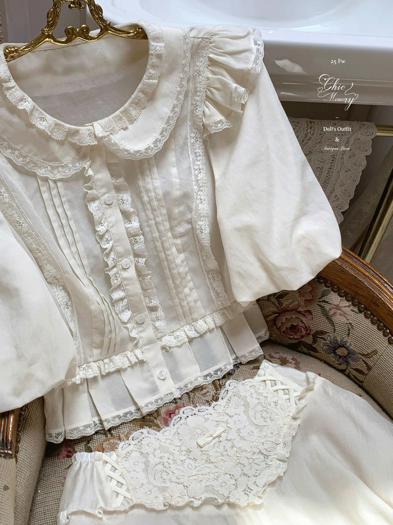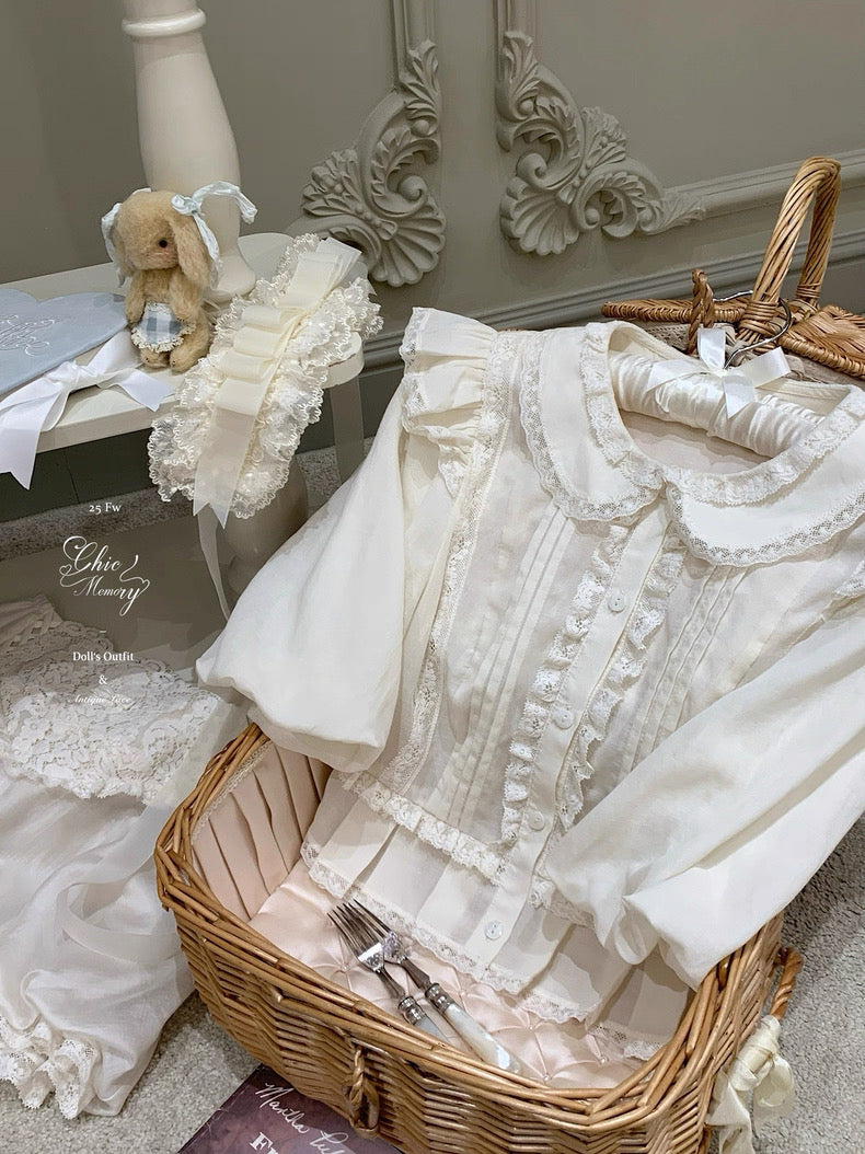 This blouse embodies the spirit of doll outfits — romantic, innocent, and versatile. Whether worn with the Pearl Doll Bloomers for a complete set, or styled casually with denim for a modern twist, it’s a piece that captures both vintage charm and everyday practicality.