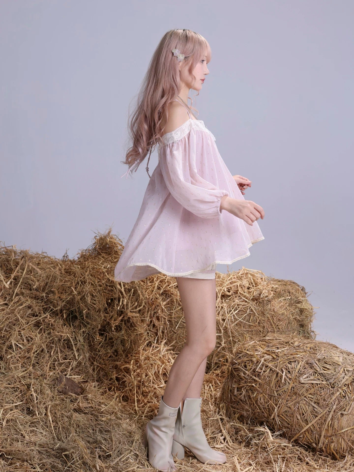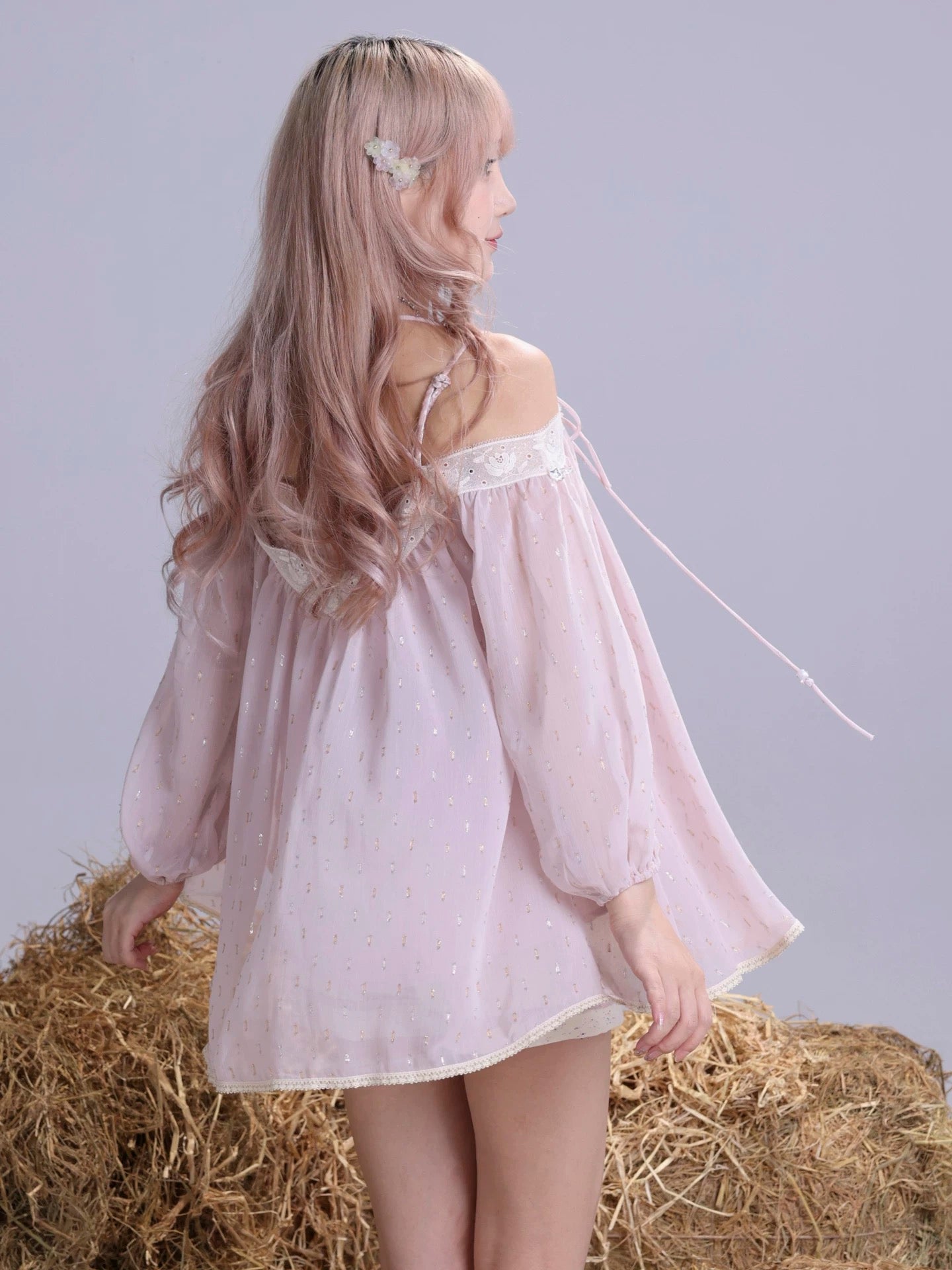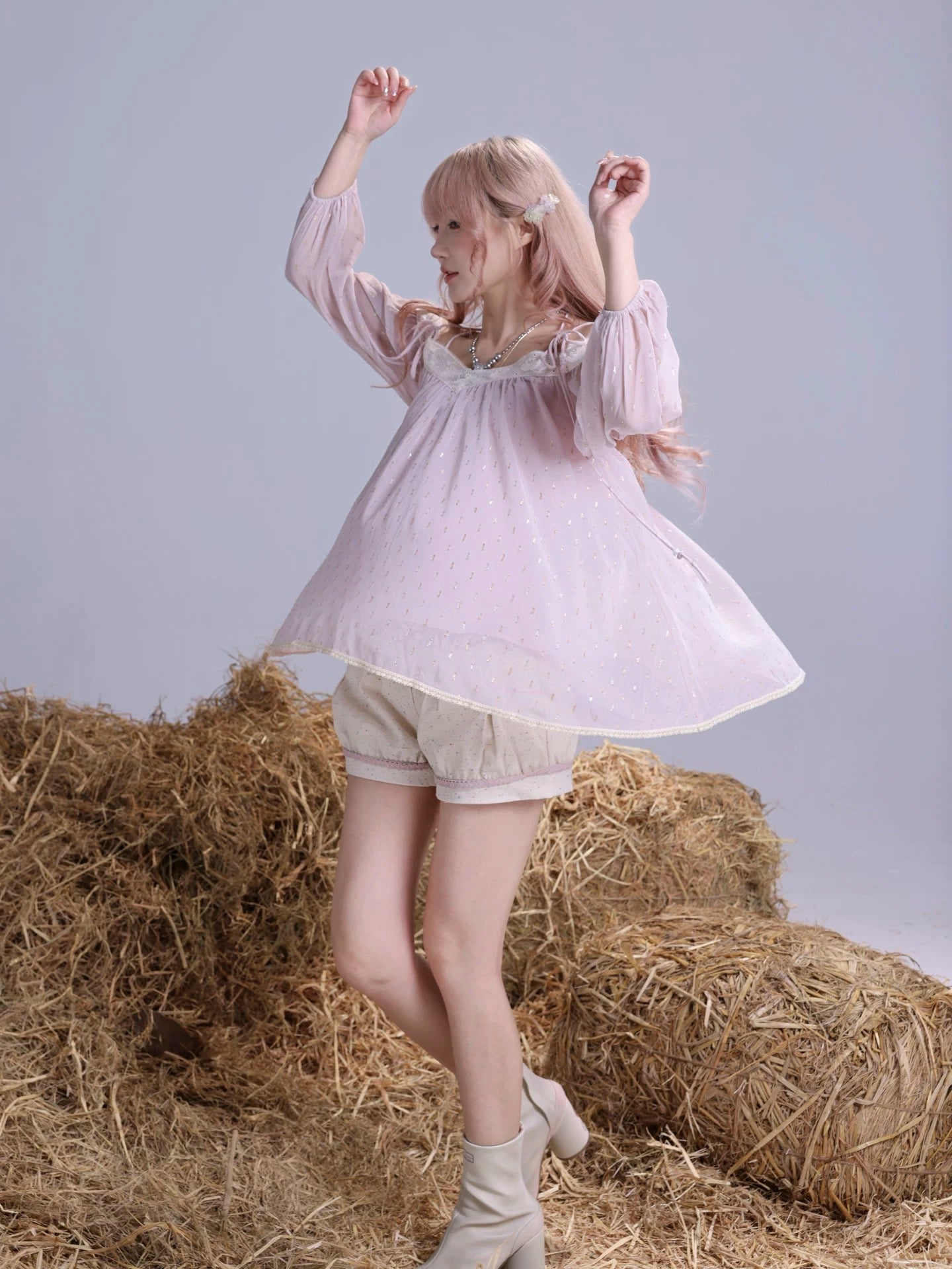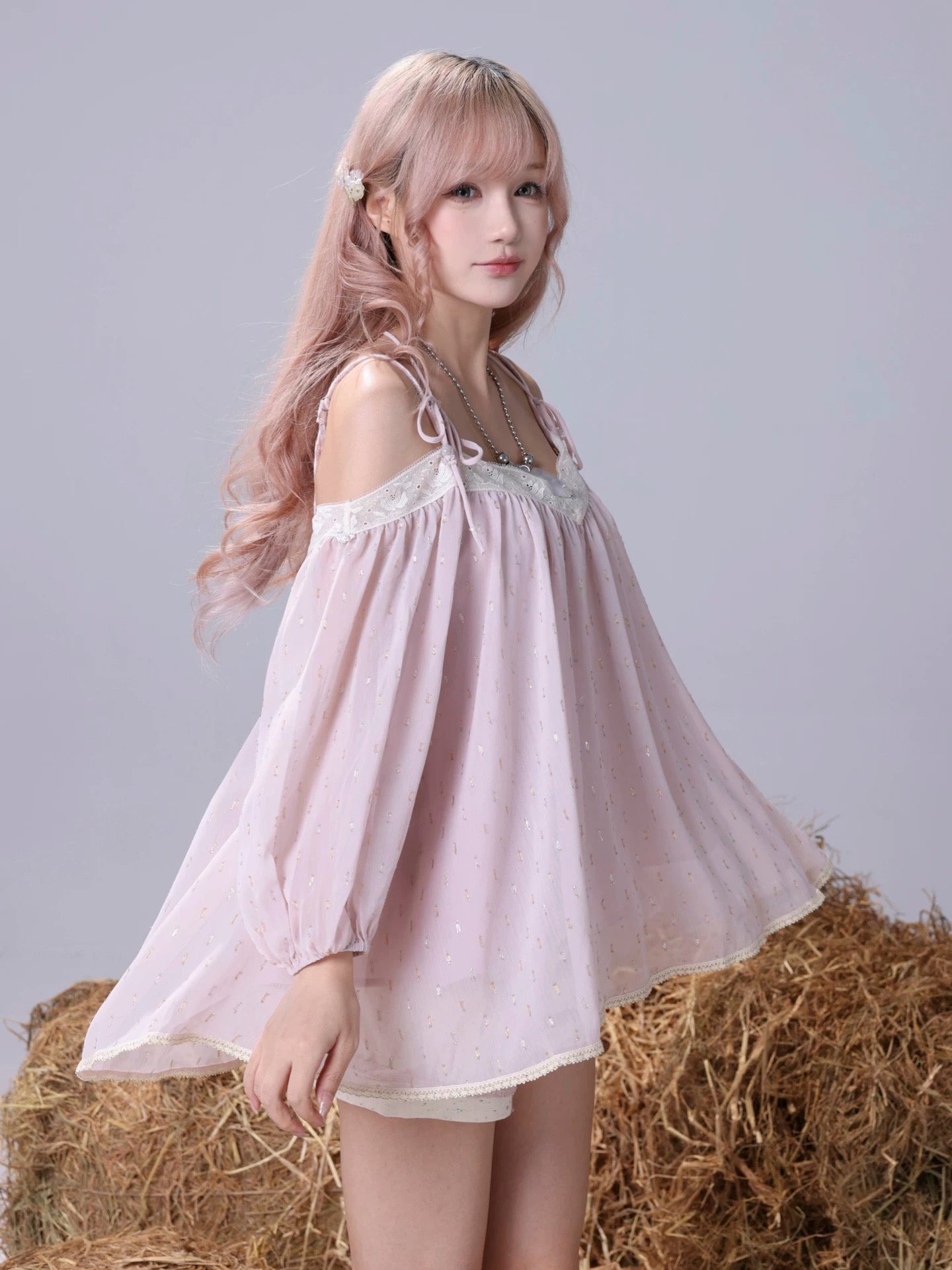 Rose Island For Cassie Glitter Chiffon Babydoll Top