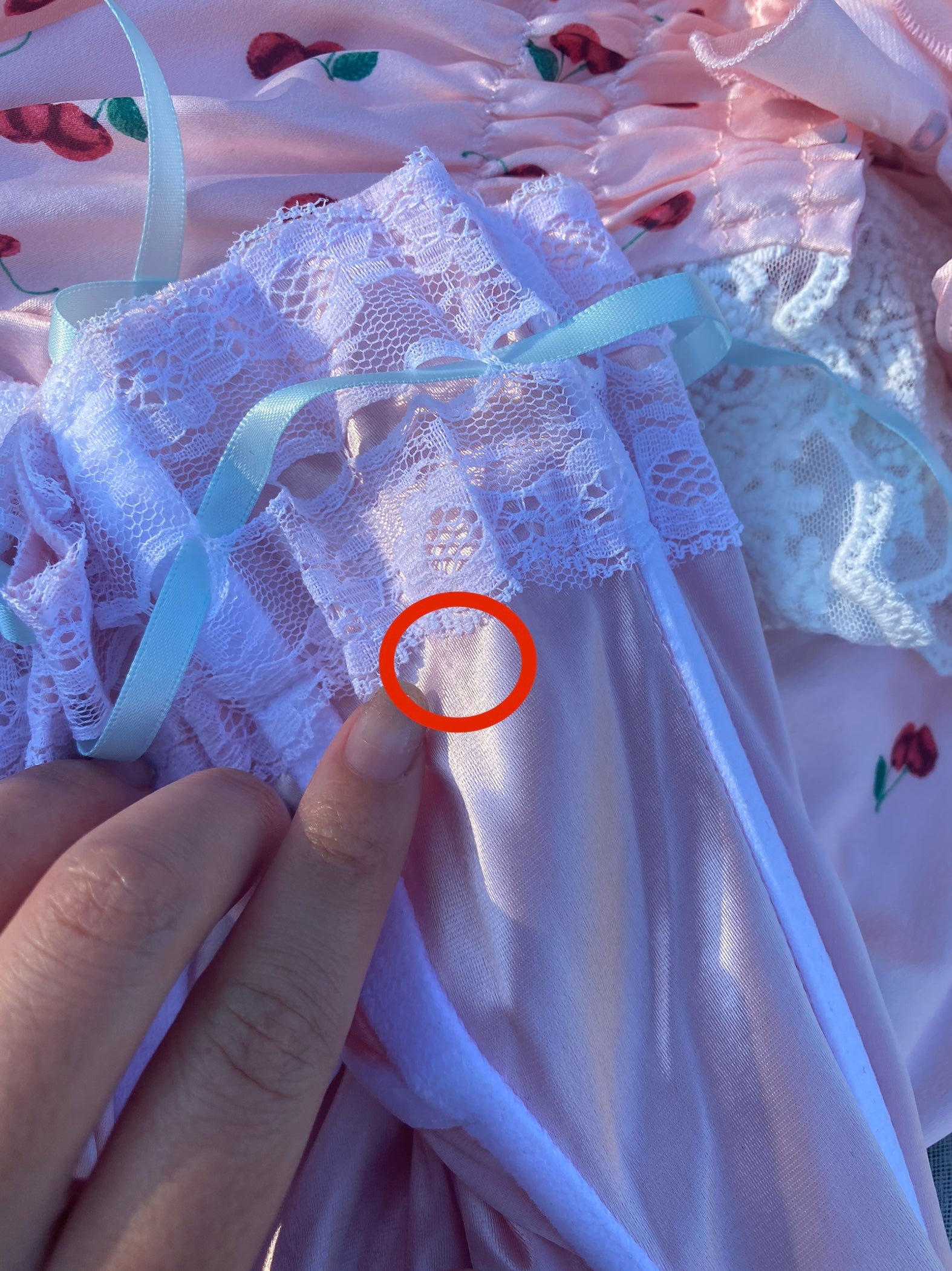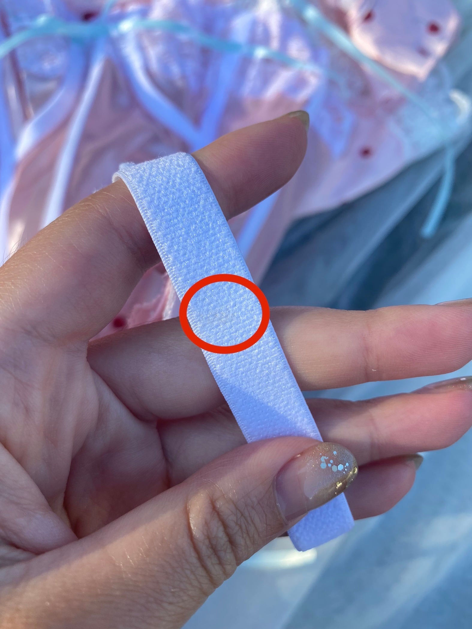 写真には製造工程で生じた小さな欠陥が見られますが、外観や着用には影響ありません。