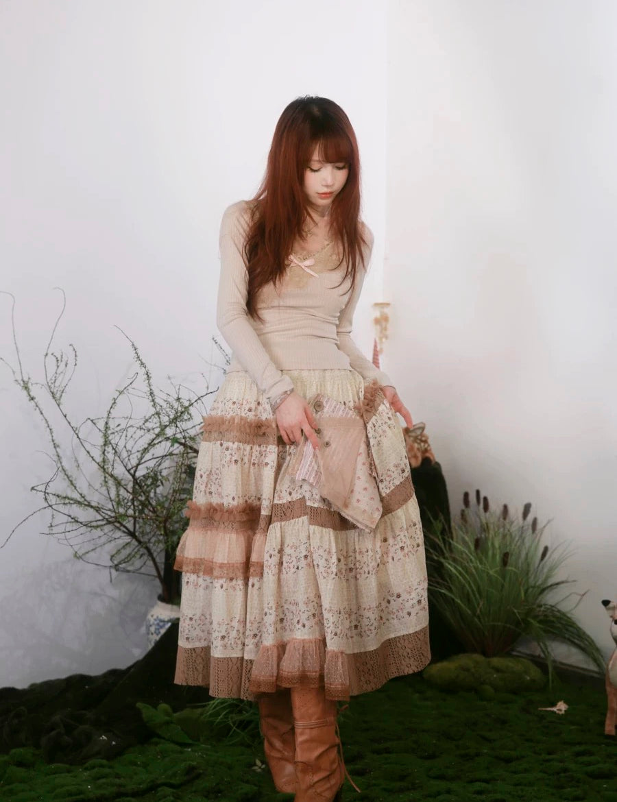 ローズアイランド 25SS ブラウン ミストアイランド ルリコア ミディスカート