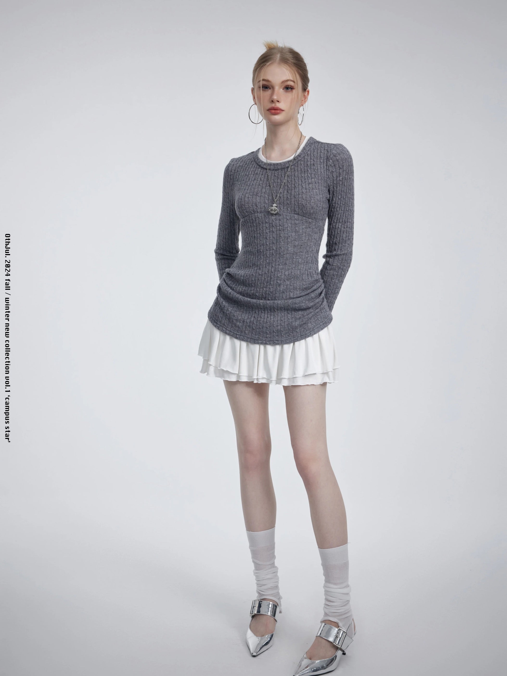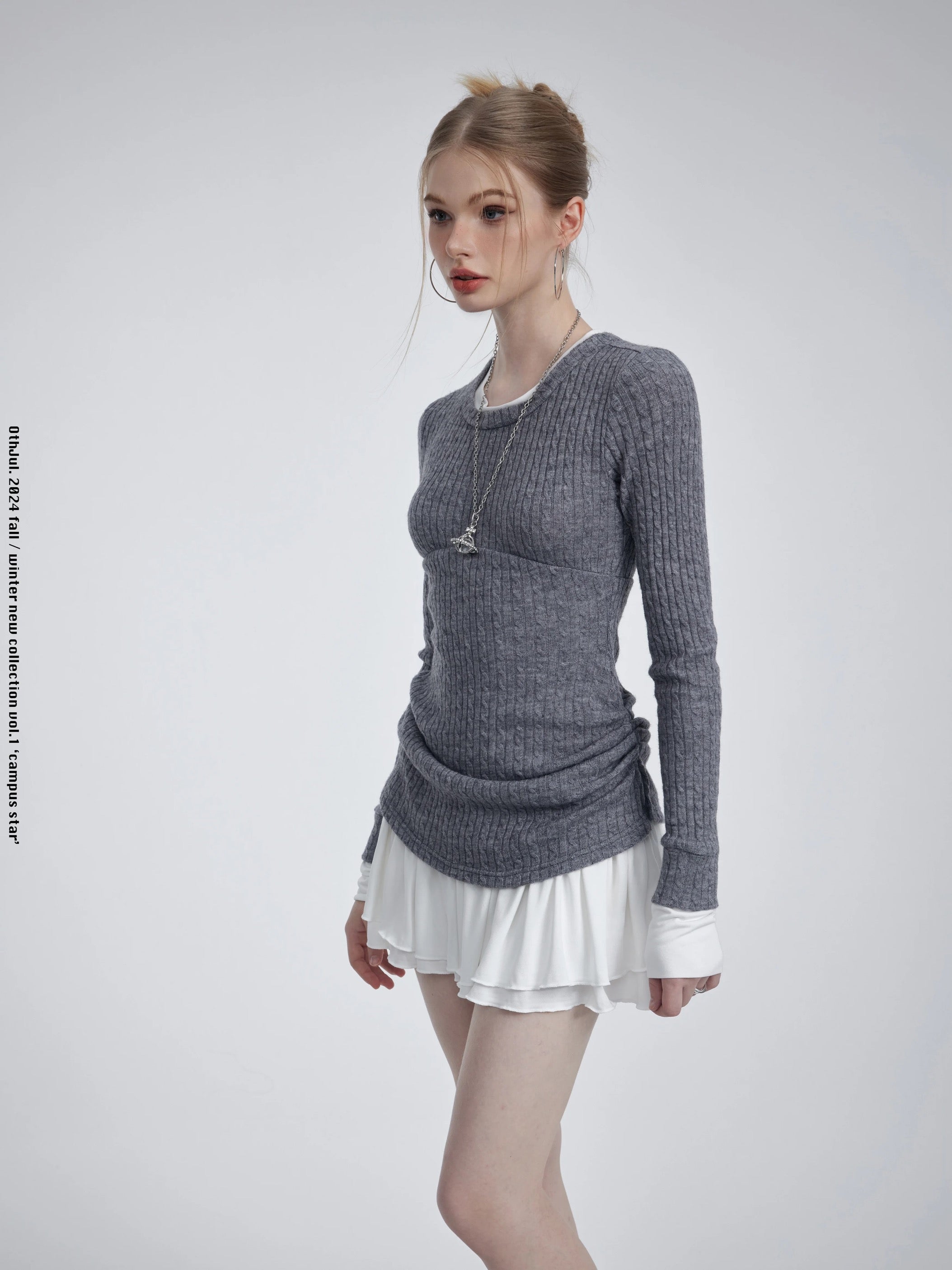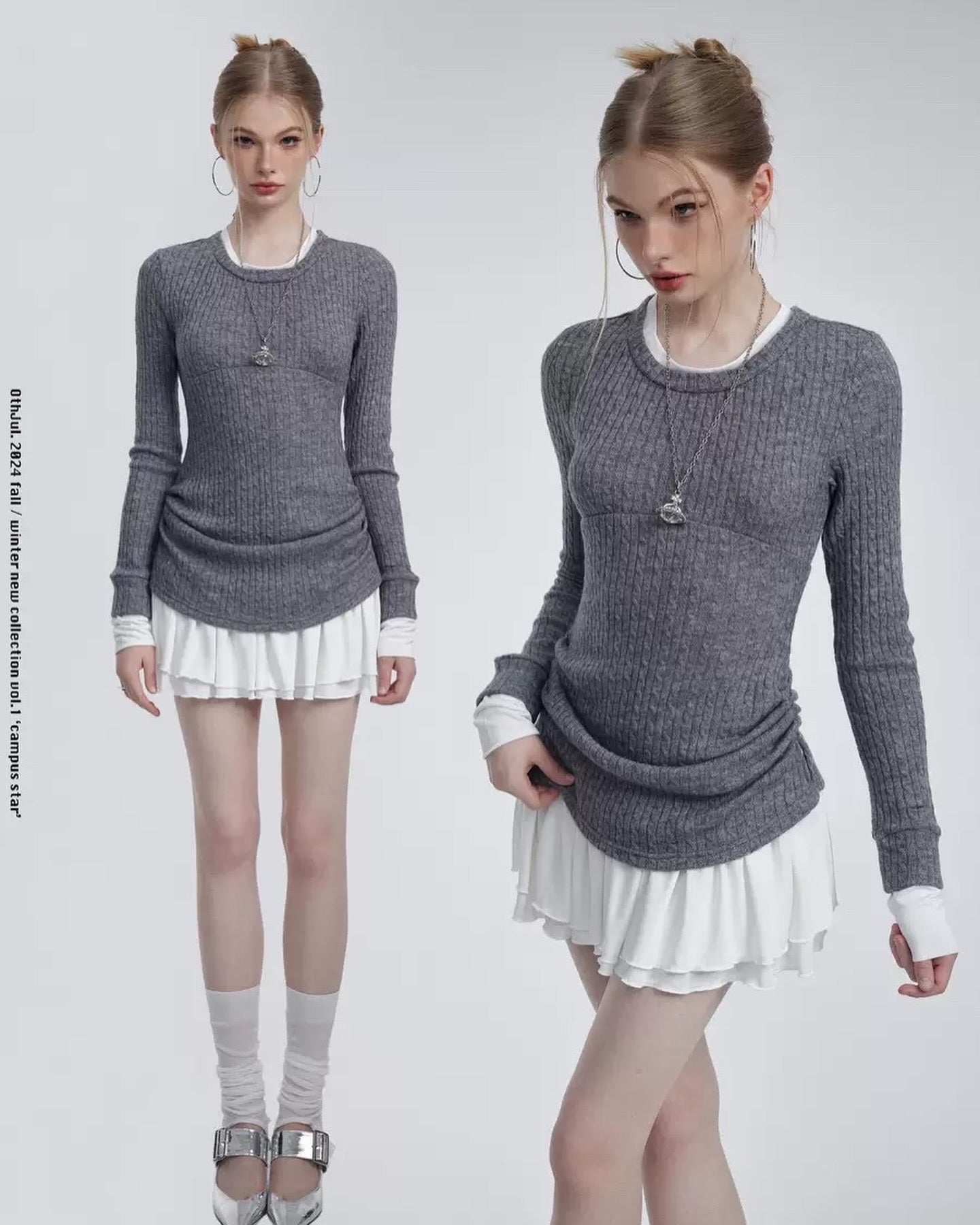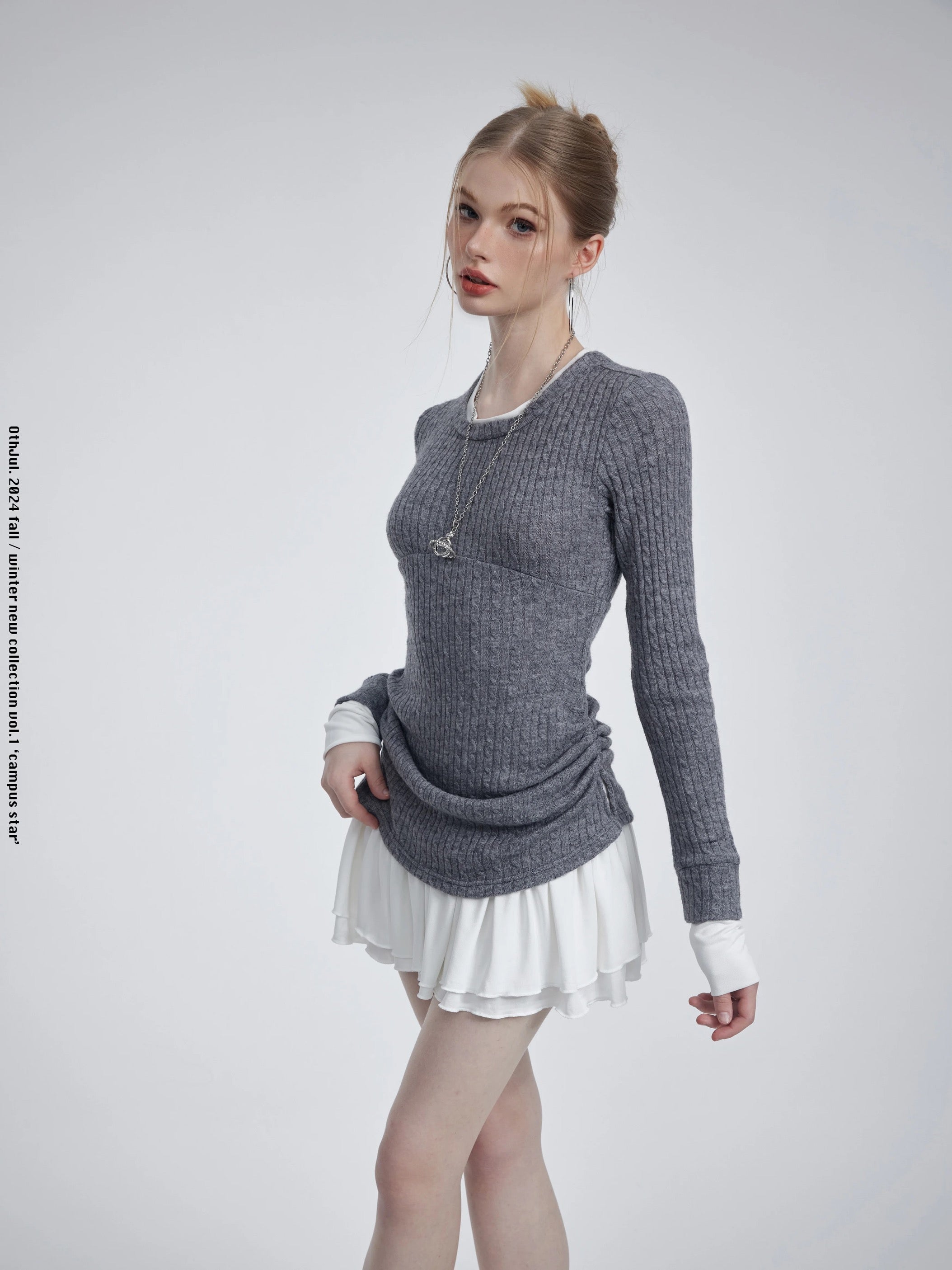 コットンセーターのトップスにミニスカートを合わせたデザインは、快適さとスタイリッシュさを兼ね備えています。どんなシーンにもぴったりのこのドレスは、学校でも普段着でも、さりげなくシックでスイートな印象を演出します。万能なデザインで、両方の魅力を存分にお楽しみください。