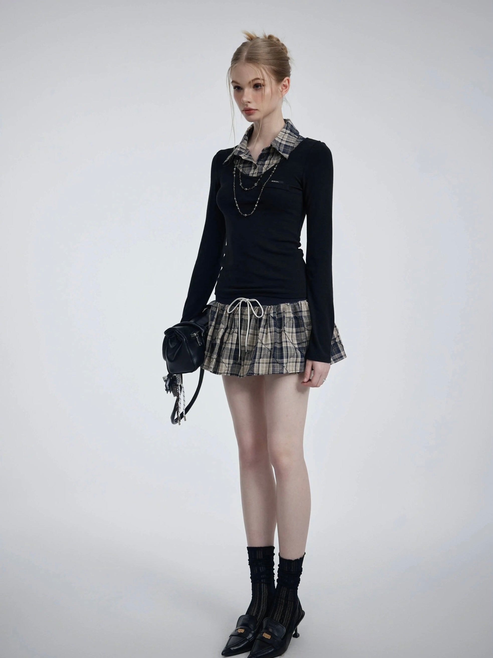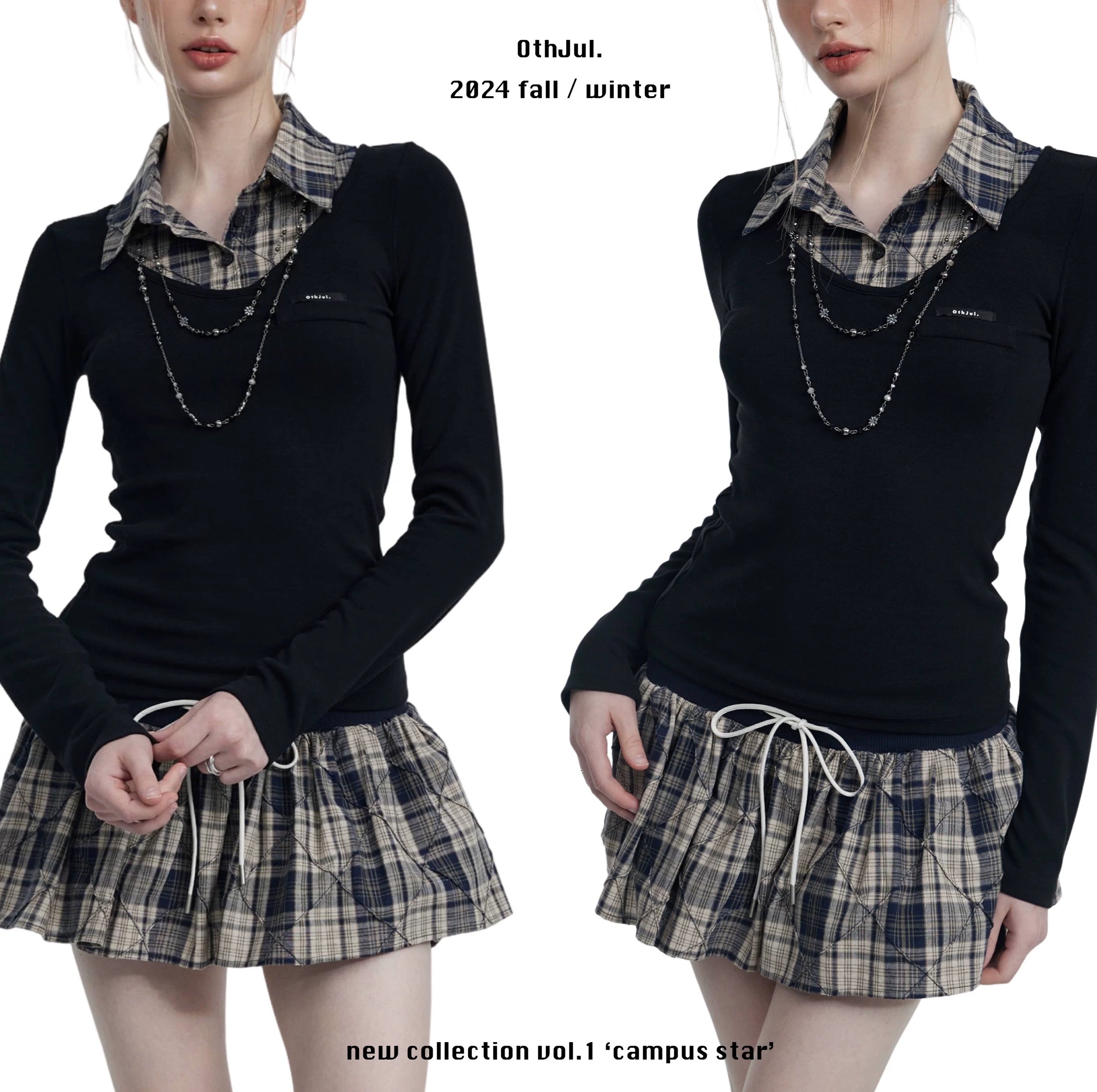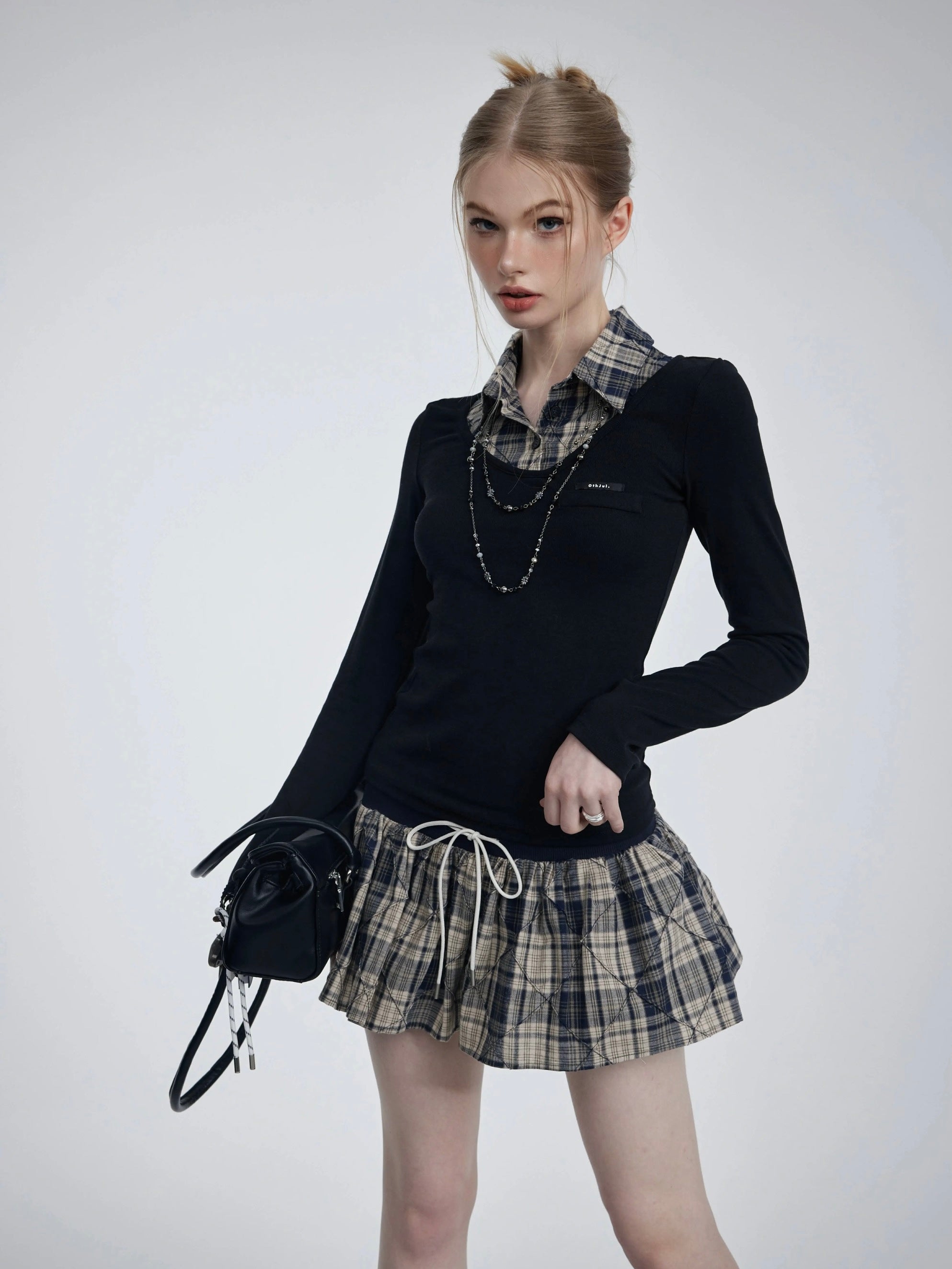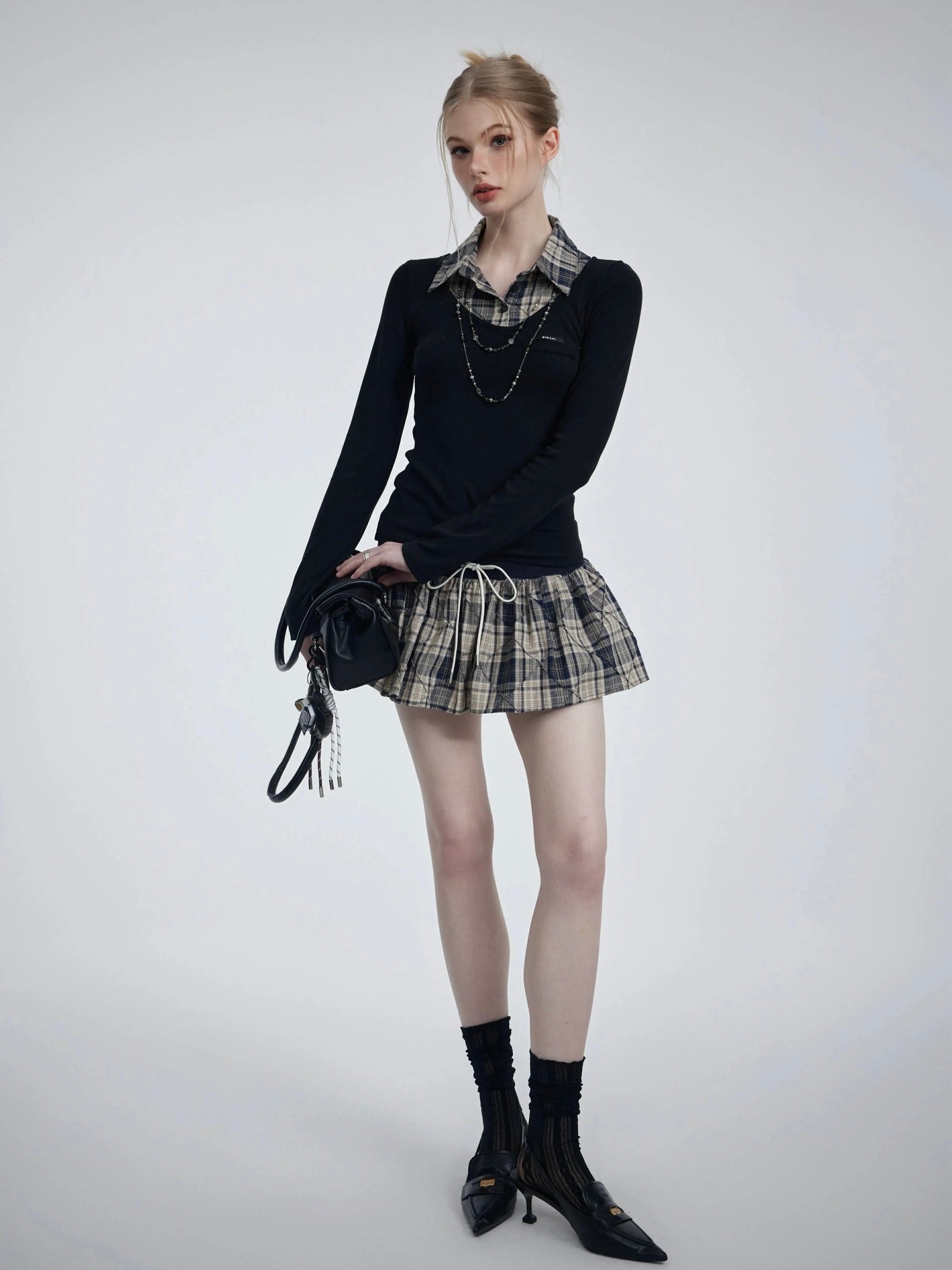 [カスタマイズ可能] キャンパスシックなスクールガールミニドレスセーターセット