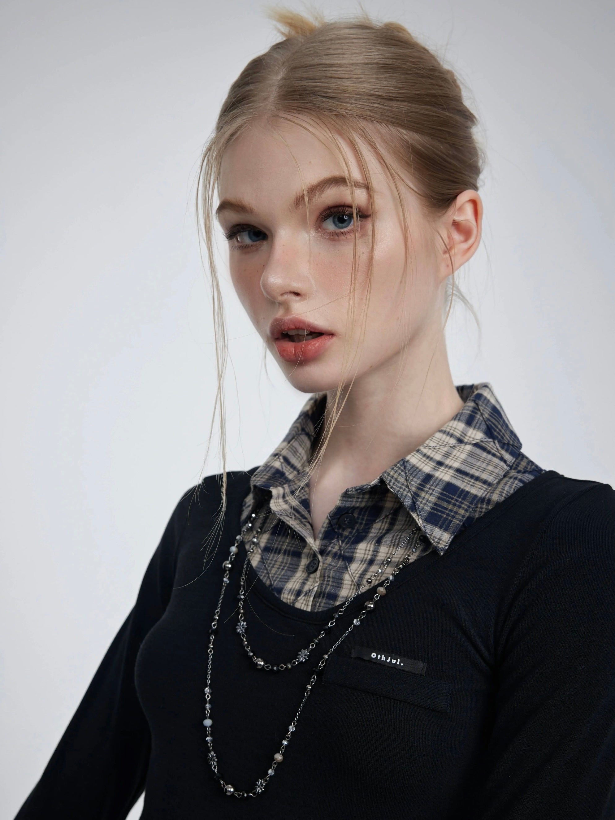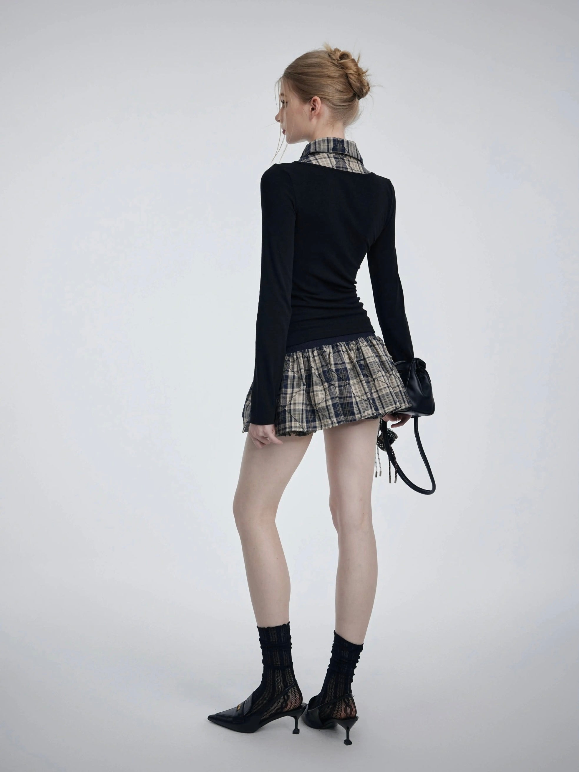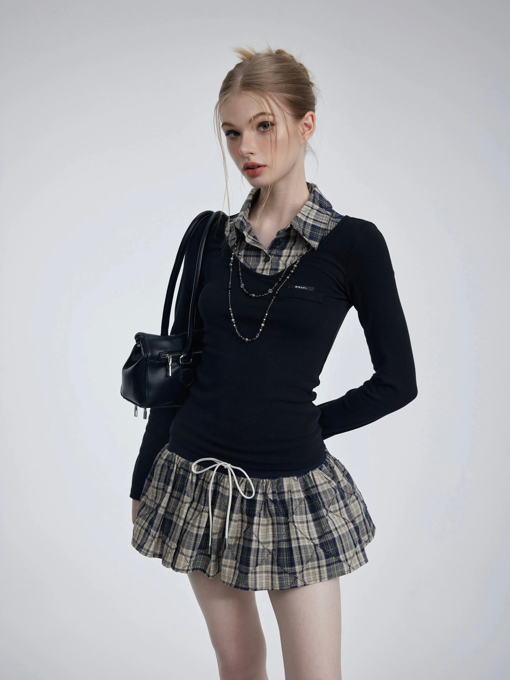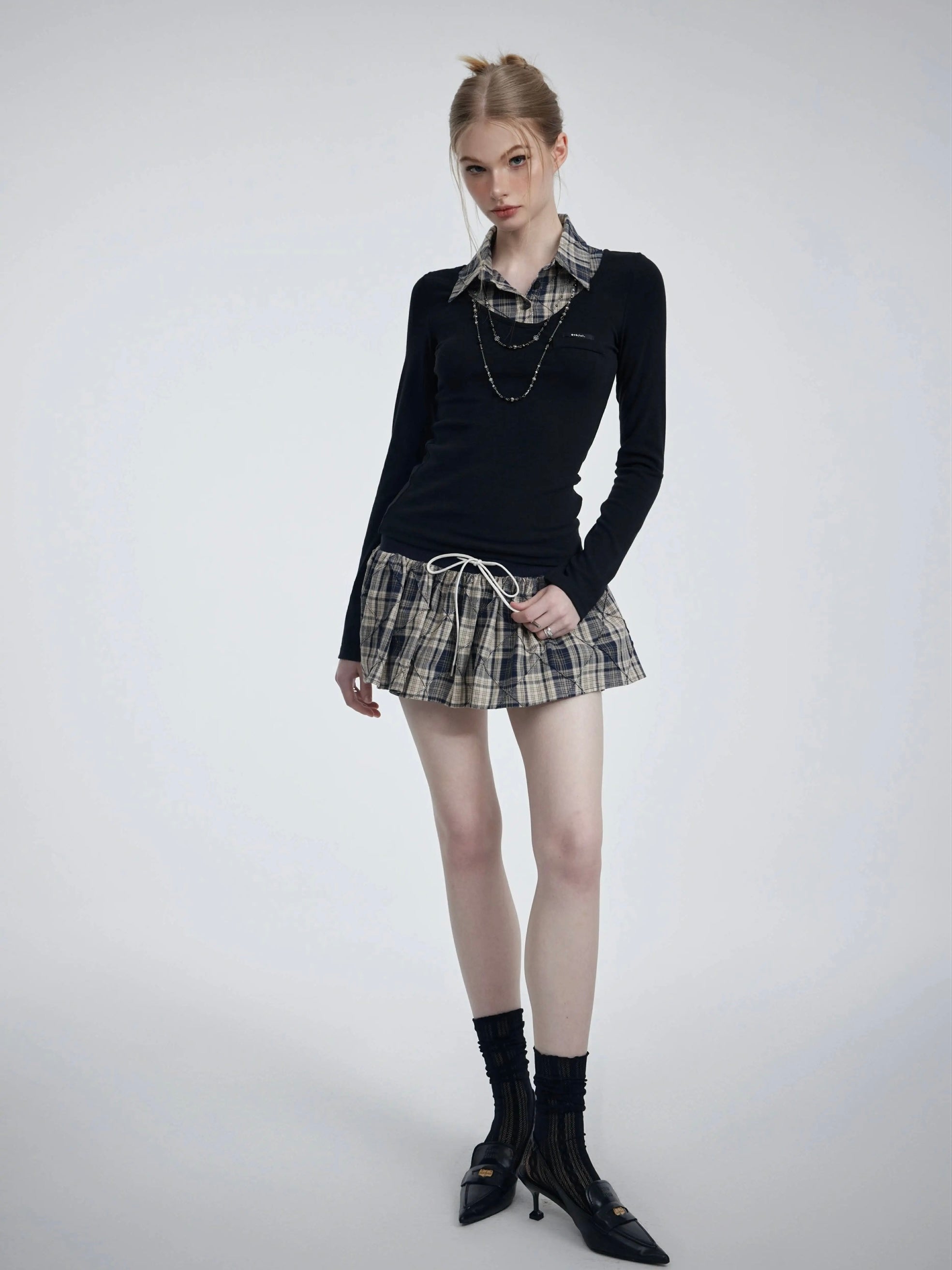 [カスタマイズ可能] キャンパスシックなスクールガールミニドレスセーターセット